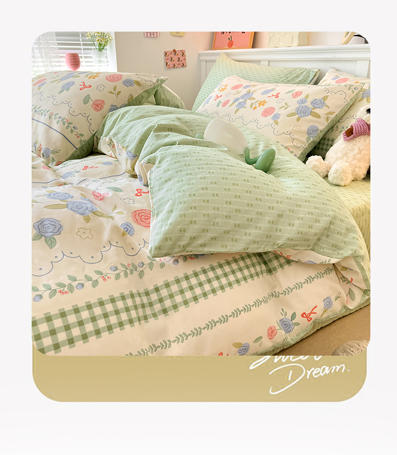 (总)曼之夏 2025新款小清新全棉双层纱四件套,半岛红茶,彩虹樱桃,春日熊,哈基米,黄油小熊,可颂,泡芙狗,晴天,如愿,碎花西高地,吾欢喜,夏日限定,小满,辛巴