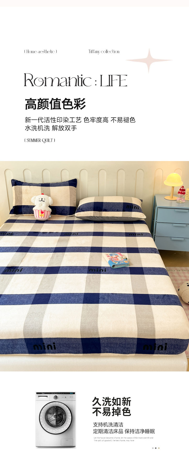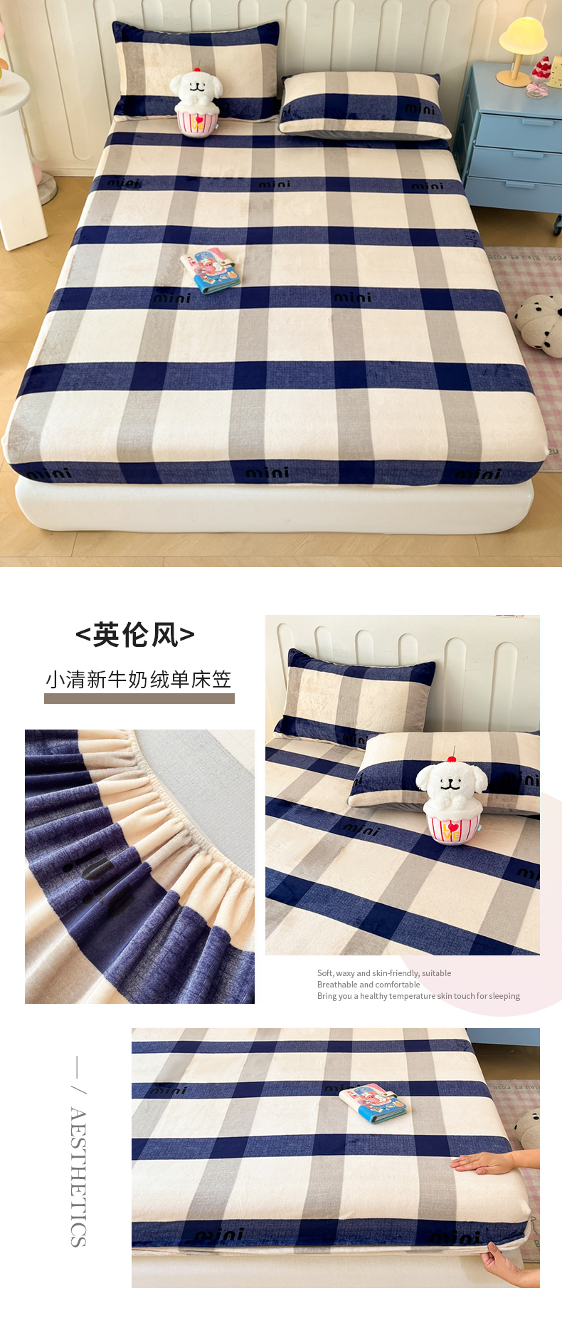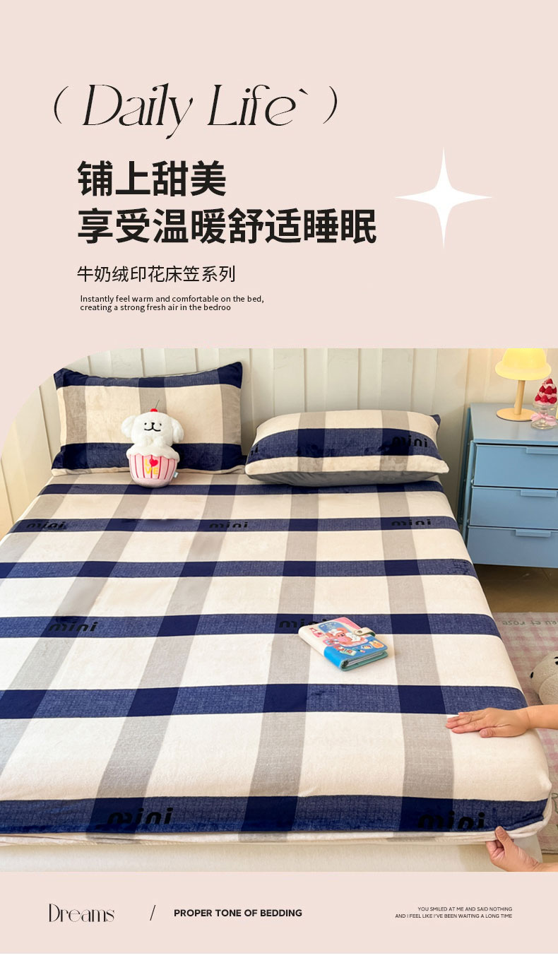 商品名称:星座家纺 2025新款小清新牛奶绒单床笠 英伦风