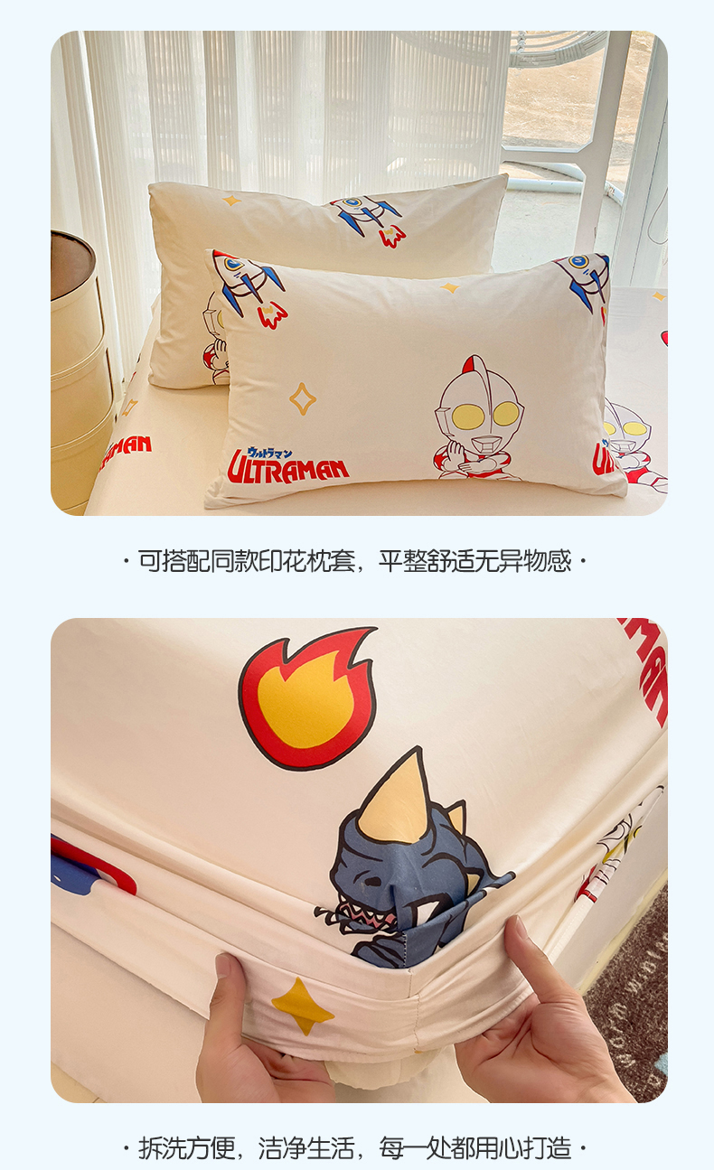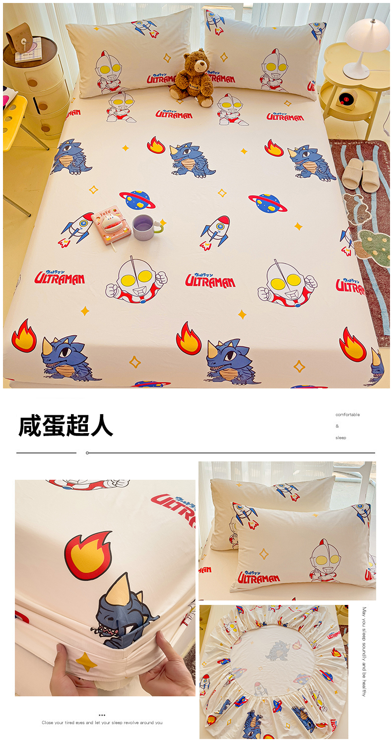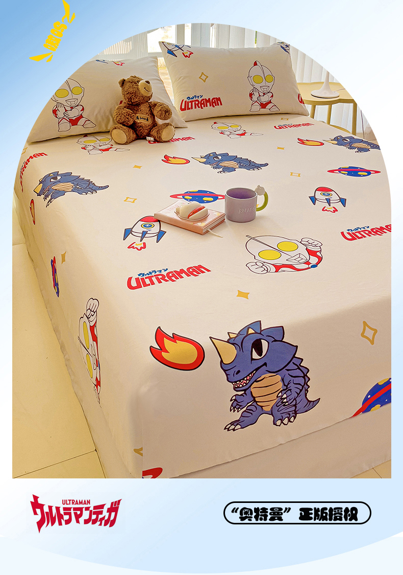 • 91家纺网 家纺一手货源 找家纺 名兮家居 2024新款正版授权经典奥特曼-三丽鸥全棉印花床笠【含防伪标】 咸蛋超人