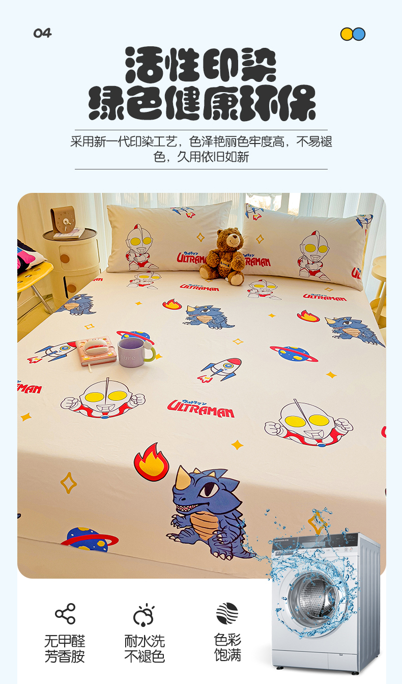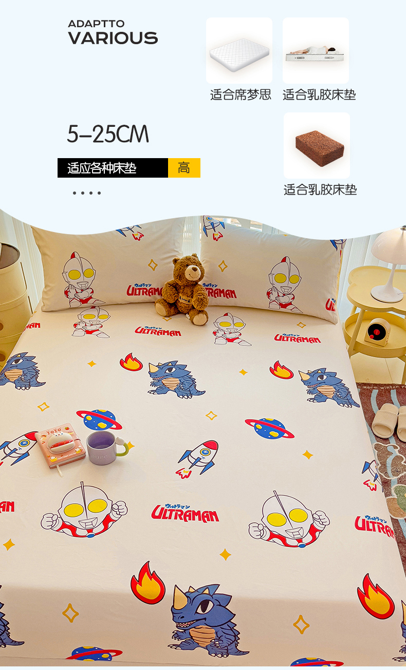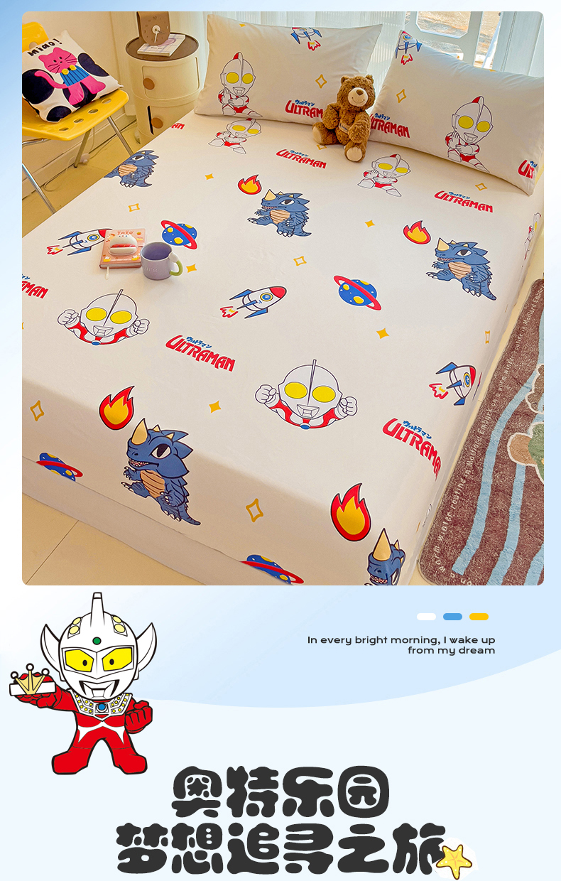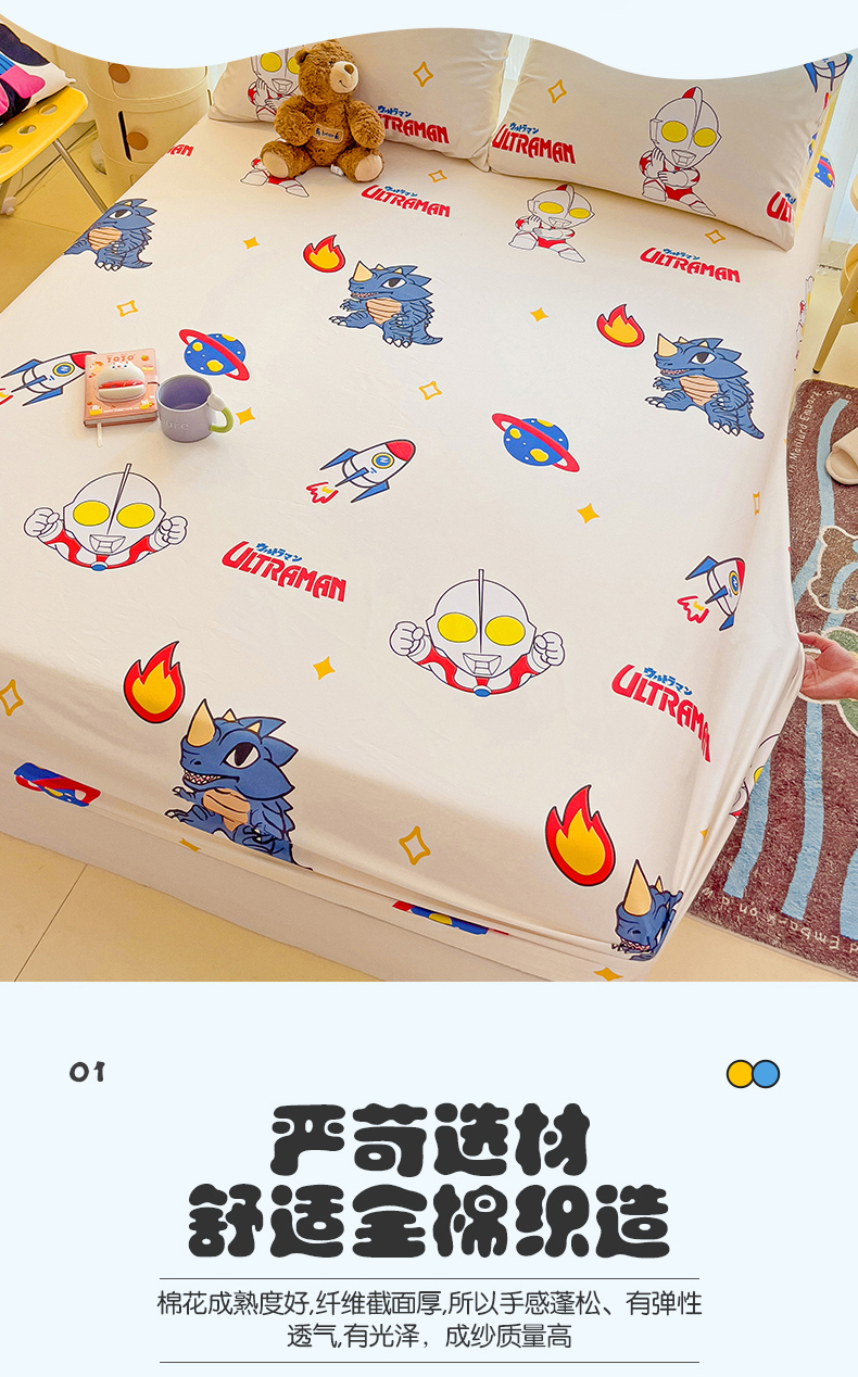 • 91家纺网 家纺一手货源 找家纺 名兮家居 2024新款正版授权经典奥特曼-三丽鸥全棉印花床笠【含防伪标】 咸蛋超人