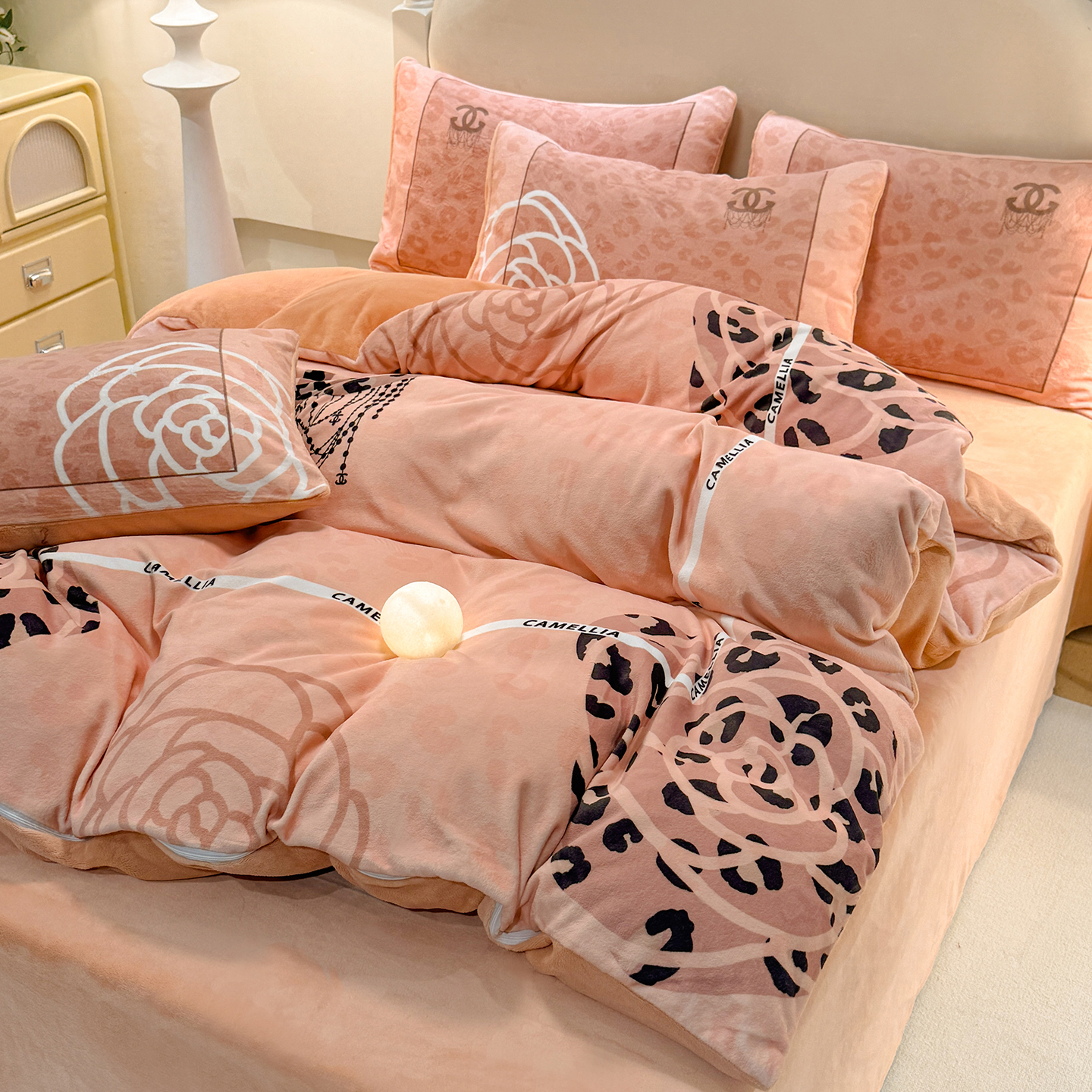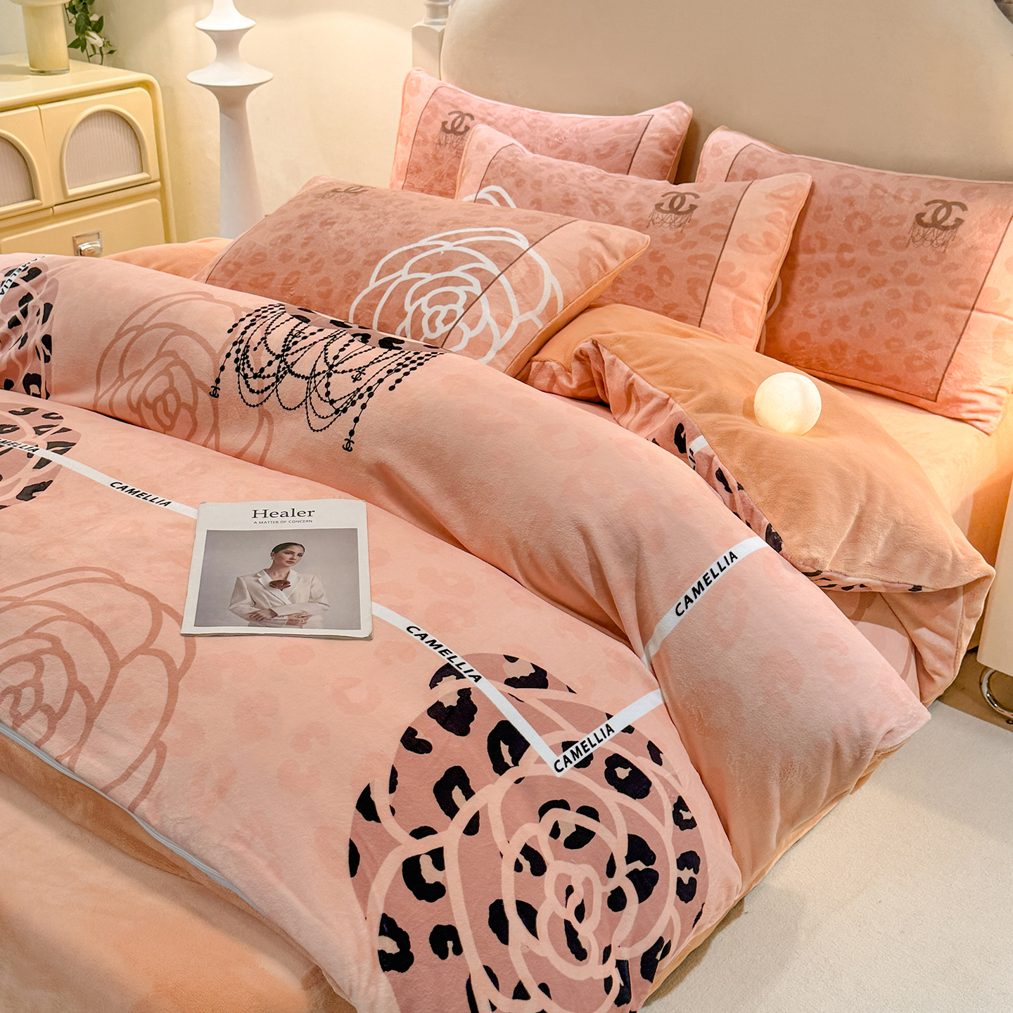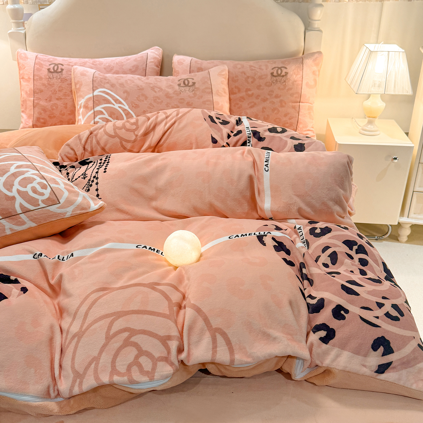 新方向 2025年 A类全消光牛奶绒四件套-漫步温莎柔和桃
