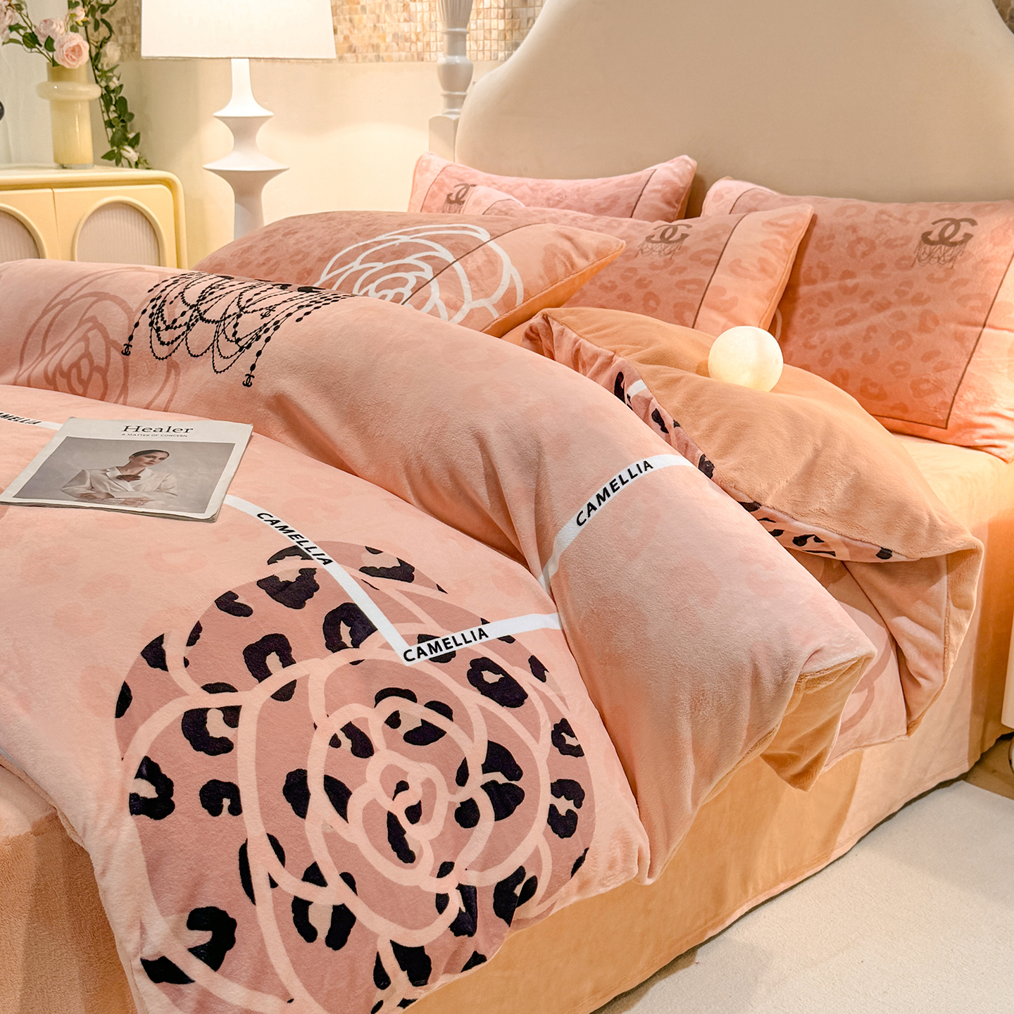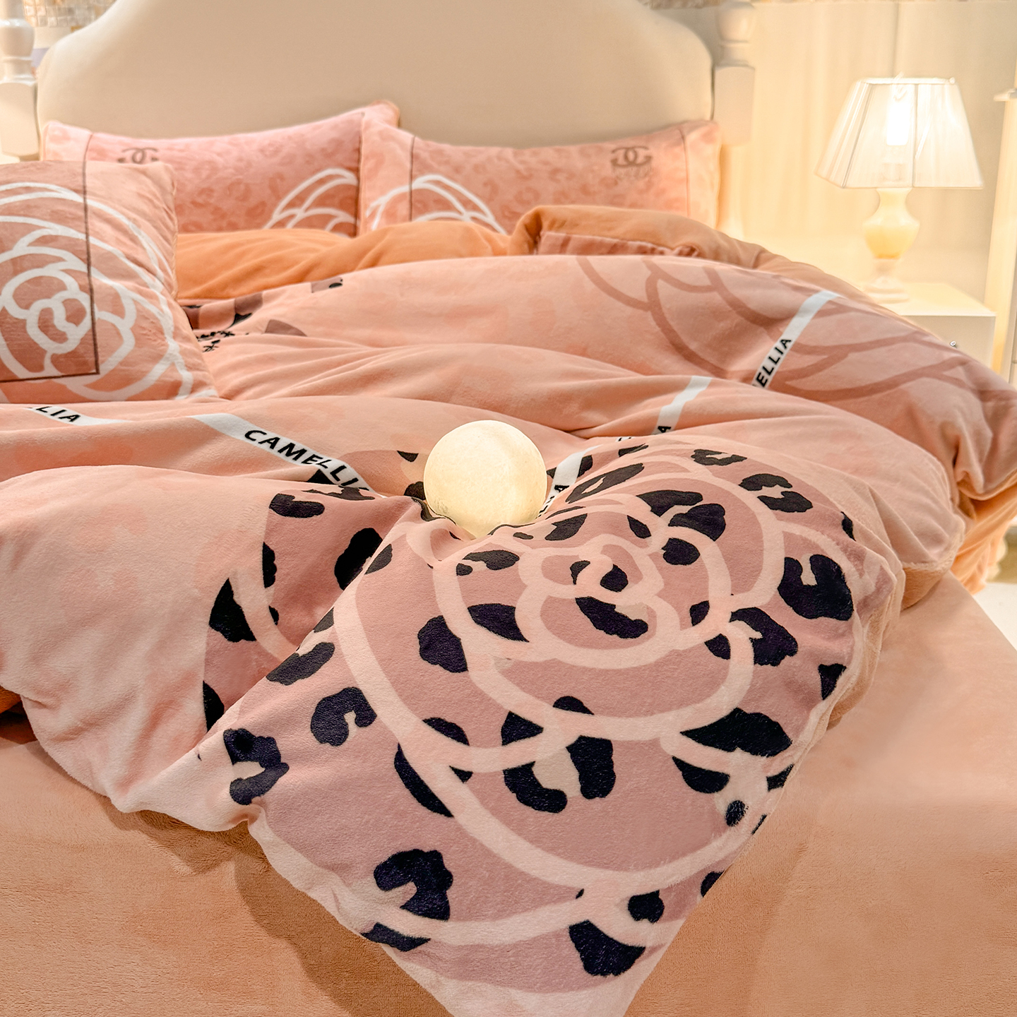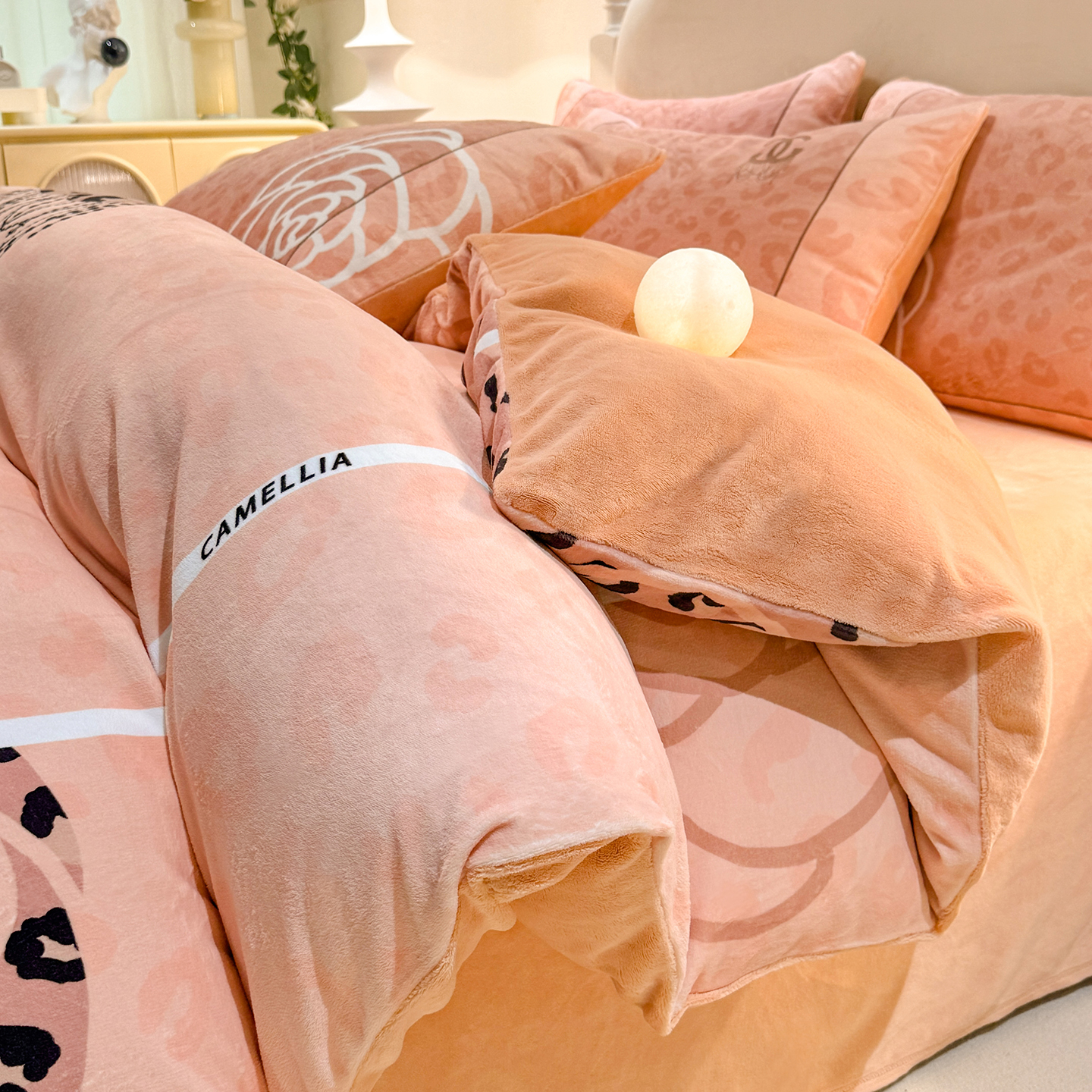 新方向 2025年 A类全消光牛奶绒四件套-漫步温莎柔和桃