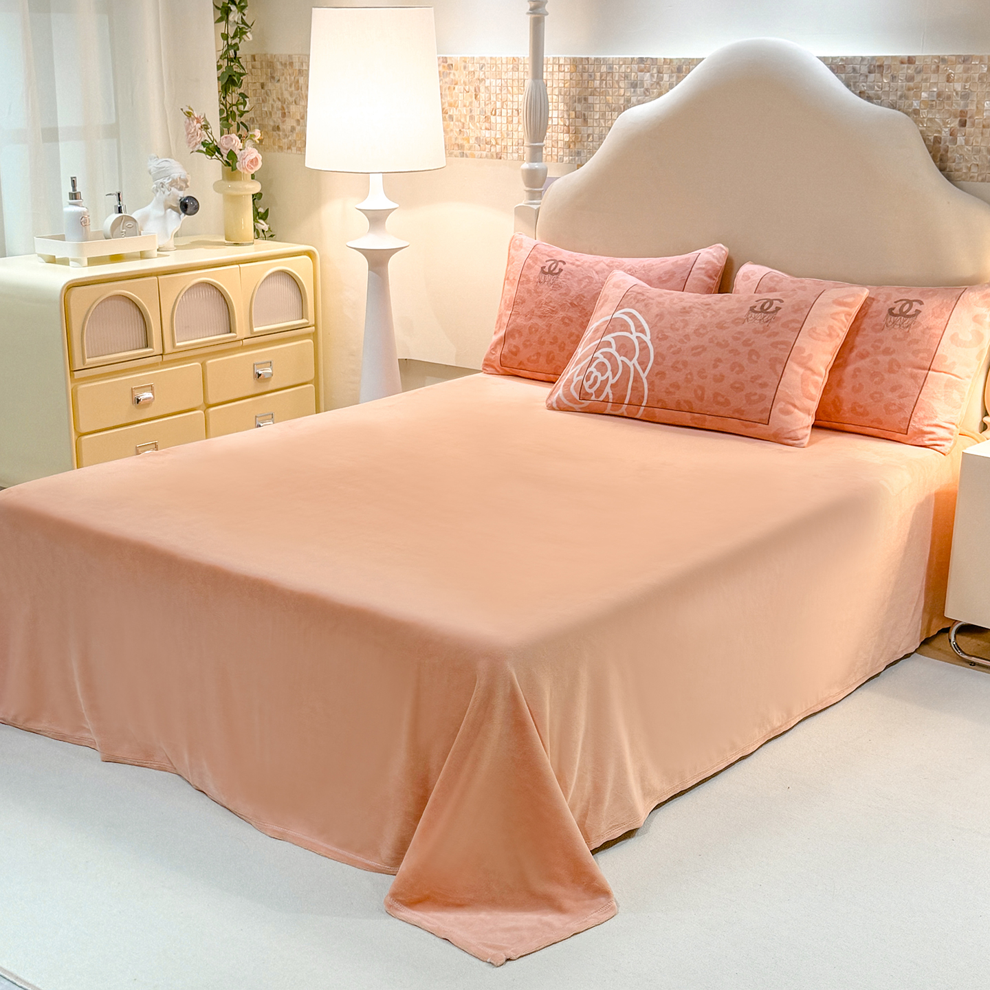 商品名称:新方向 2025年 A类全消光牛奶绒四件套-漫步温莎柔和桃