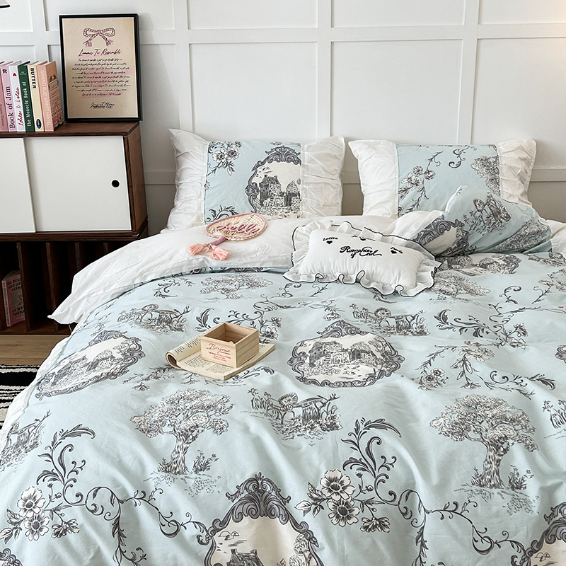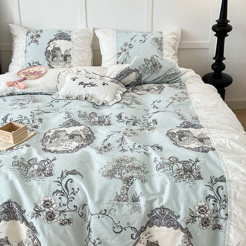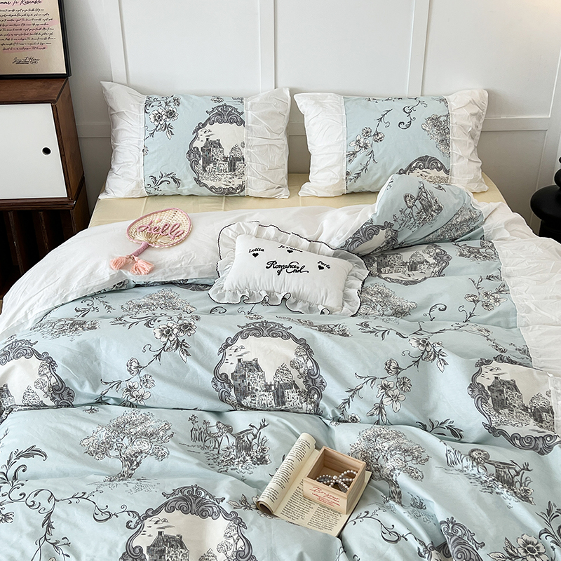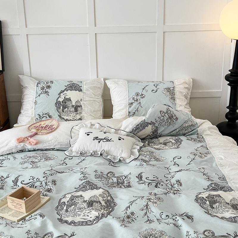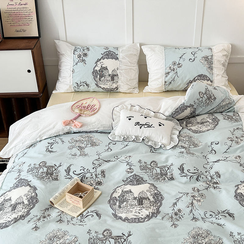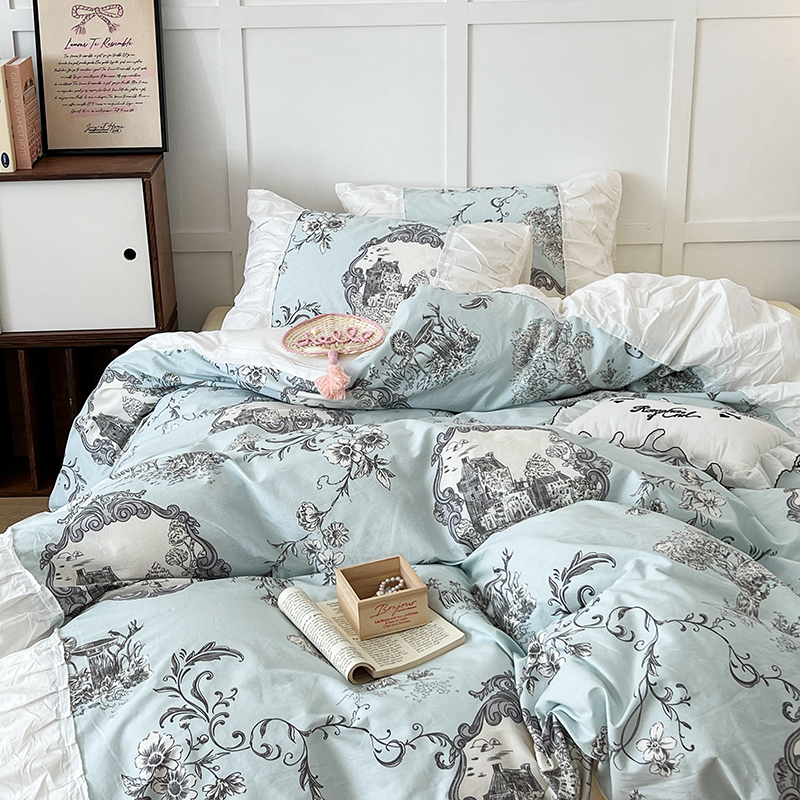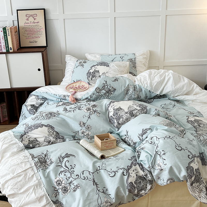 昔可家纺 2024新款韩版花边工艺款四件套 复古城堡