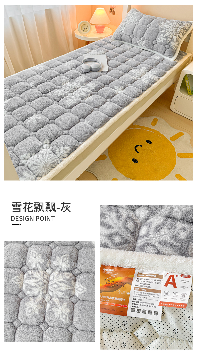 • 91家纺网 家纺一手货源 找家纺 雯豆家纺 2024新品泰迪绒学生床垫宿舍床褥子加厚上下铺北极绒床护垫 泰迪绒床褥-雪花飘飘-灰