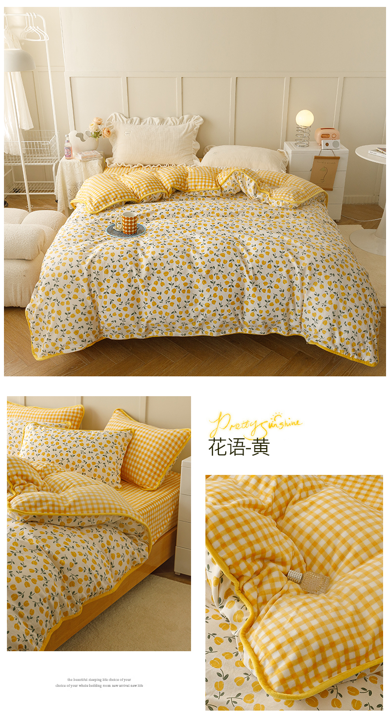 当前位置: 91家纺网 > 商品网购 > 床品套件 > 四件套 > 牛奶绒四件套 > 红粉佳人 2025新款棉加绒印花四件套 花语-黄