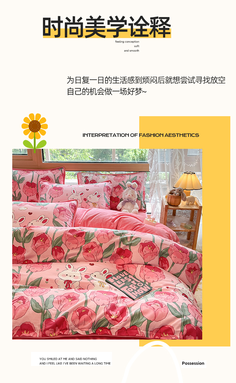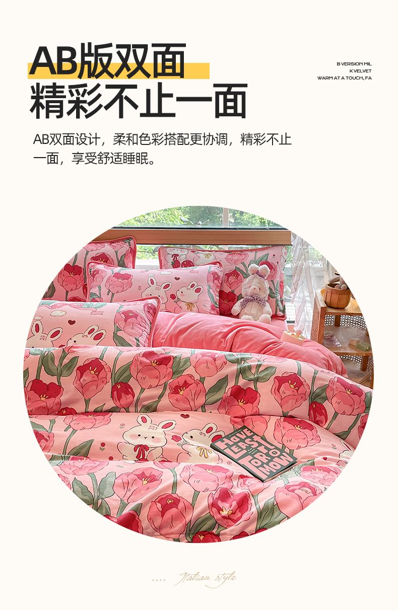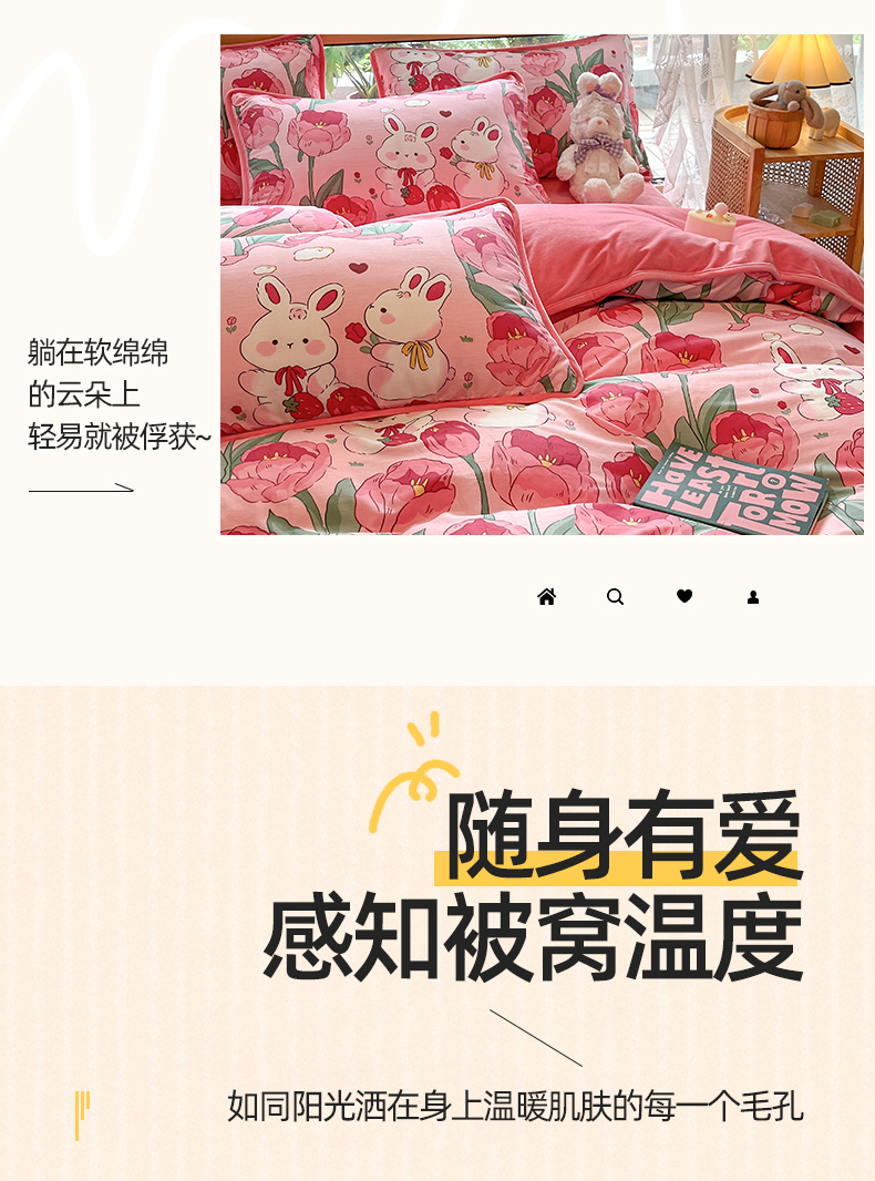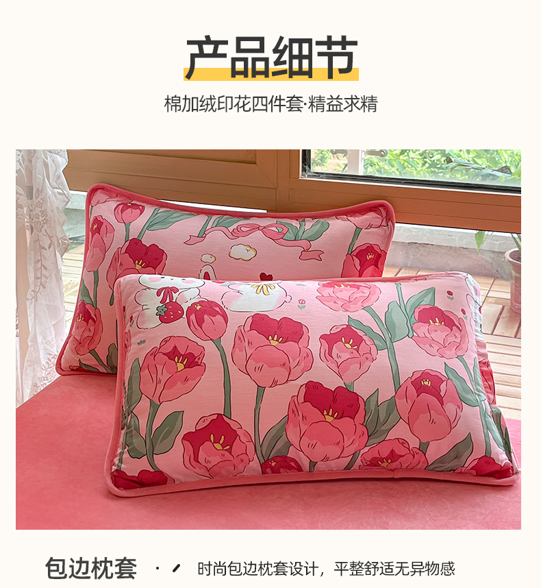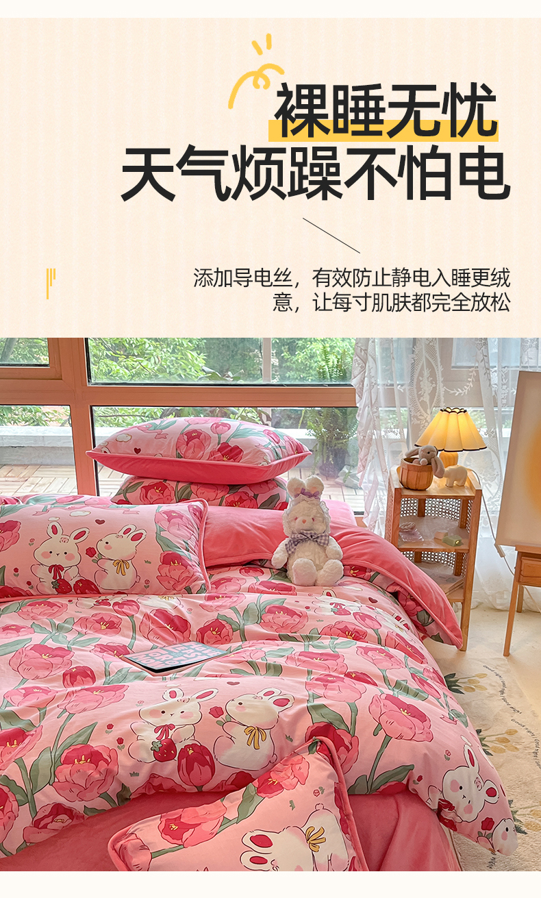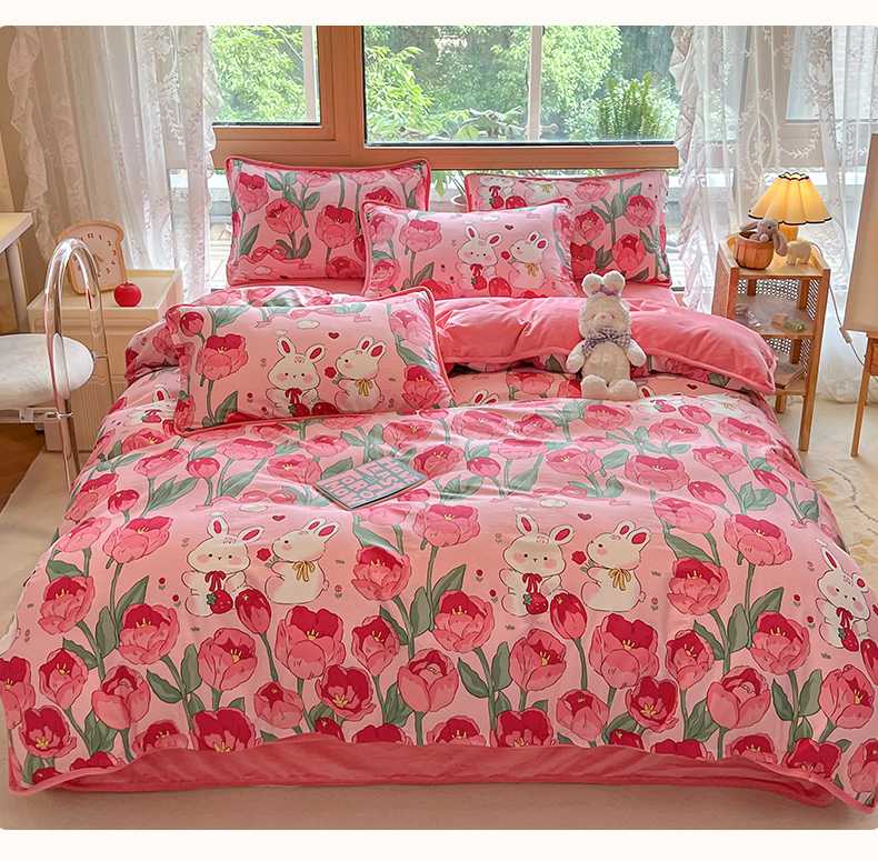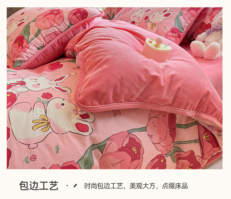 当前位置: 91家纺网 > 商品网购 > 床品套件 > 四件套 > 牛奶绒四件套 > 红粉佳人 2025新款棉加绒印花四件套 甜甜小兔