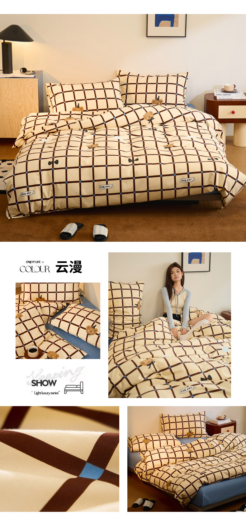 (总)怡家居 2025新款全棉纯棉磨毛绣花四件套-拼接款,格子小兔,可可腊肠,苹果小猫,曲奇饼干,五彩小煤球-咖,五彩小煤球-蓝