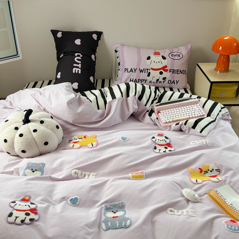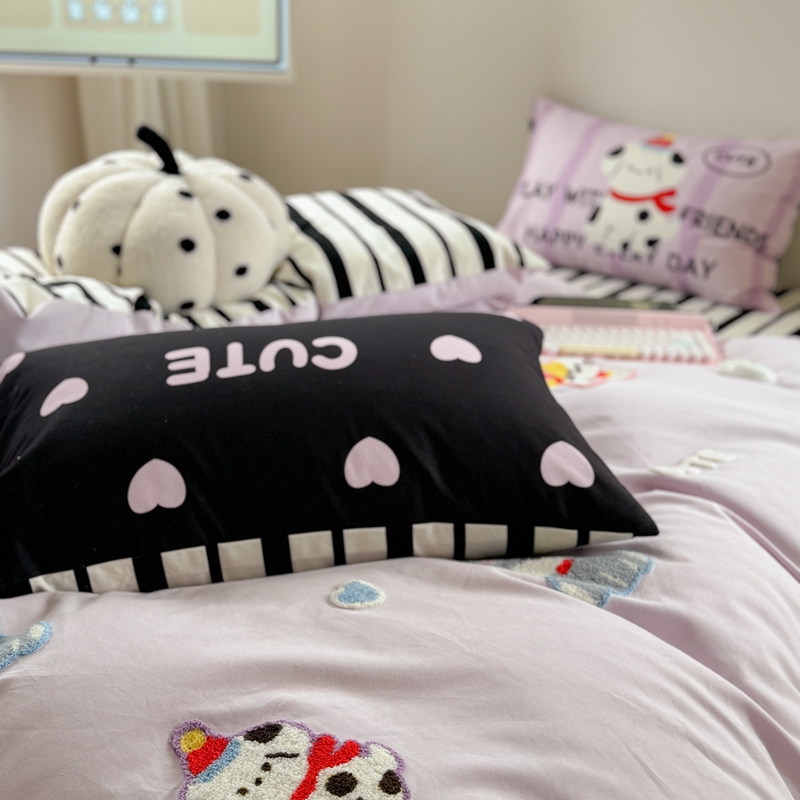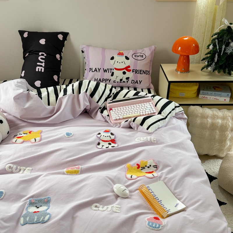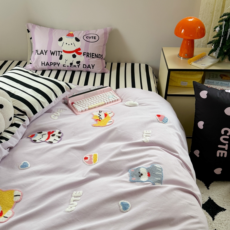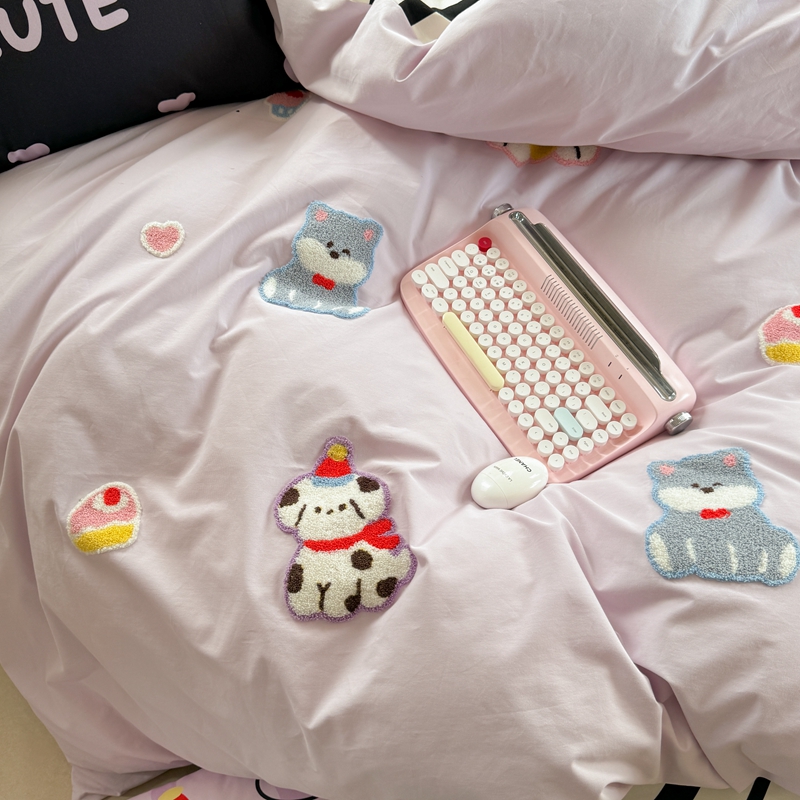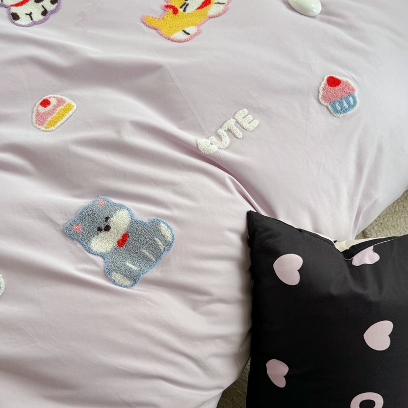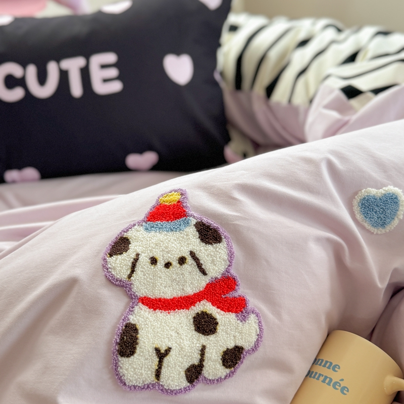 (总)柚子YOUTH 2025新款全棉纯棉工艺款13070贴布绣四件套,爱心小象,毛绒小狗,蘑菇女孩,星星法师