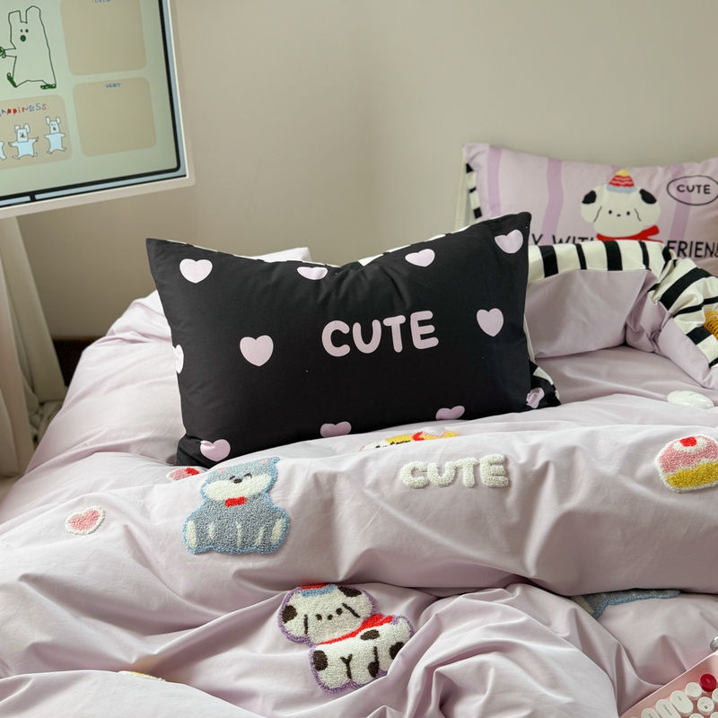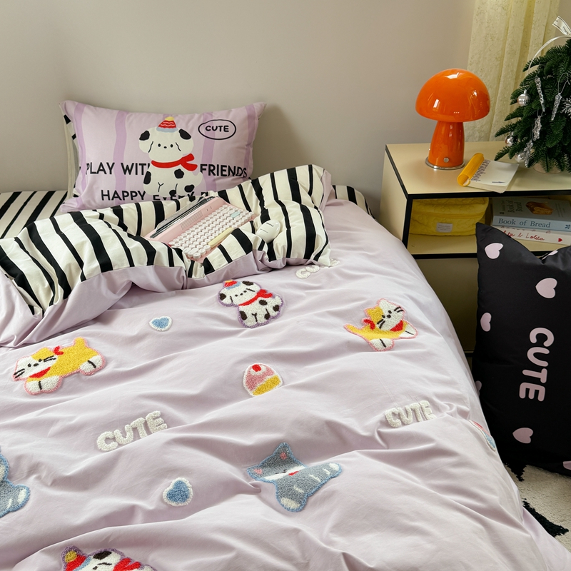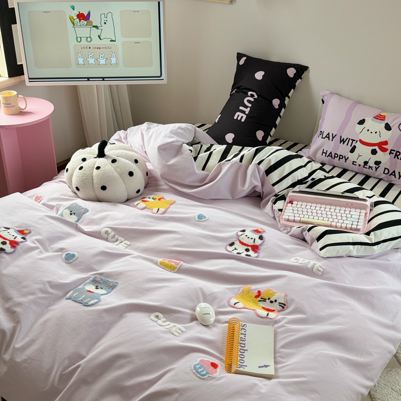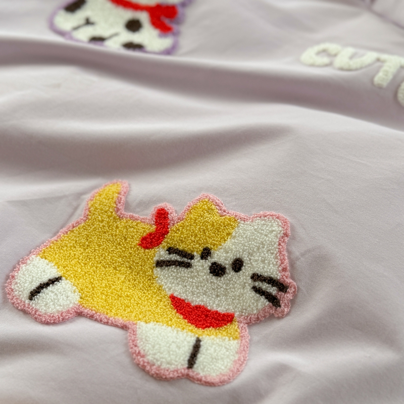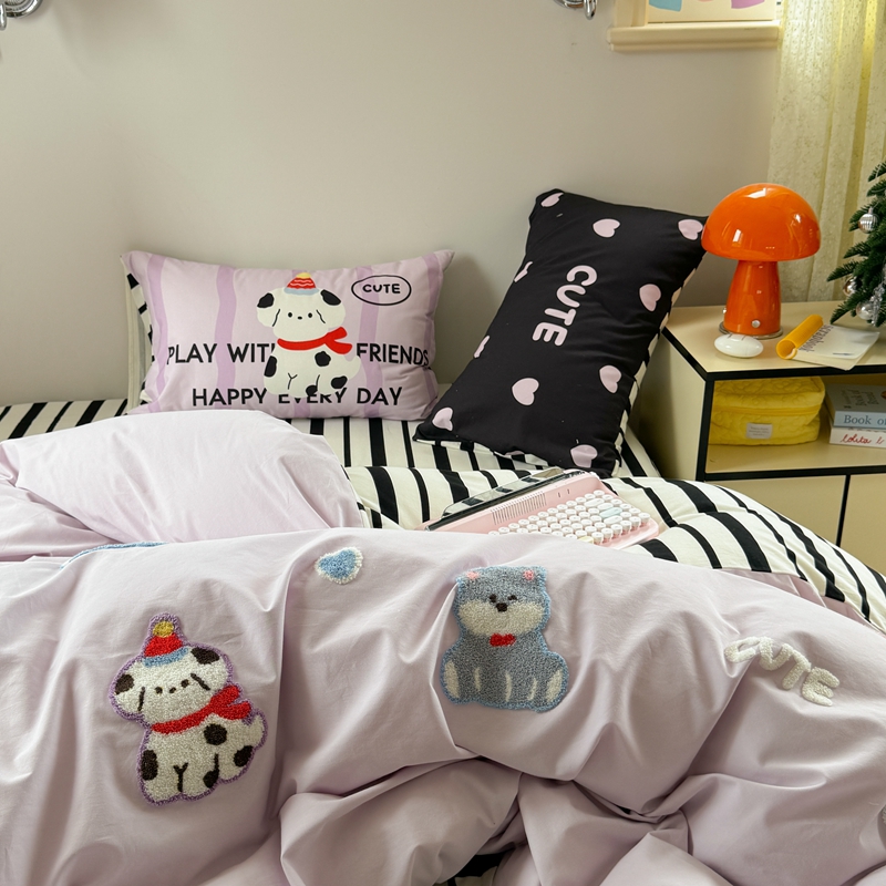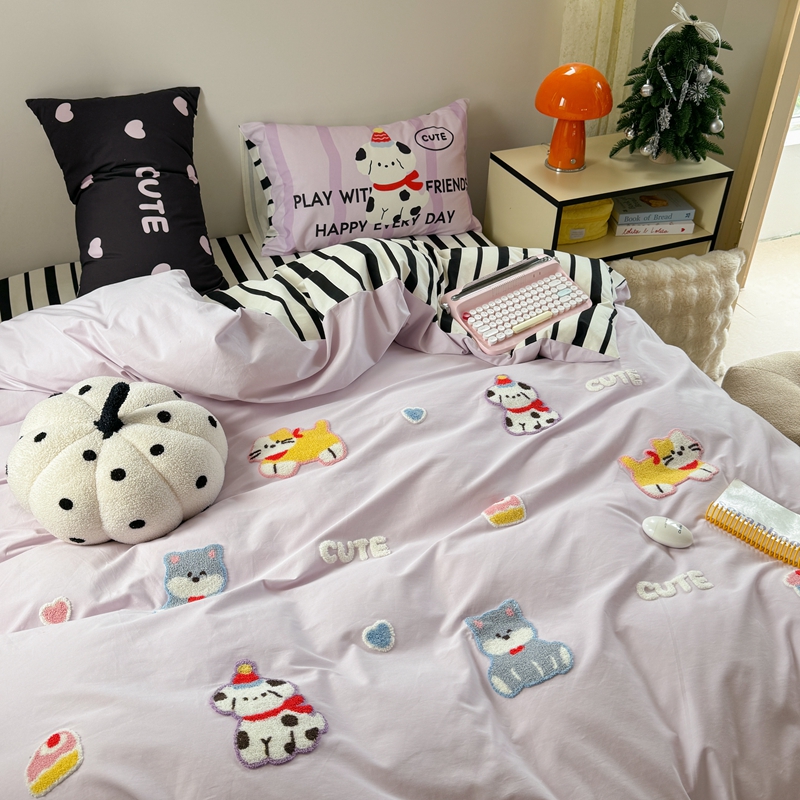 (总)柚子YOUTH 2025新款全棉纯棉工艺款13070贴布绣四件套,爱心小象,毛绒小狗,蘑菇女孩,星星法师