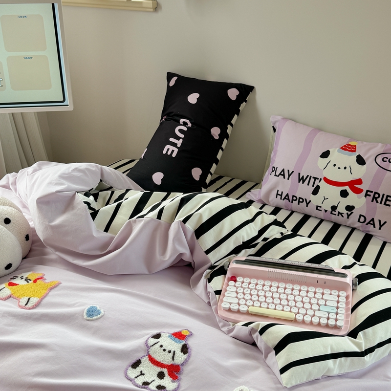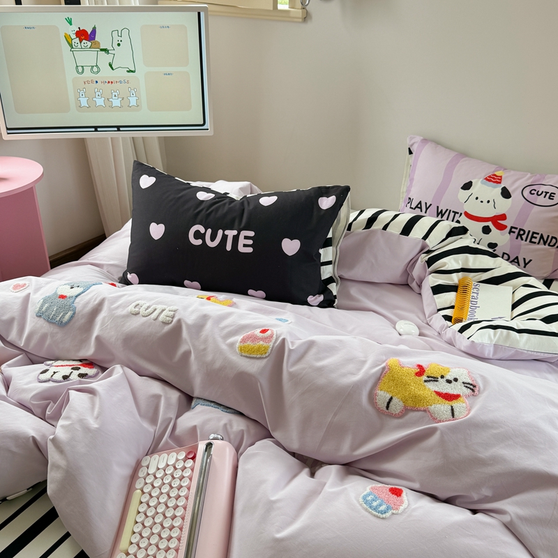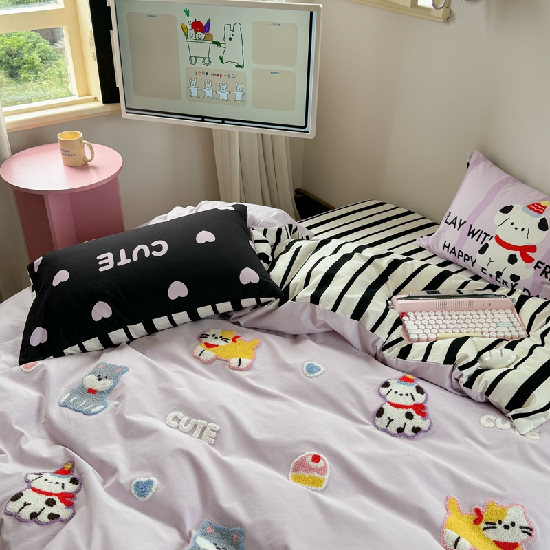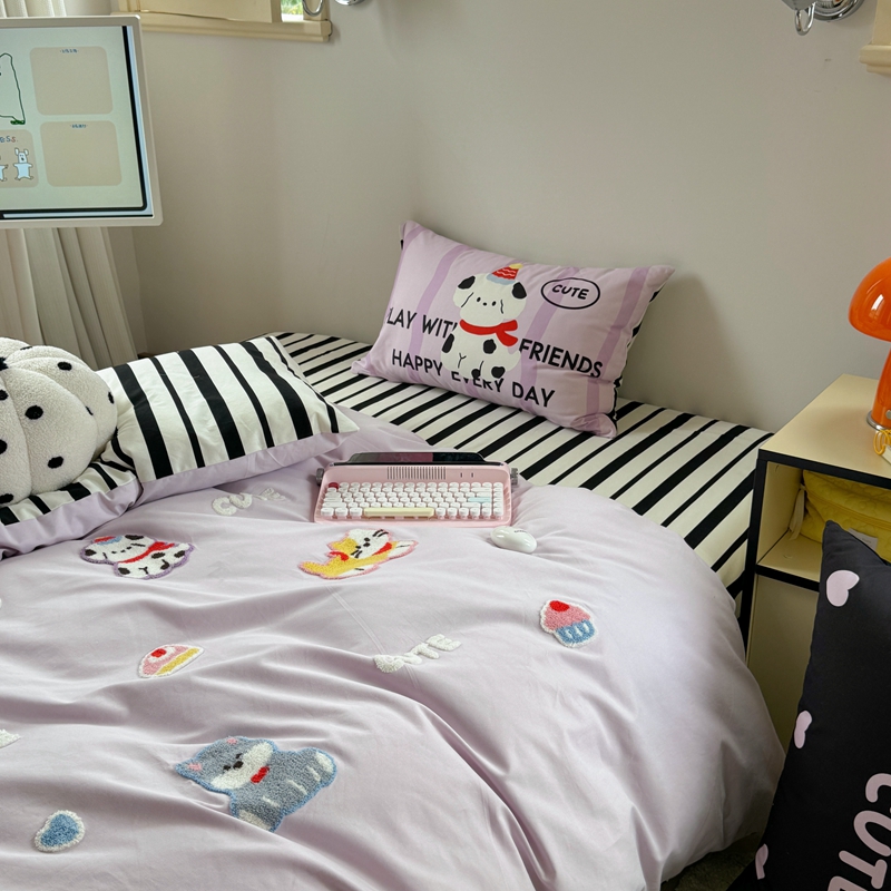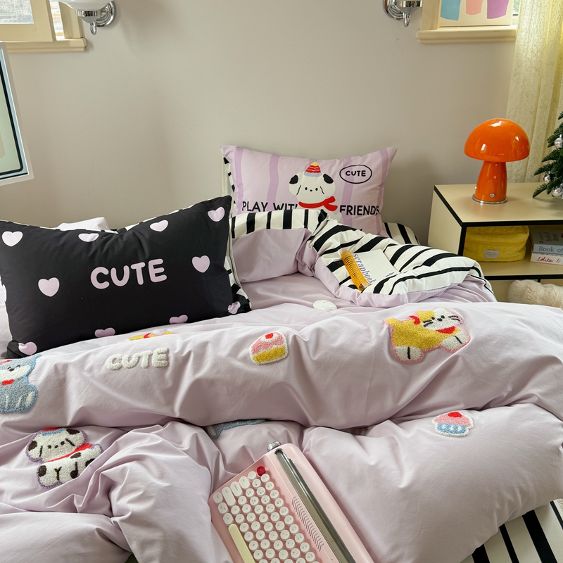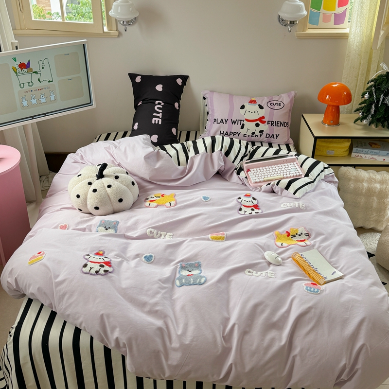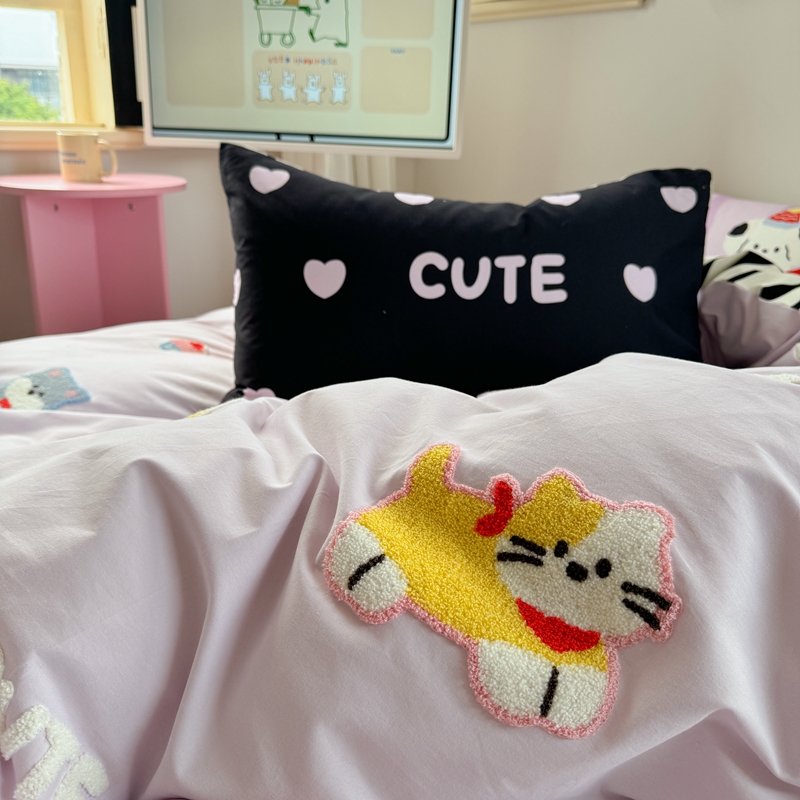 (总)柚子YOUTH 2025新款全棉纯棉工艺款13070贴布绣四件套,爱心小象,毛绒小狗,蘑菇女孩,星星法师