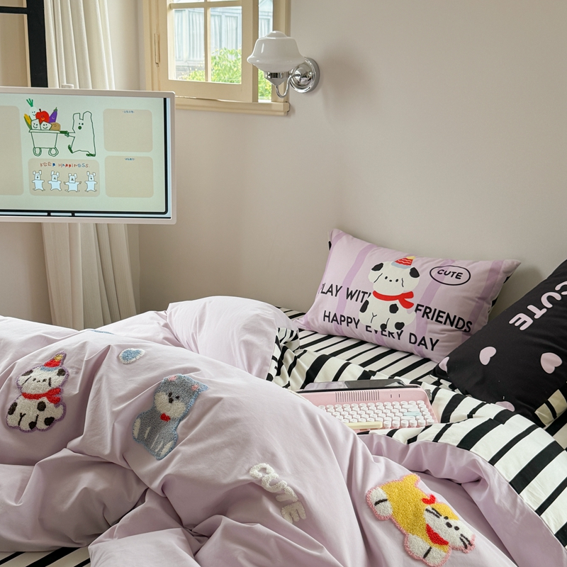 商品名称:柚子YOUTH 2024秋冬新品全棉磨毛款四件套 磨毛款-萌宠组合