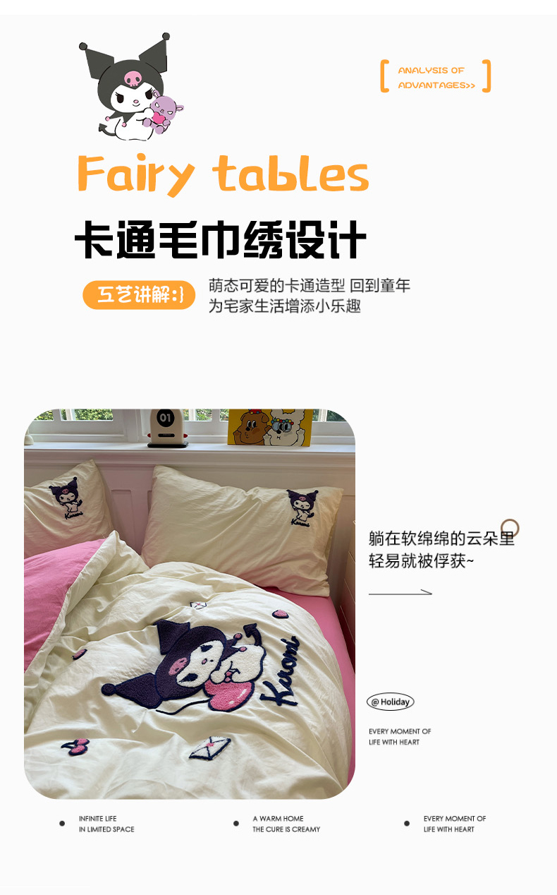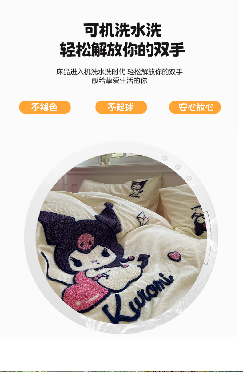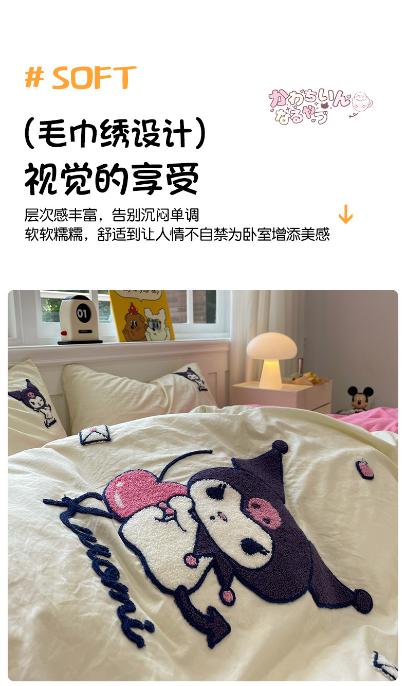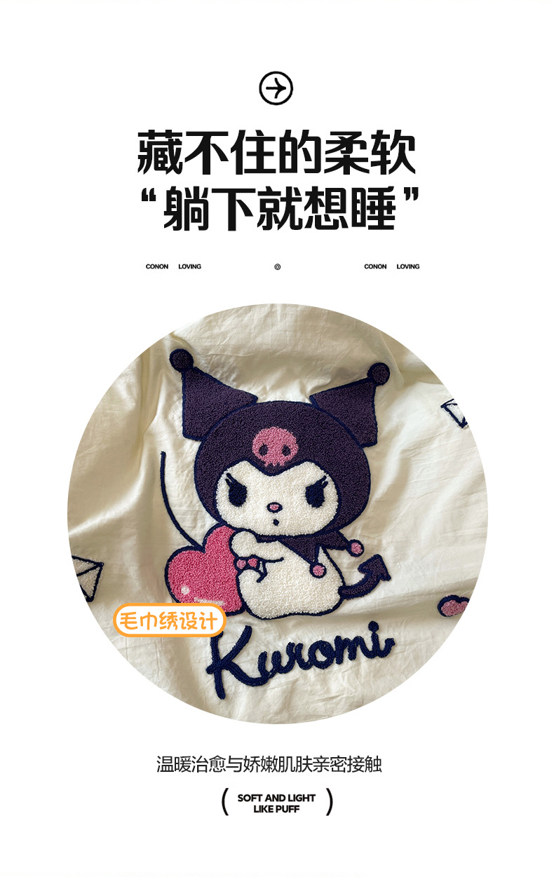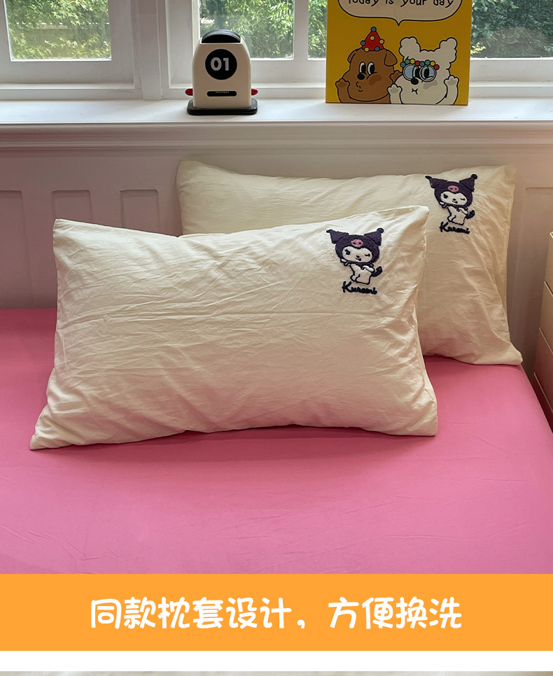 当前位置: 91家纺网 > 商品网购 > 床品套件 > 四件套 > 水洗棉四件套 > 奈颜 2024正版授权三丽鸥爆款超柔水洗棉纯色毛巾绣四件套学生三件套(含防伪吊牌)-摄影图 库洛米-乳白+枚粉