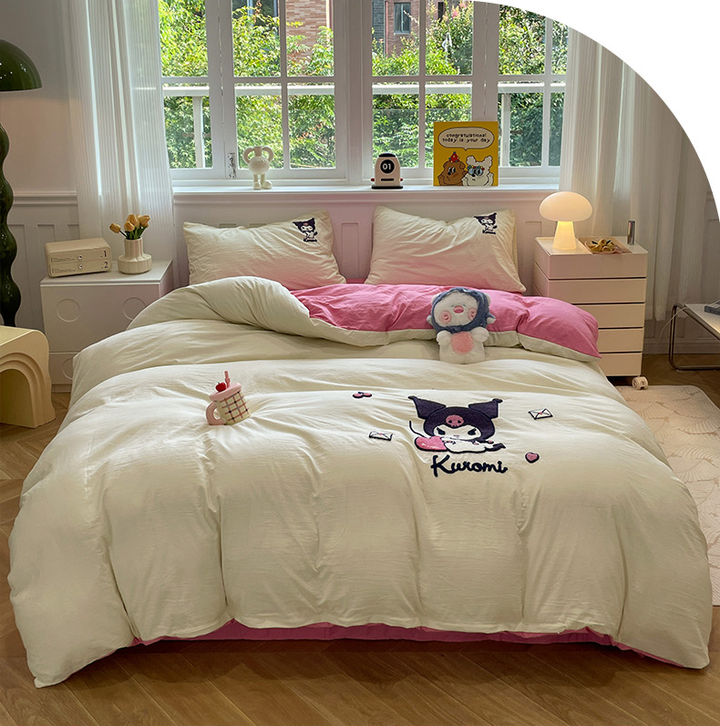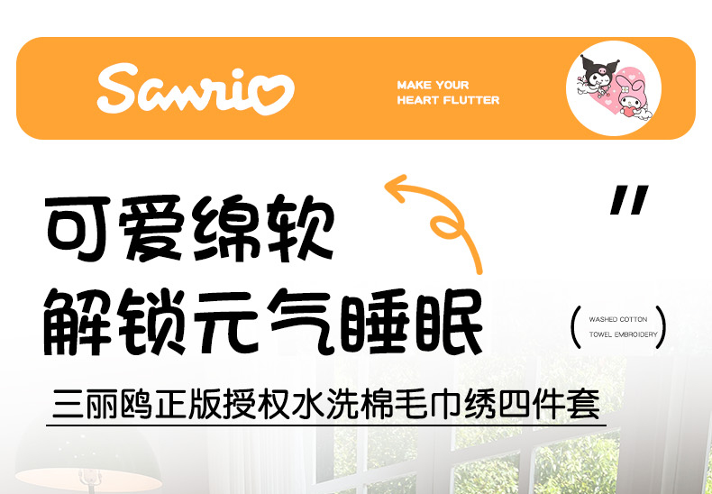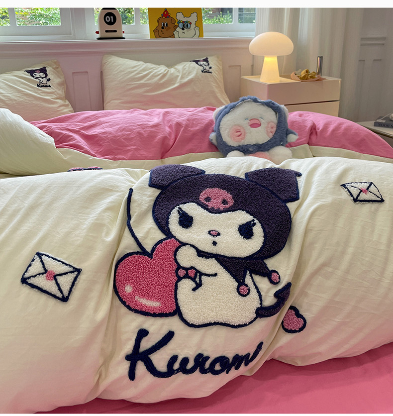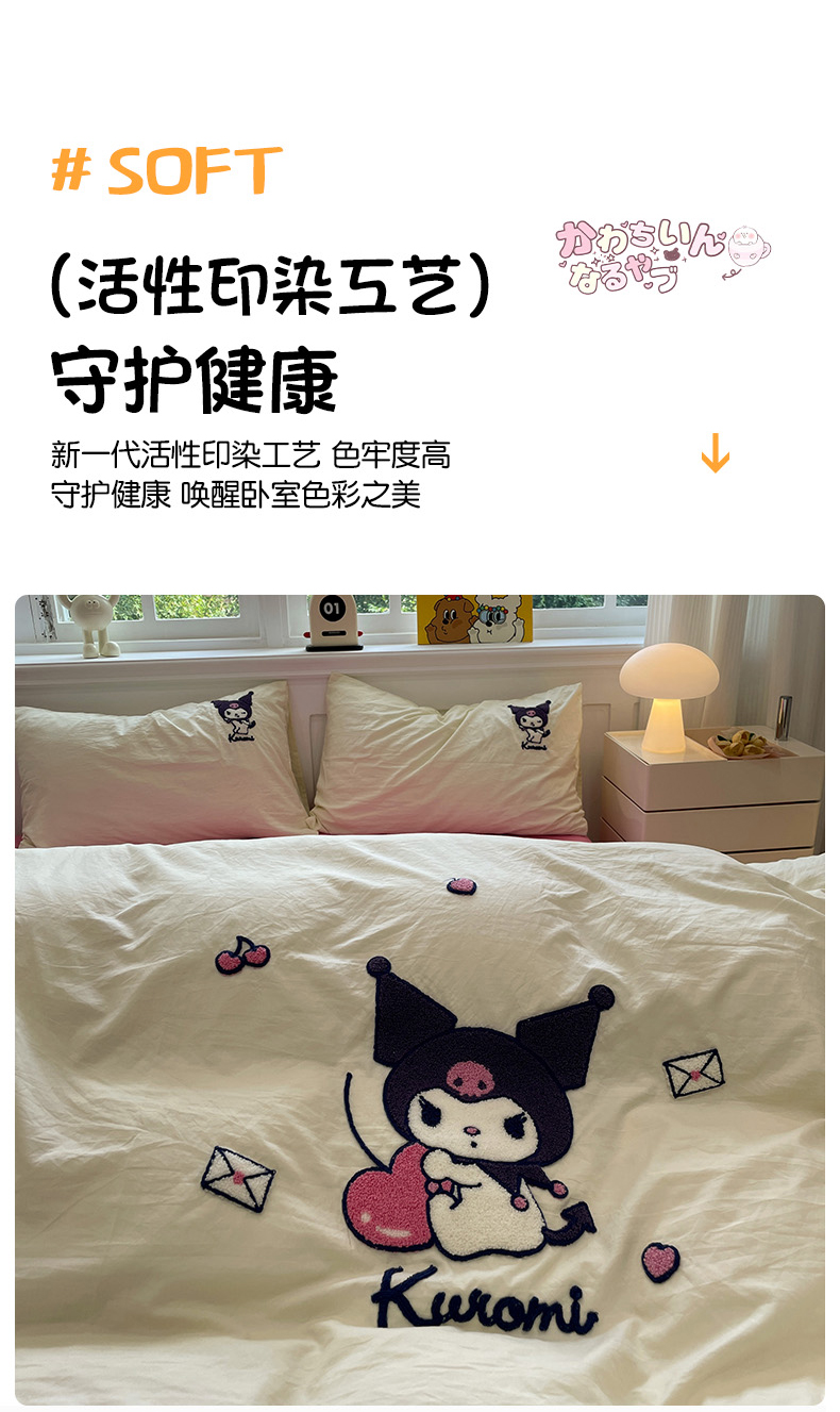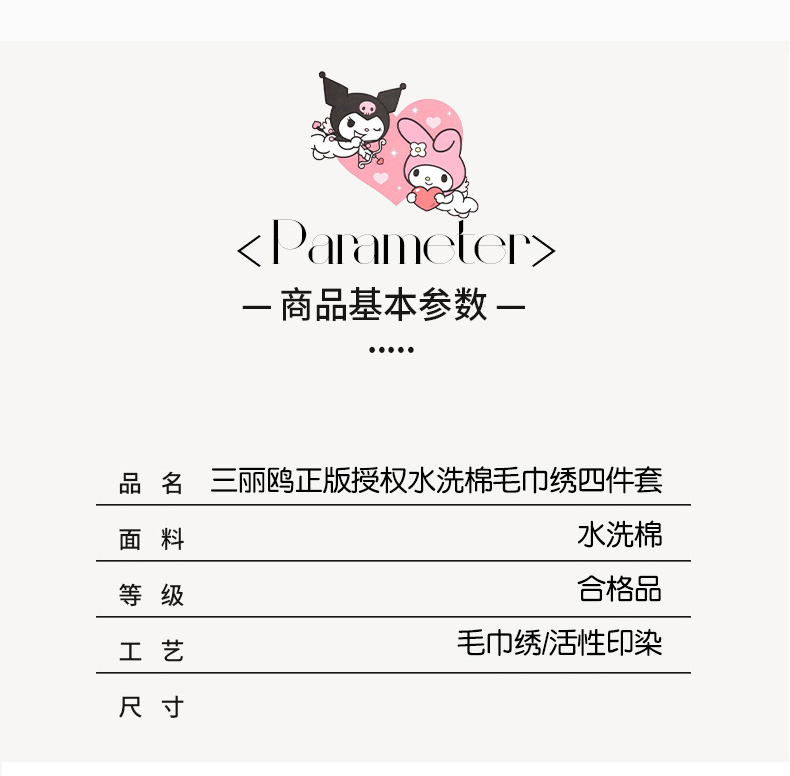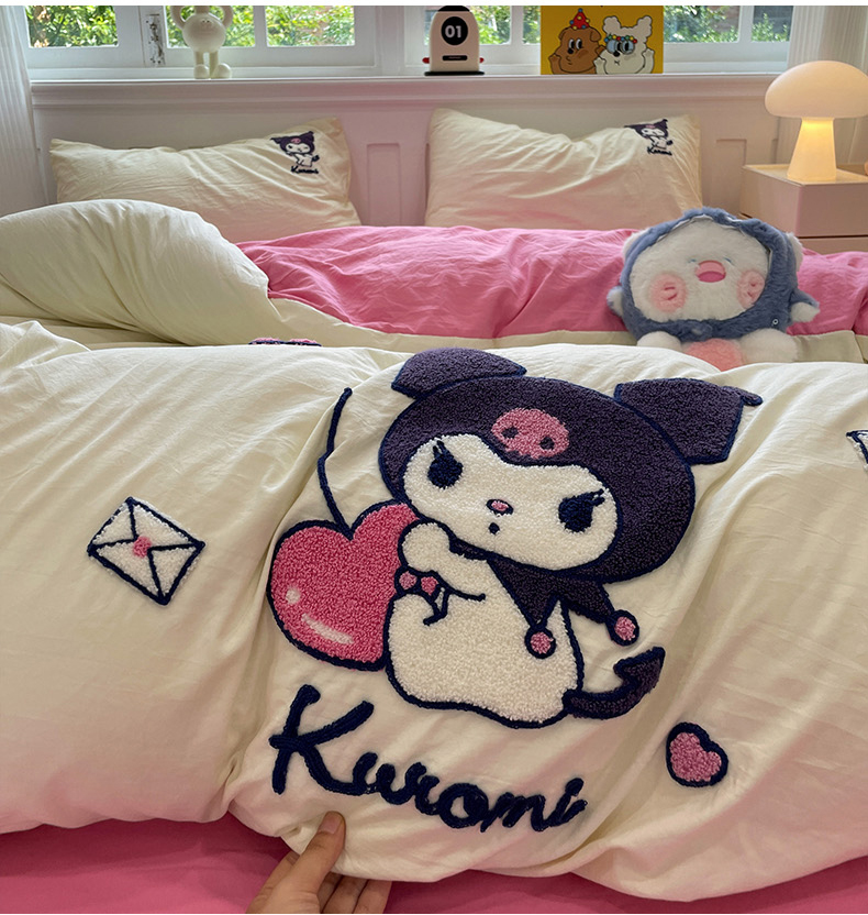 当前位置: 91家纺网 > 商品网购 > 床品套件 > 四件套 > 水洗棉四件套 > 奈颜 2024正版授权三丽鸥爆款超柔水洗棉纯色毛巾绣四件套学生三件套(含防伪吊牌)-摄影图 库洛米-乳白+枚粉