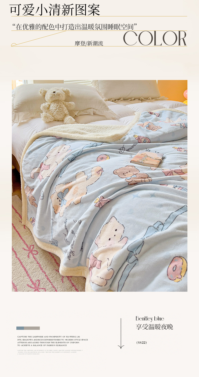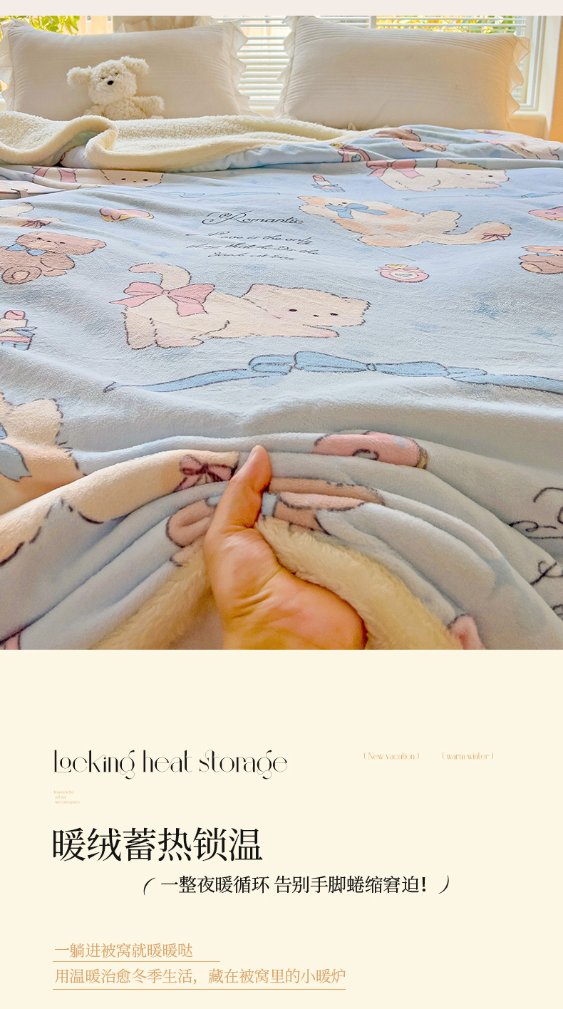商品名称:鑫喜莱家纺 2024新款牛奶绒羊羔绒盖毯毛毯毯子午睡毯 蝴蝶结小猫