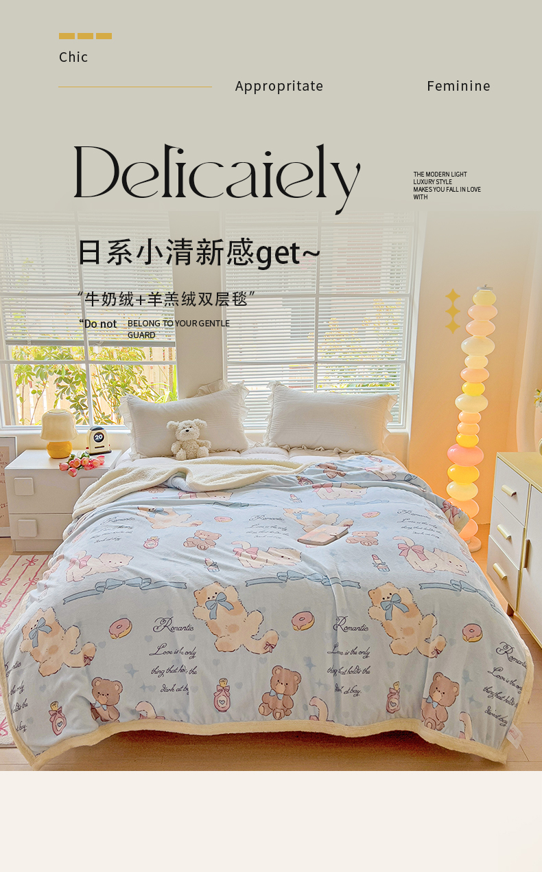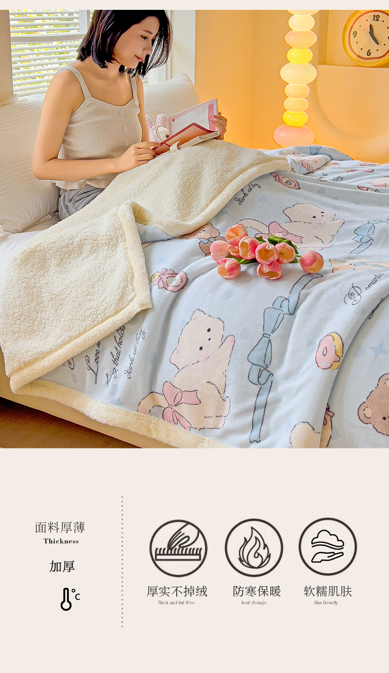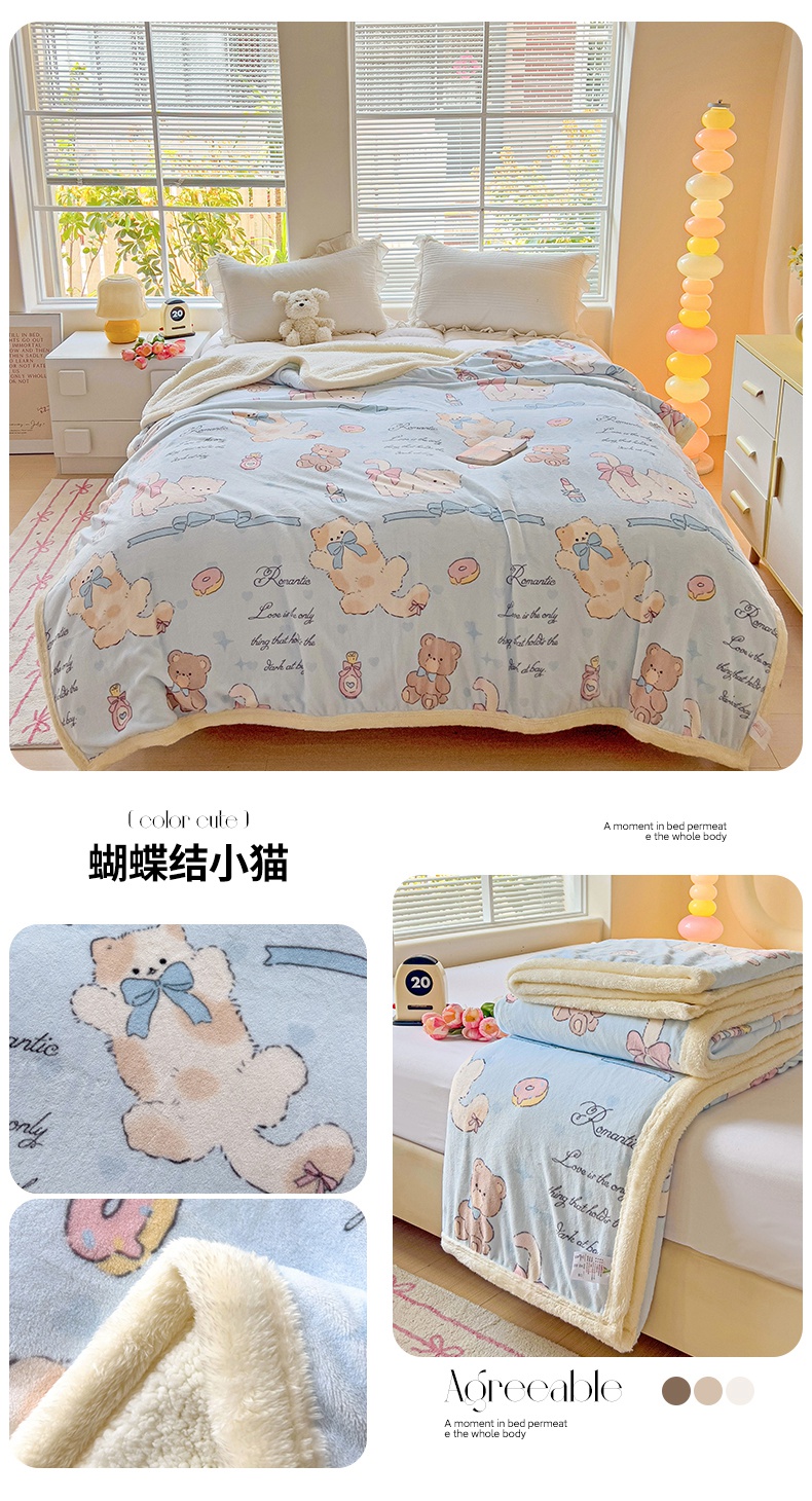 鑫喜莱家纺 2024新款牛奶绒羊羔绒盖毯毛毯毯子午睡毯 蝴蝶结小猫