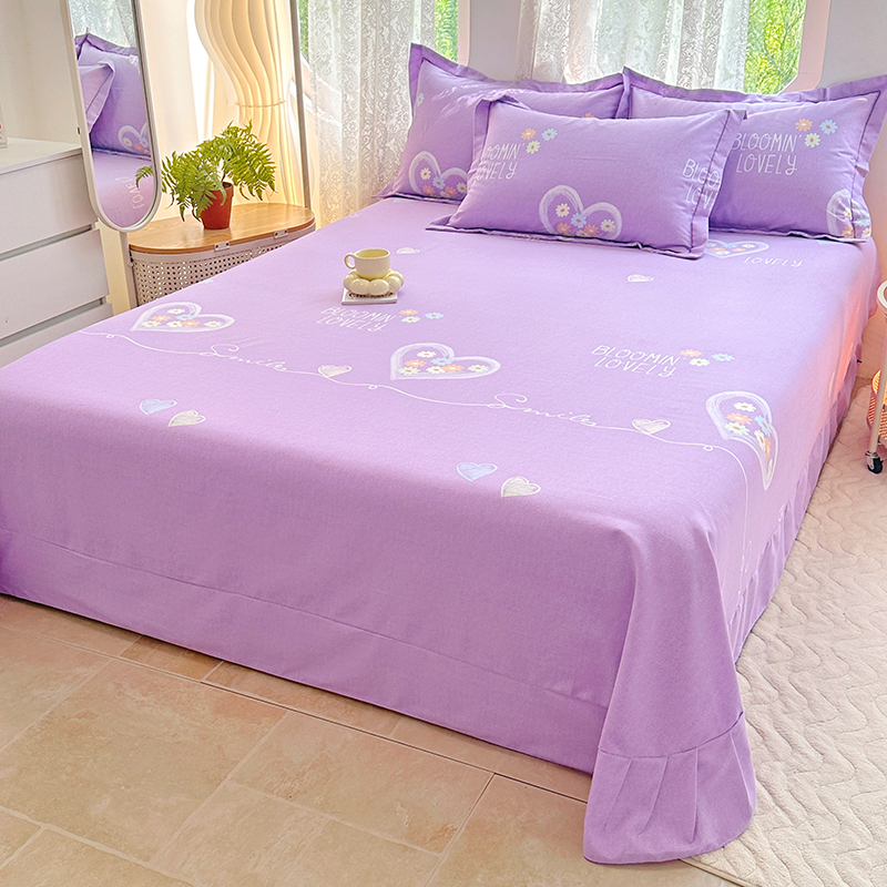 家贝爱 2024新款加厚纯棉生态磨毛床单系列 心恋紫