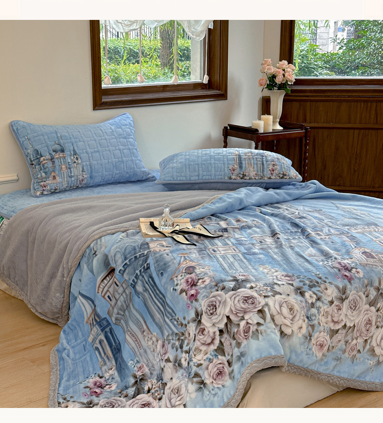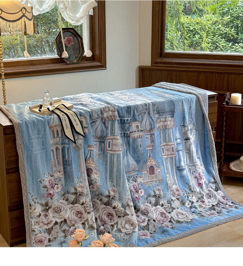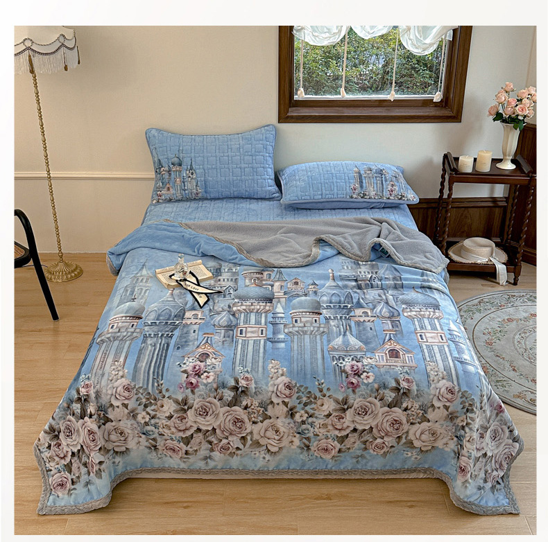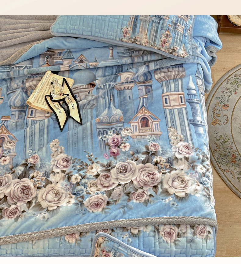 麋兔 2024新款法式原创手绘牛奶绒床笠盖毯 梦幻城堡