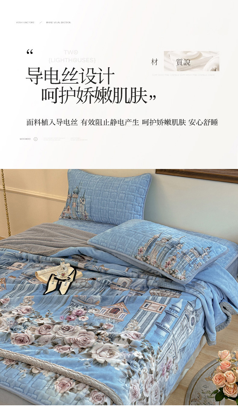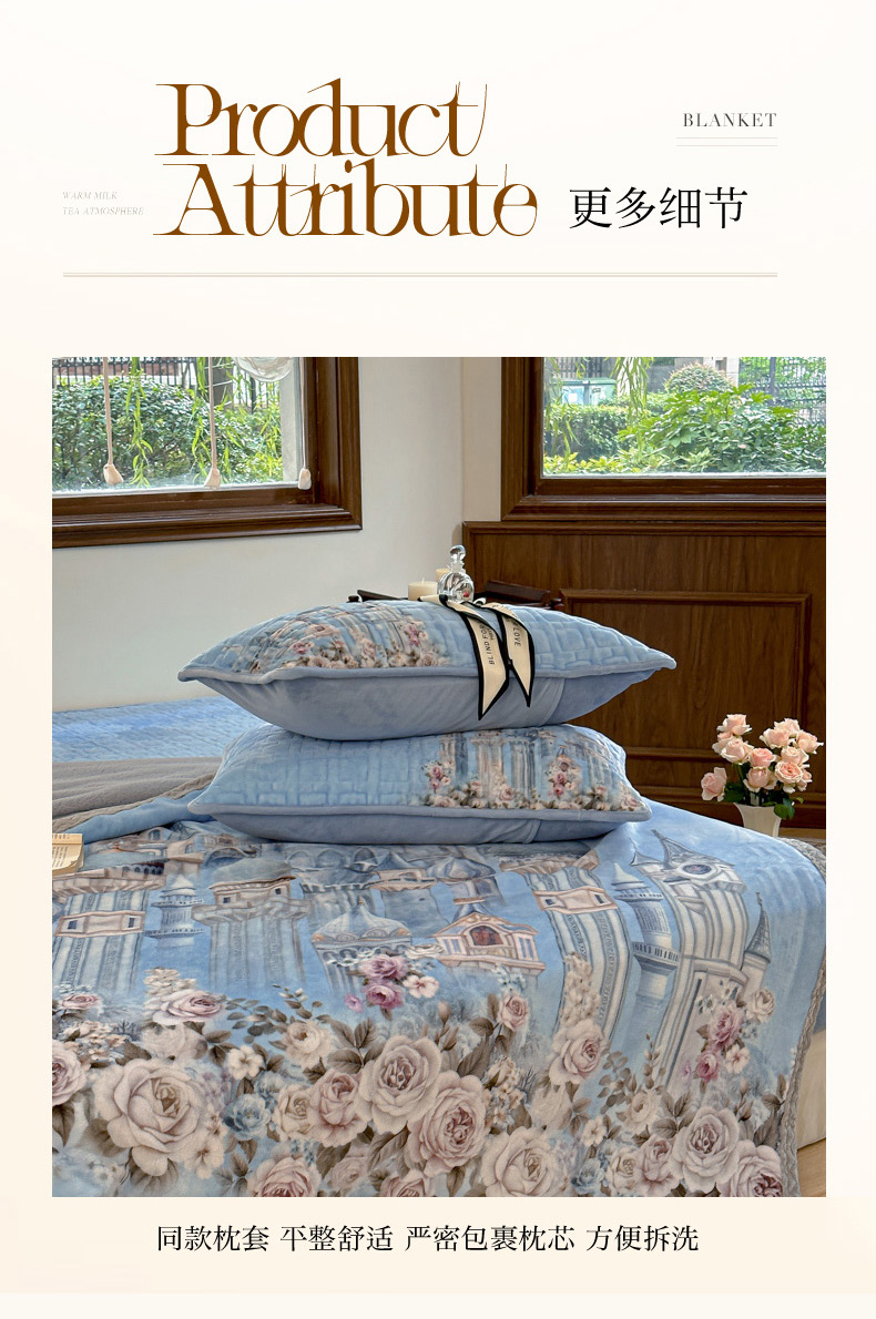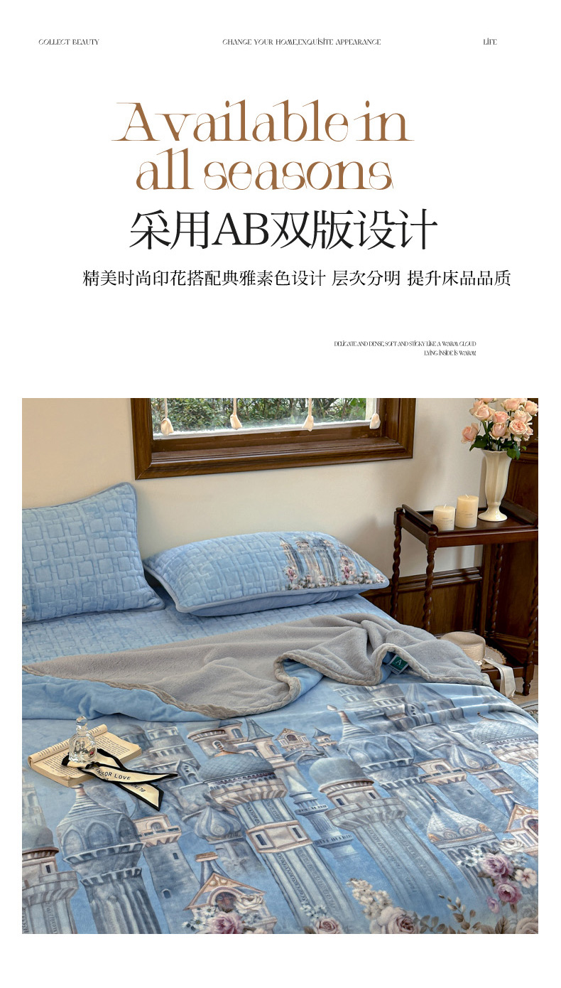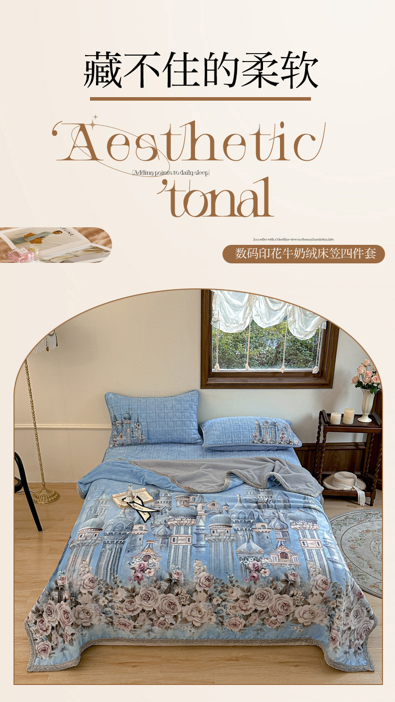 (总)麋兔 2024新款法式原创手绘牛奶绒床笠盖毯,卡蒂亚,梦幻城堡,秘境庄园,莫兰,莫奈,维密