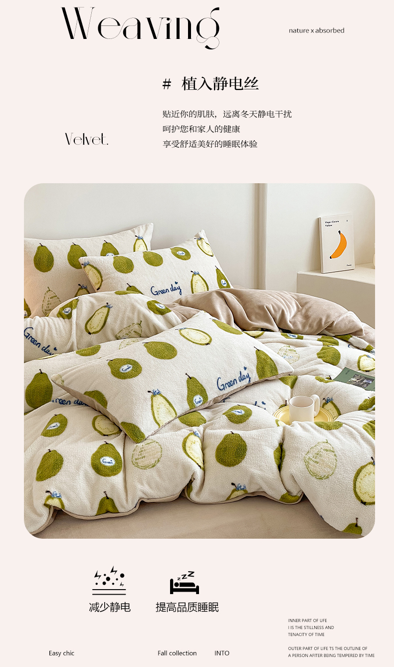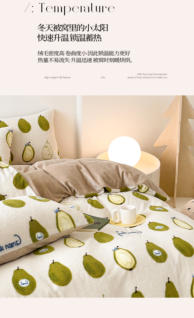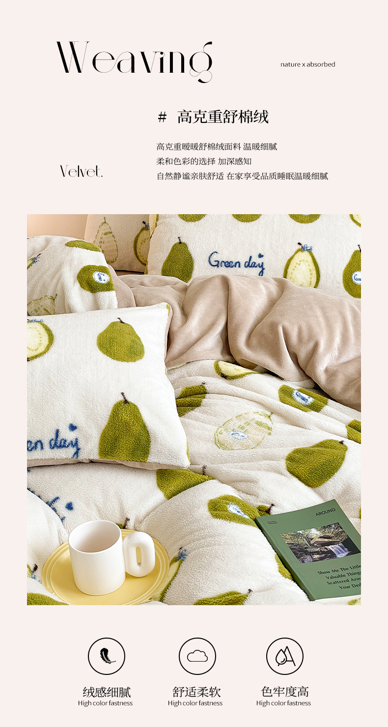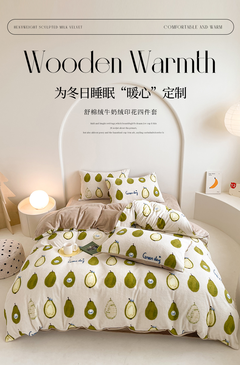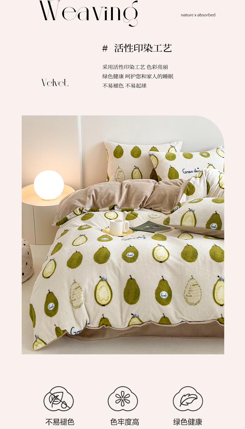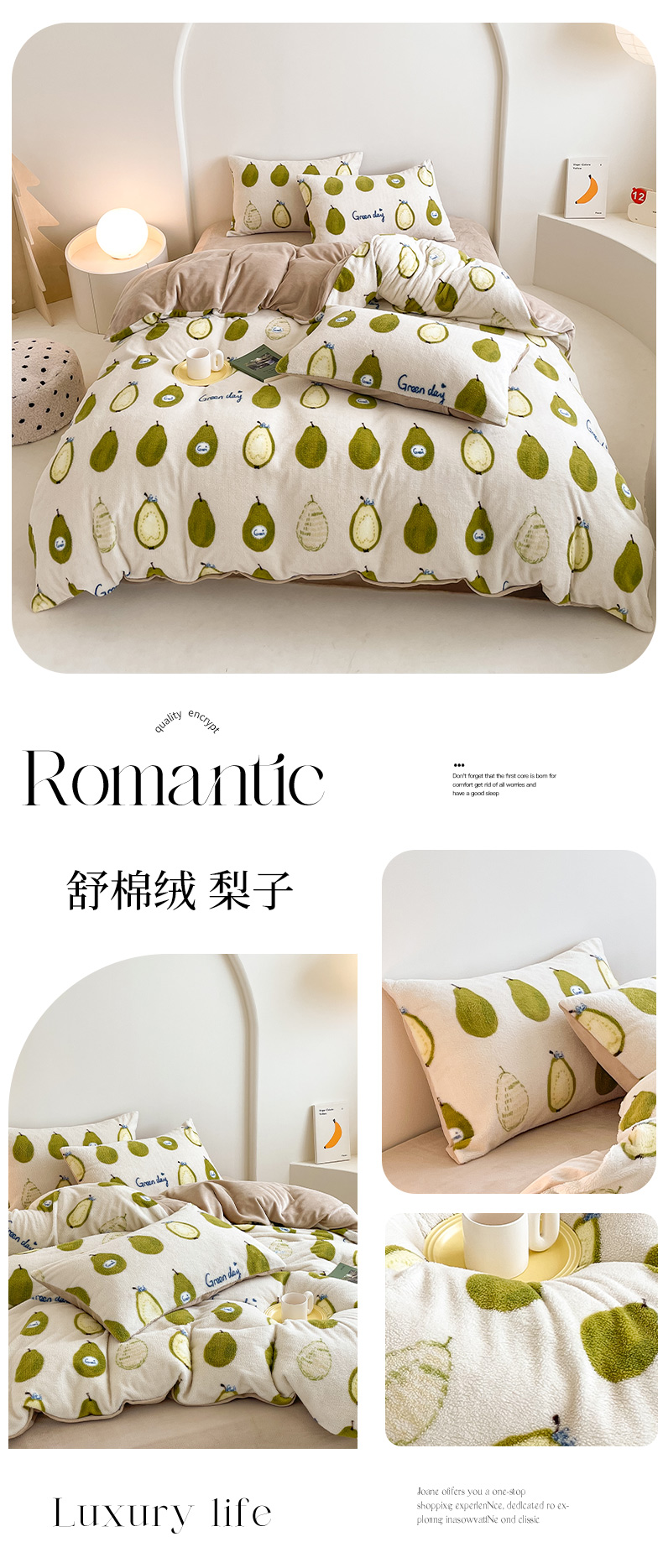 商品名称:山茶家纺 2024新款舒棉绒牛奶绒印花四件套 舒棉绒-梨子