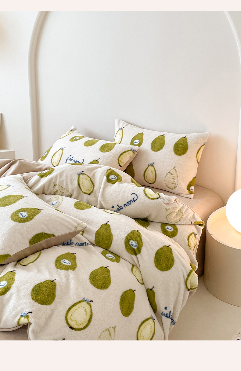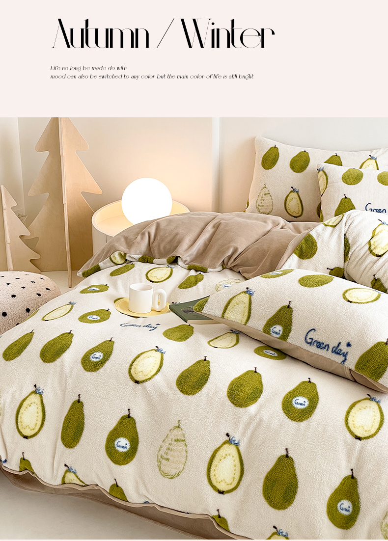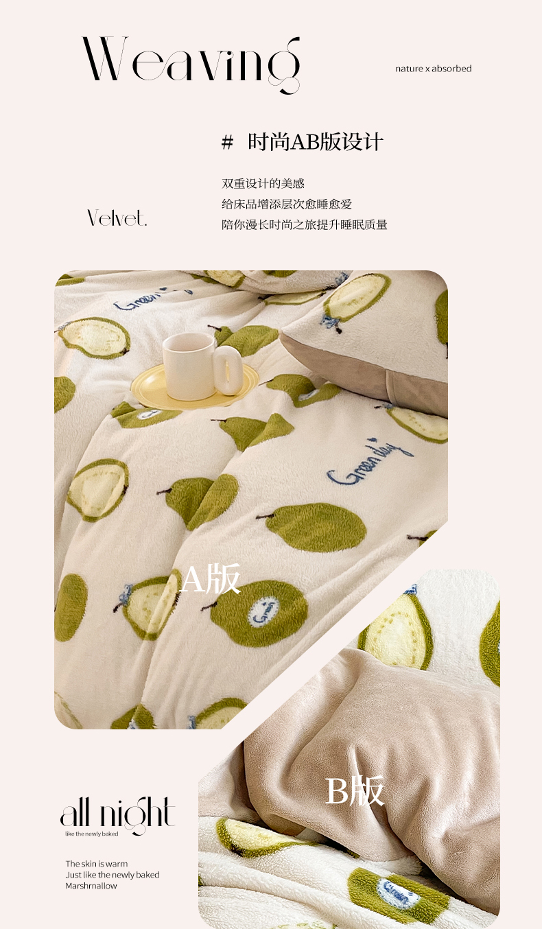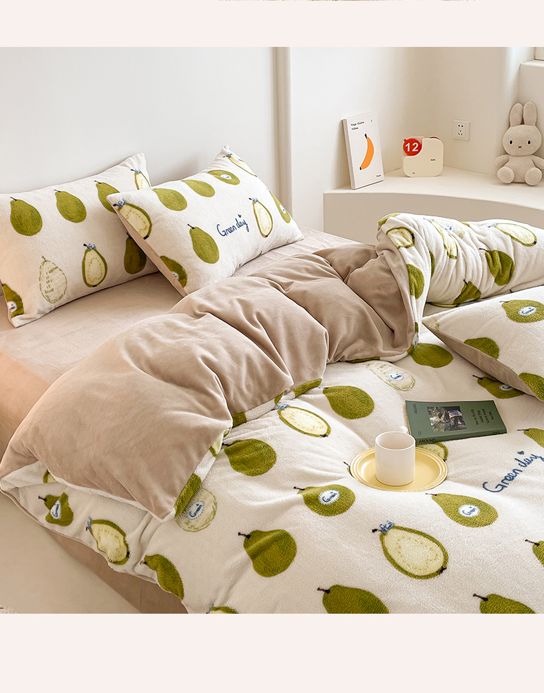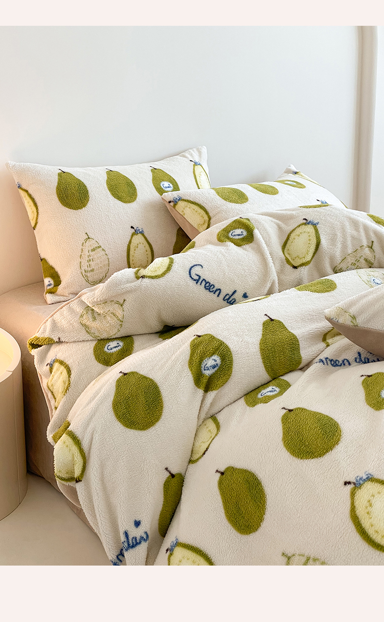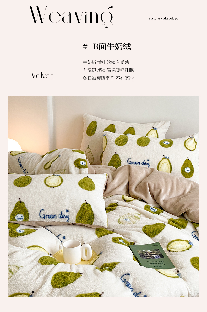 商品名称:山茶家纺 2024新款舒棉绒牛奶绒印花四件套 舒棉绒-梨子