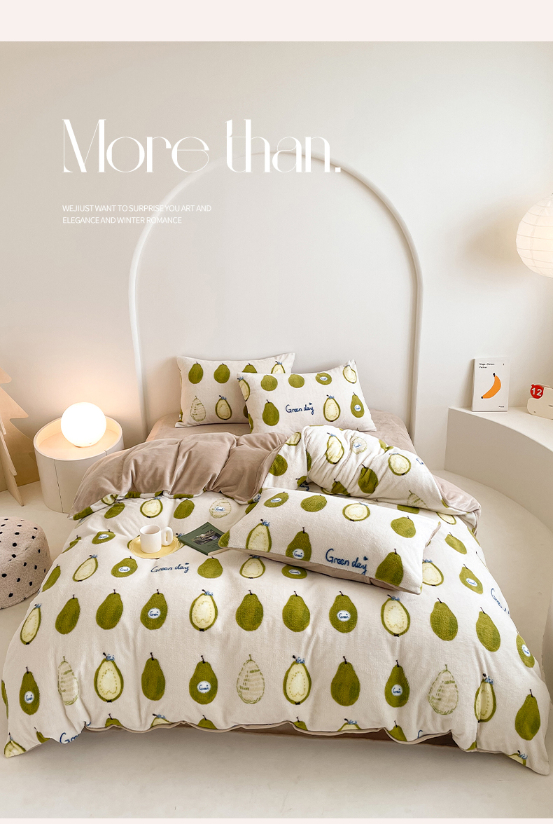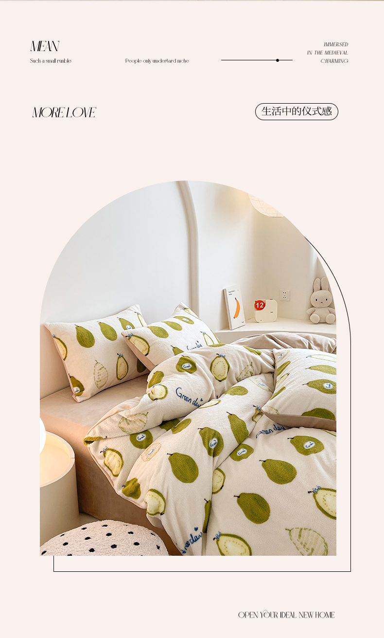 山茶家纺 2024新款舒棉绒牛奶绒印花四件套 舒棉绒-梨子