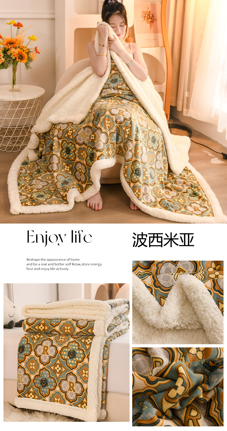 商品名称:2025新款毛毯AB版牛奶绒+羊羔绒毯子复合多功能午睡毯 波西米亚