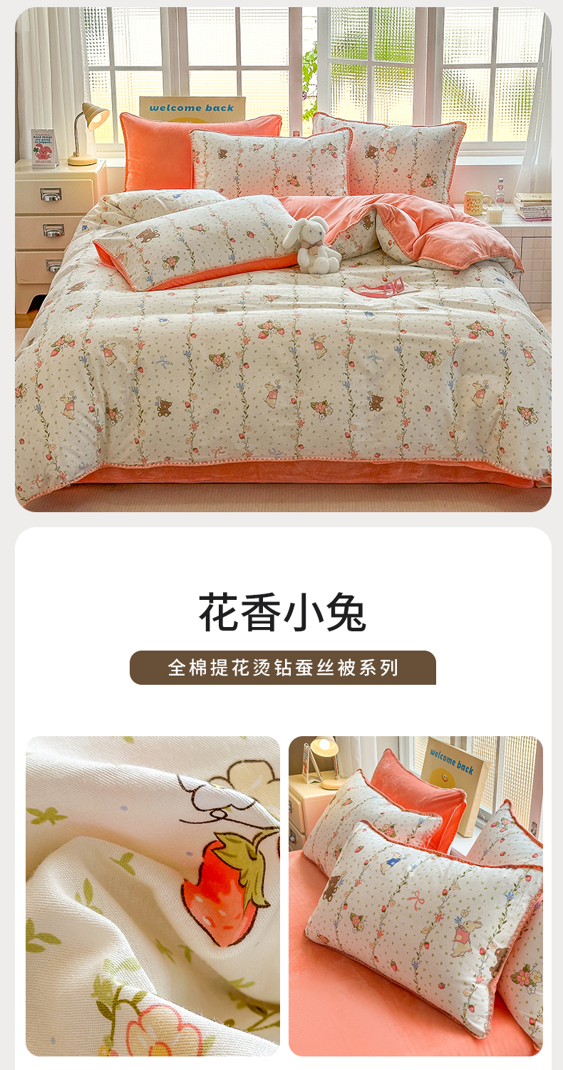 当前位置: 91家纺网 > 商品网购 > 床品套件 > 四件套 > 牛奶绒四件套 > 2025新款三角针贝壳边棉加牛奶绒工艺款四件套 花香小兔