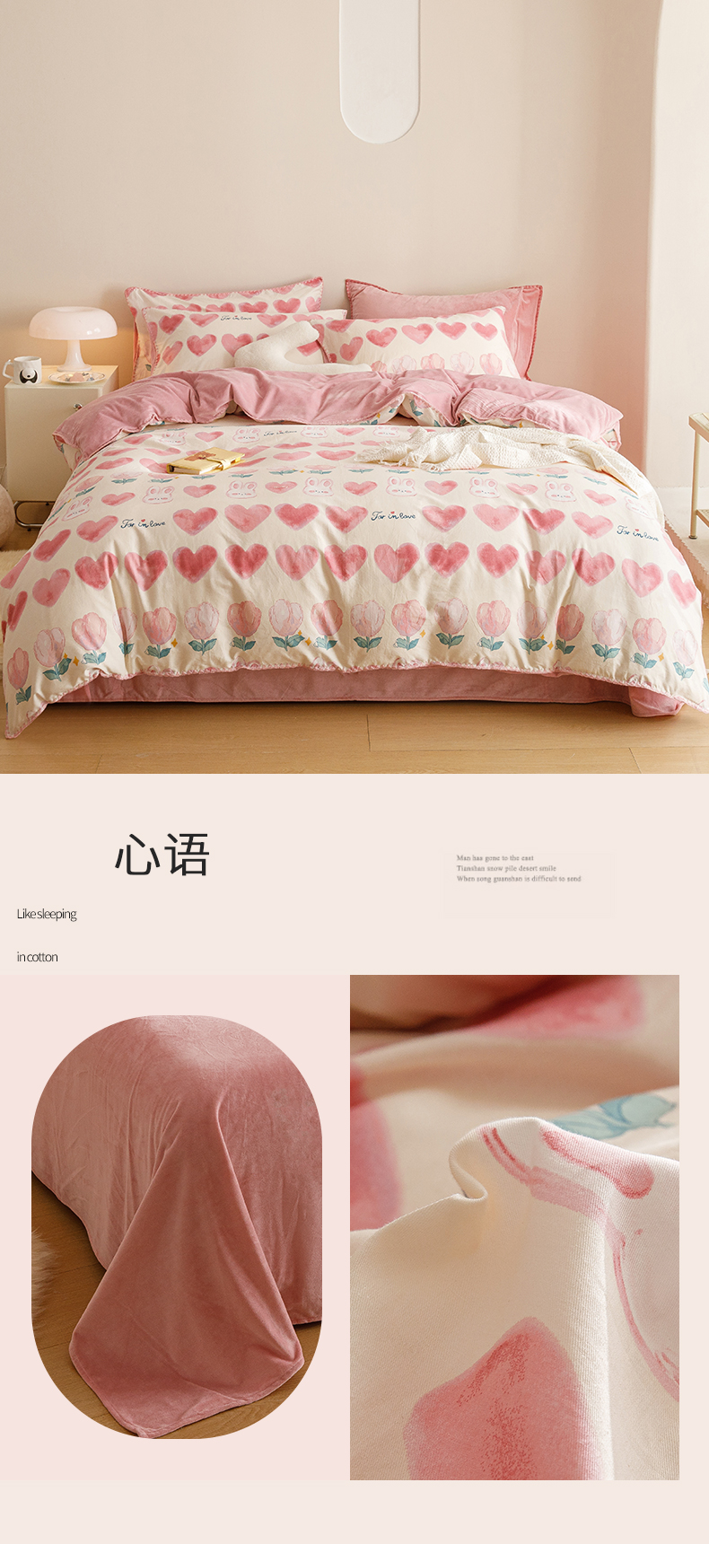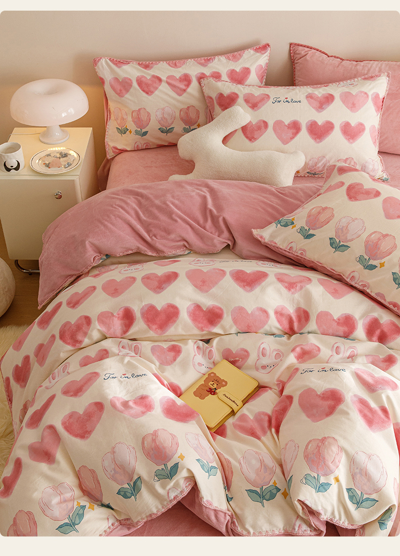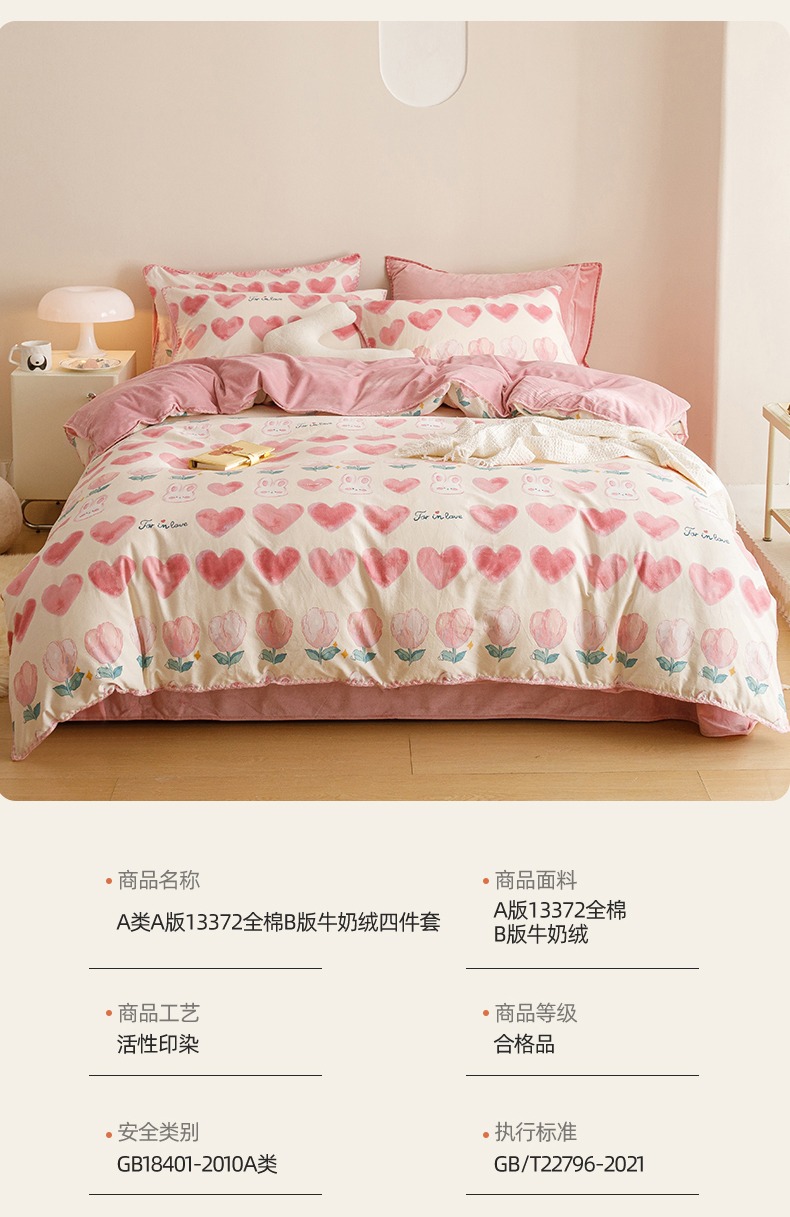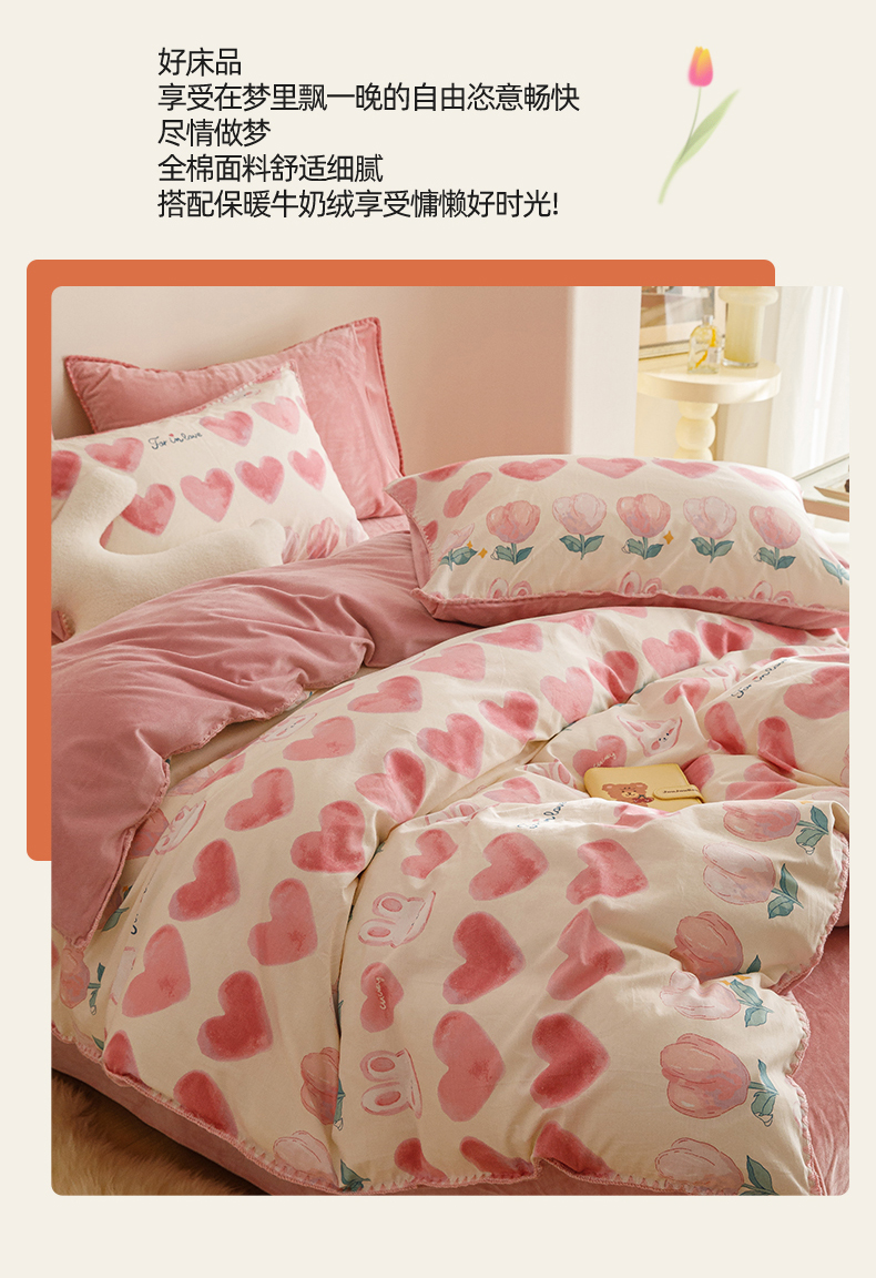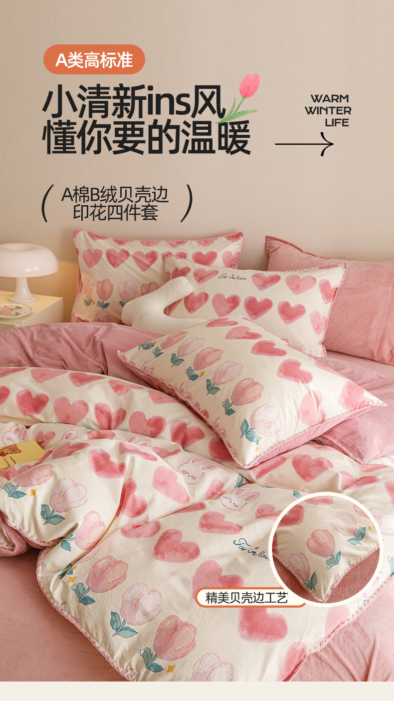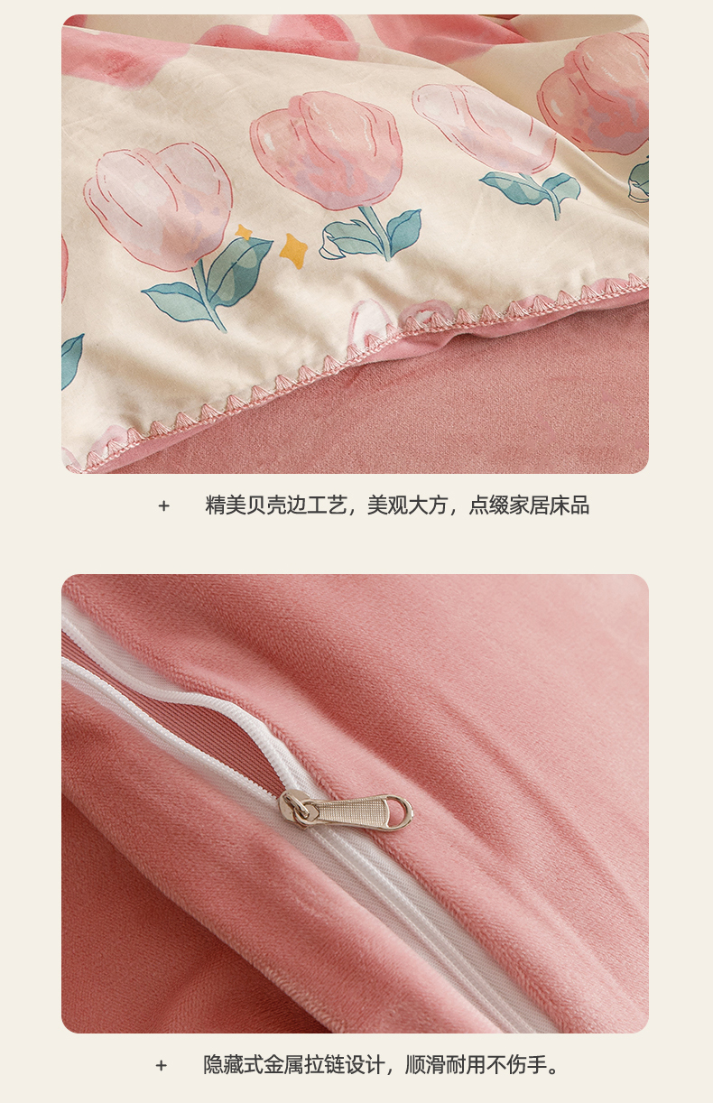 当前位置: 91家纺网 > 商品网购 > 床品套件 > 四件套 > 牛奶绒四件套 > 2025新款三角针贝壳边棉加牛奶绒工艺款四件套 心语