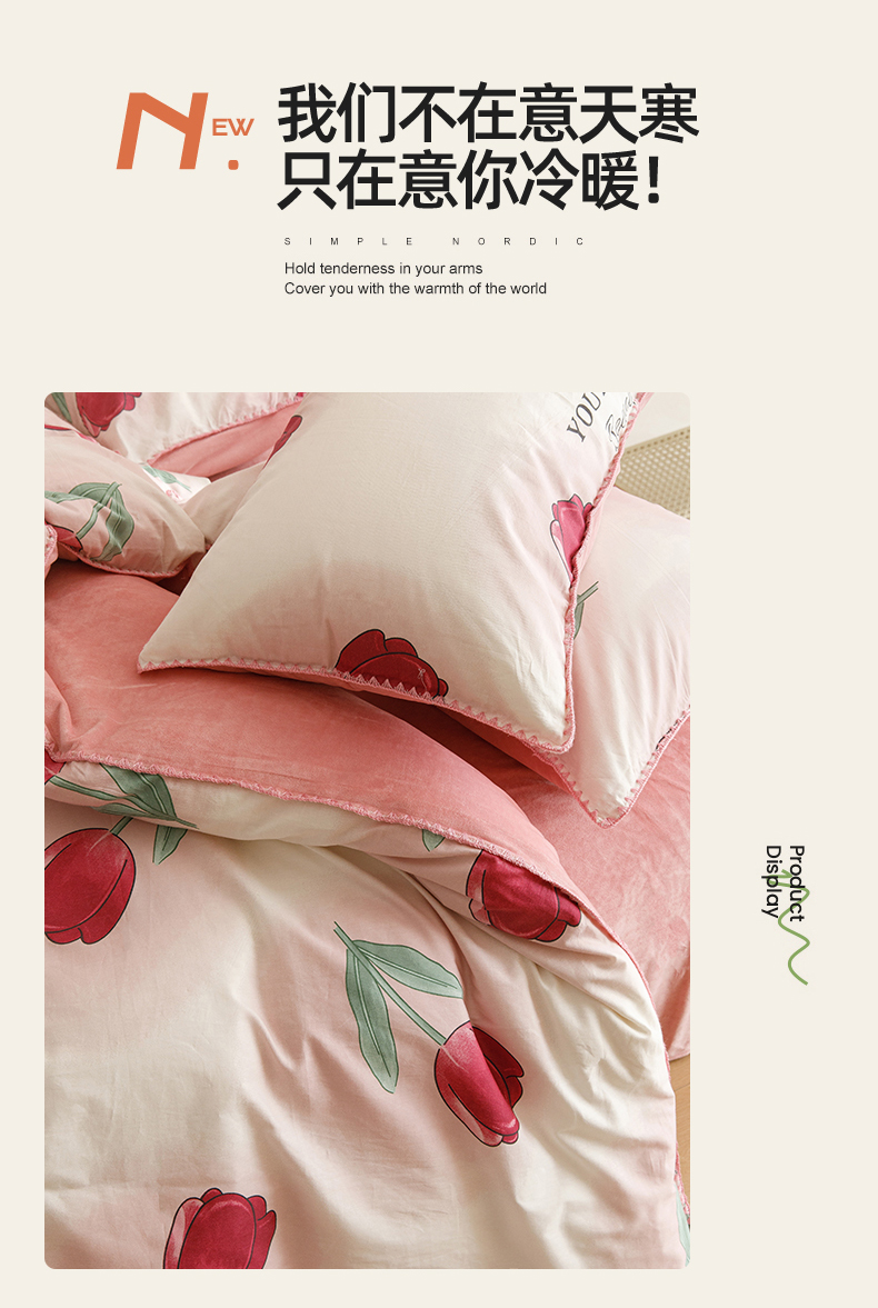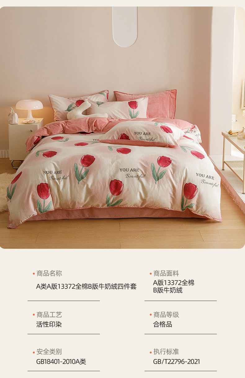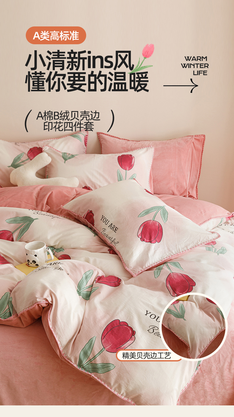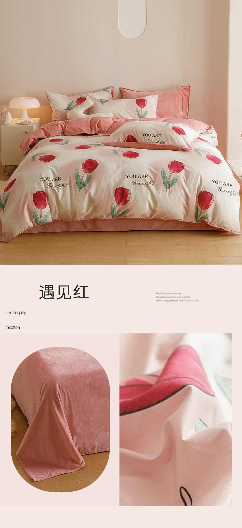 当前位置: 91家纺网 > 商品网购 > 床品套件 > 四件套 > 牛奶绒四件套 > 2025新款三角针贝壳边棉加牛奶绒工艺款四件套 遇见红