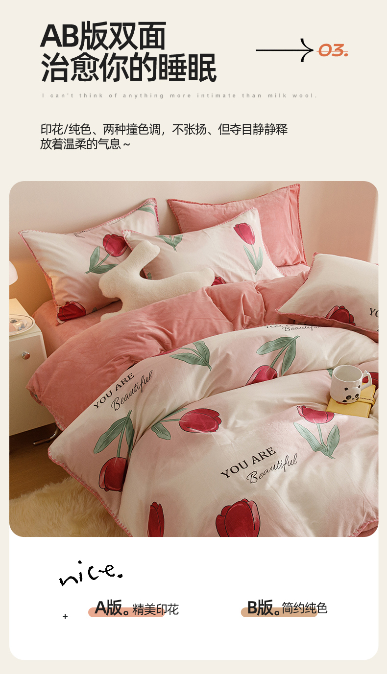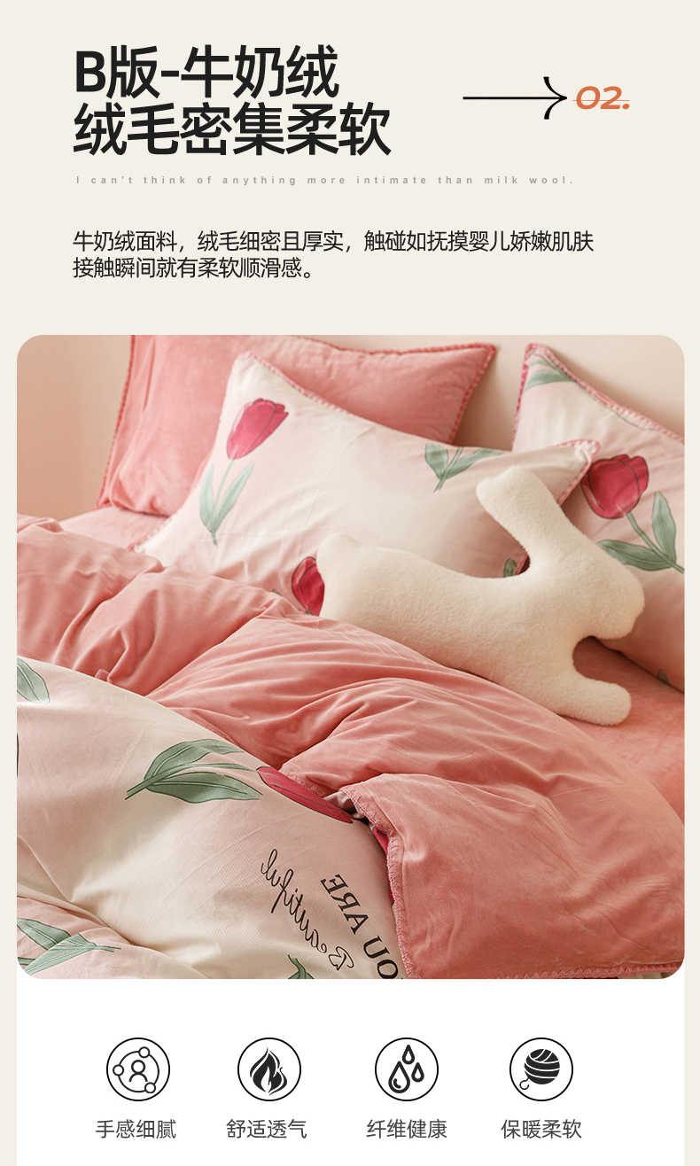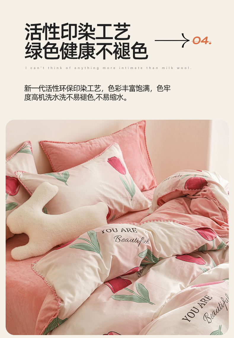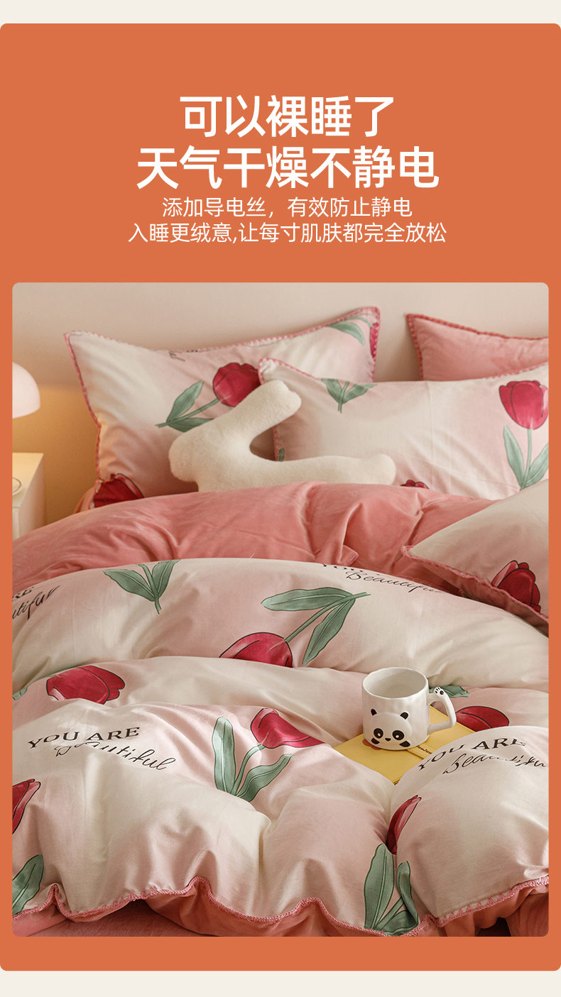 当前位置: 91家纺网 > 商品网购 > 床品套件 > 四件套 > 牛奶绒四件套 > 2025新款三角针贝壳边棉加牛奶绒工艺款四件套 遇见红