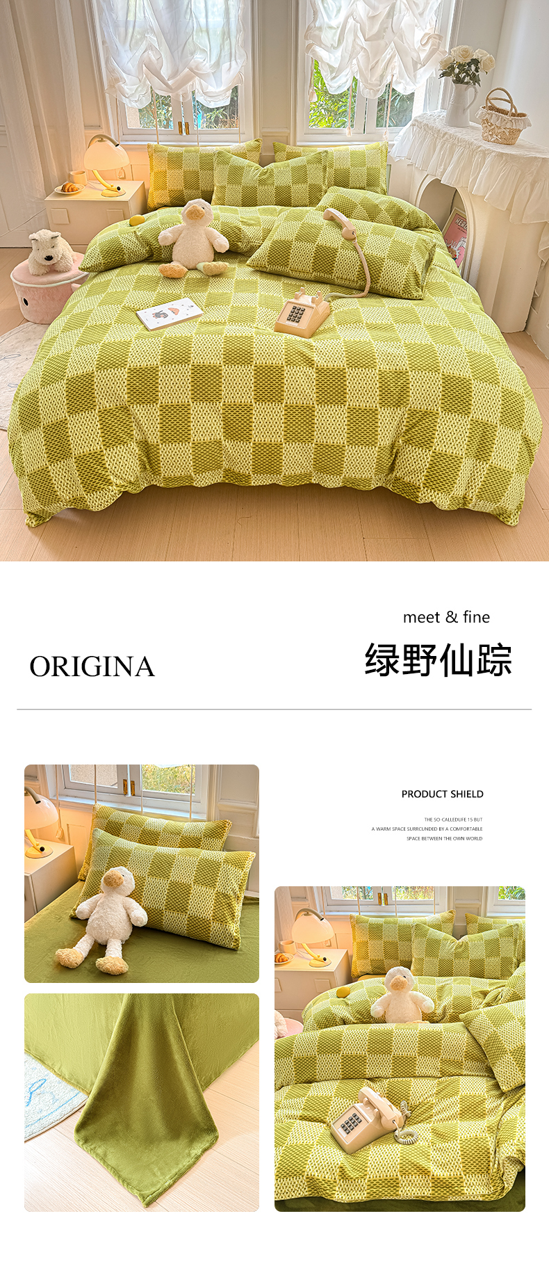 当前位置: 91家纺网 > 商品网购 > 床品套件 > 四件套 > 牛奶绒四件套 > 2025新款小清新双面牛奶绒四件套 绿野仙踪