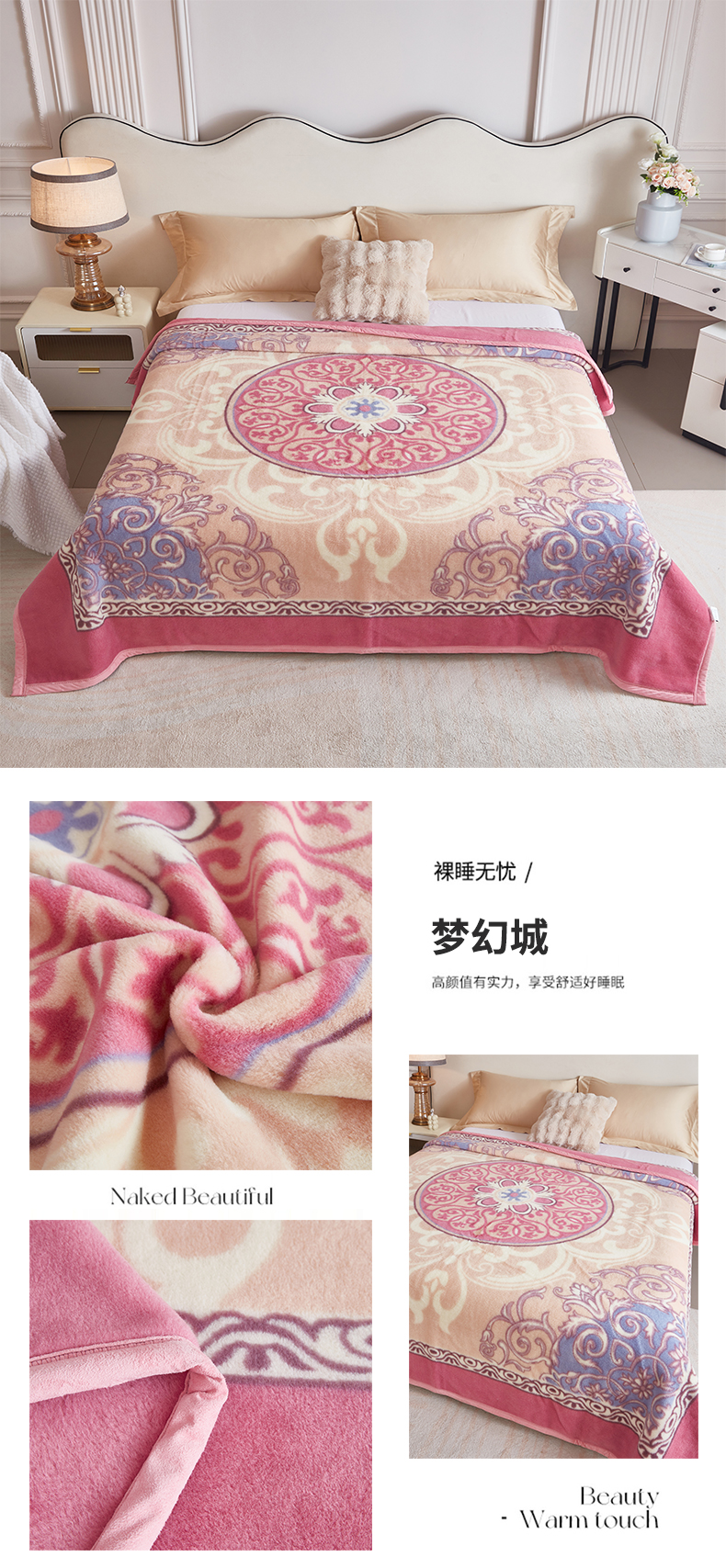 商品名称:2024新款柔软欧式轻奢真羊毛毛毯毯子 梦幻城