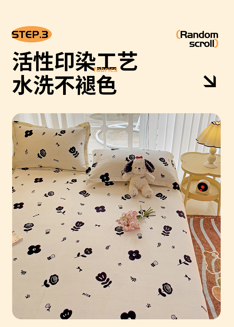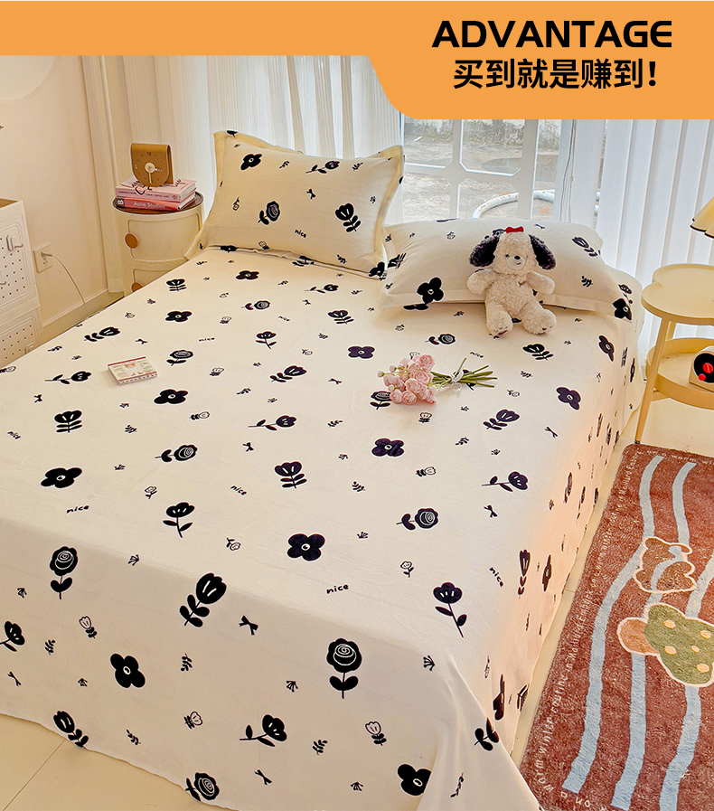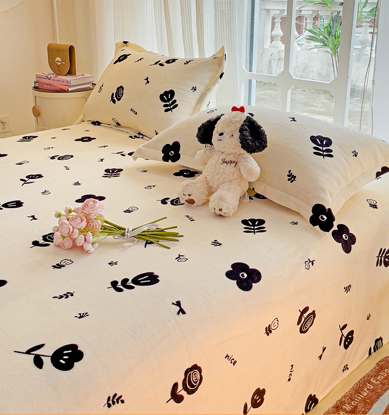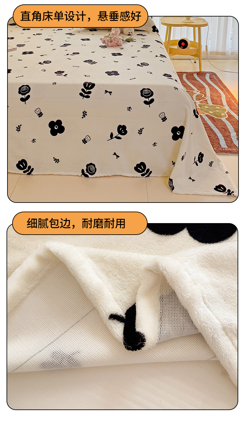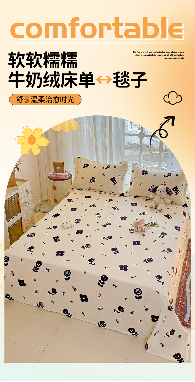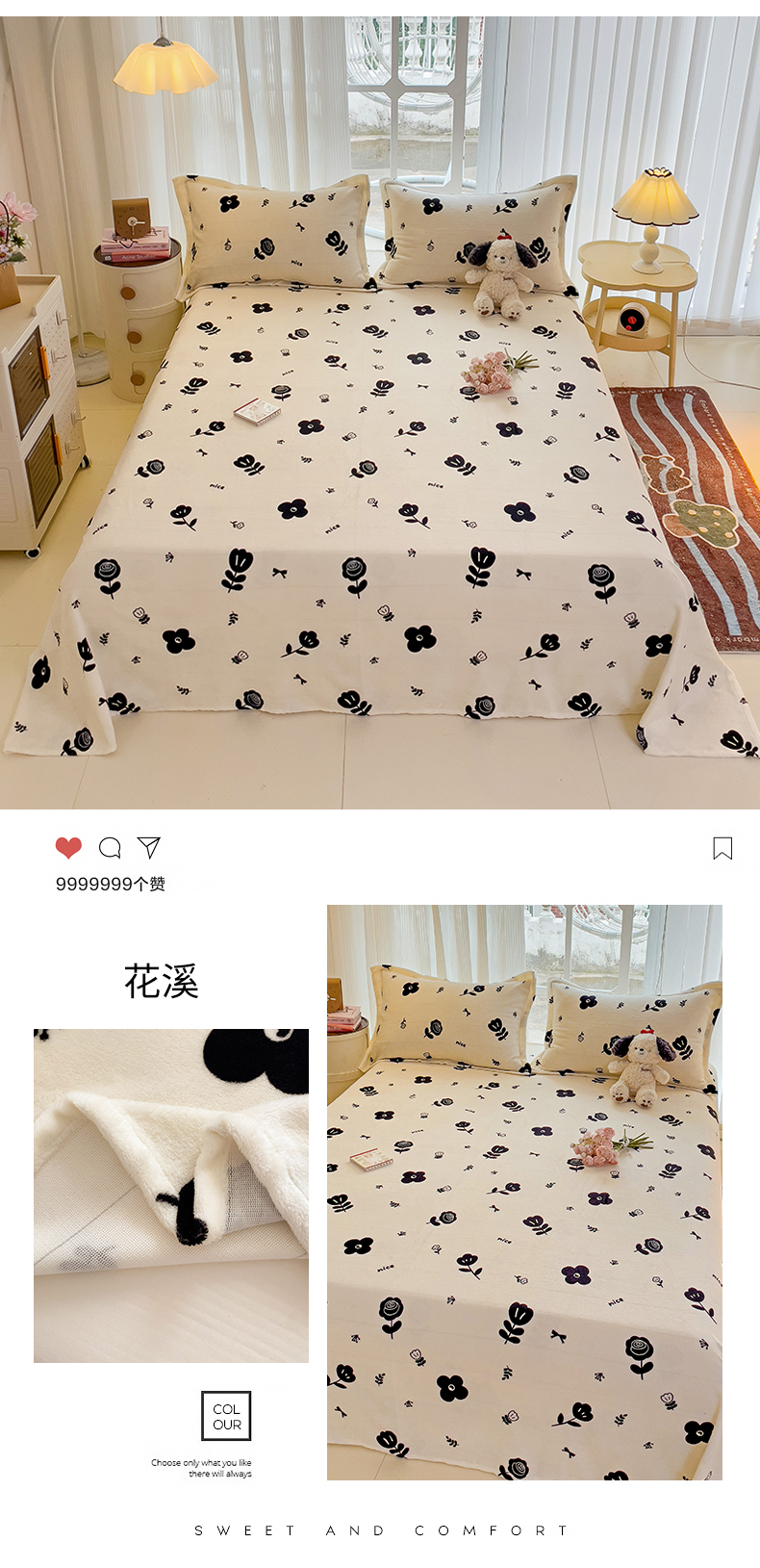 名兮家居 2024新款时尚卡通风高克重牛奶绒床单-盖毯 花溪