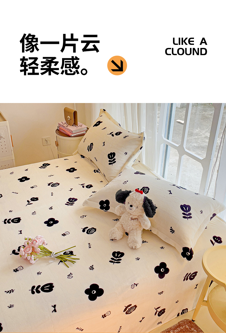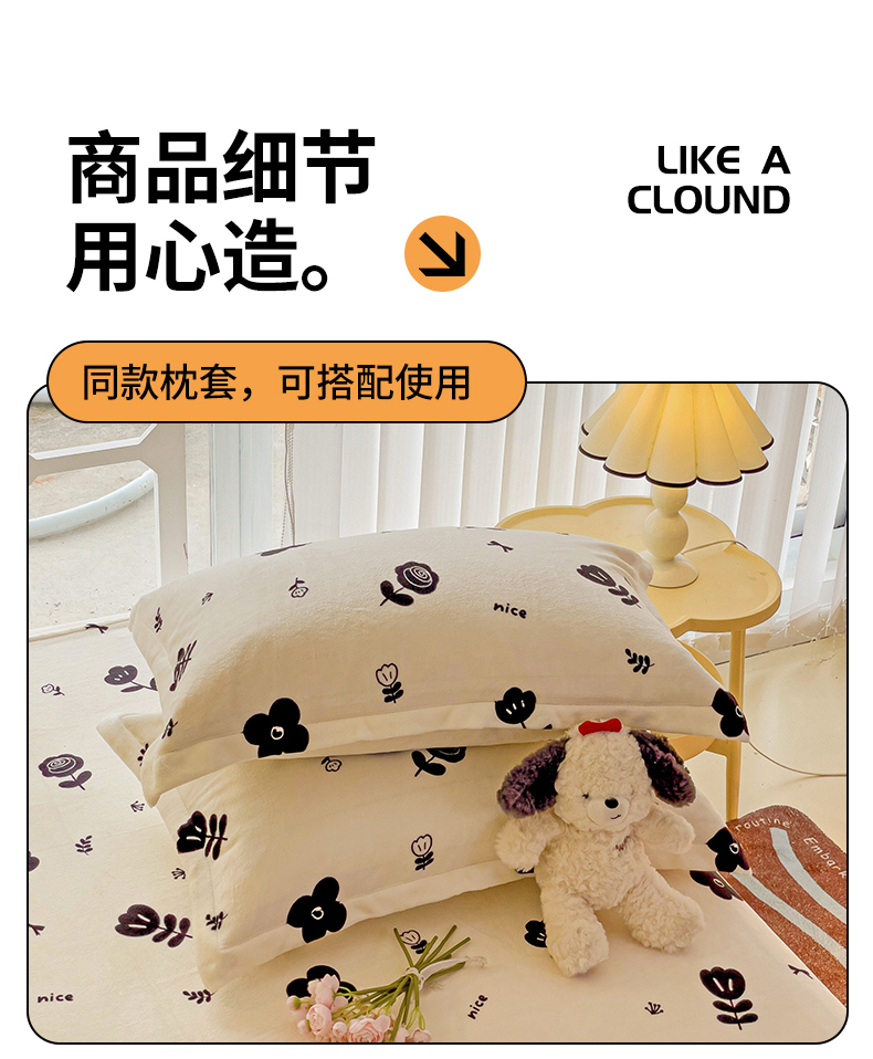 当前位置: 91家纺网 > 商品网购 > 床上用品 > 床单 > 名兮家居 2024新款时尚卡通风高克重牛奶绒床单-盖毯 花溪