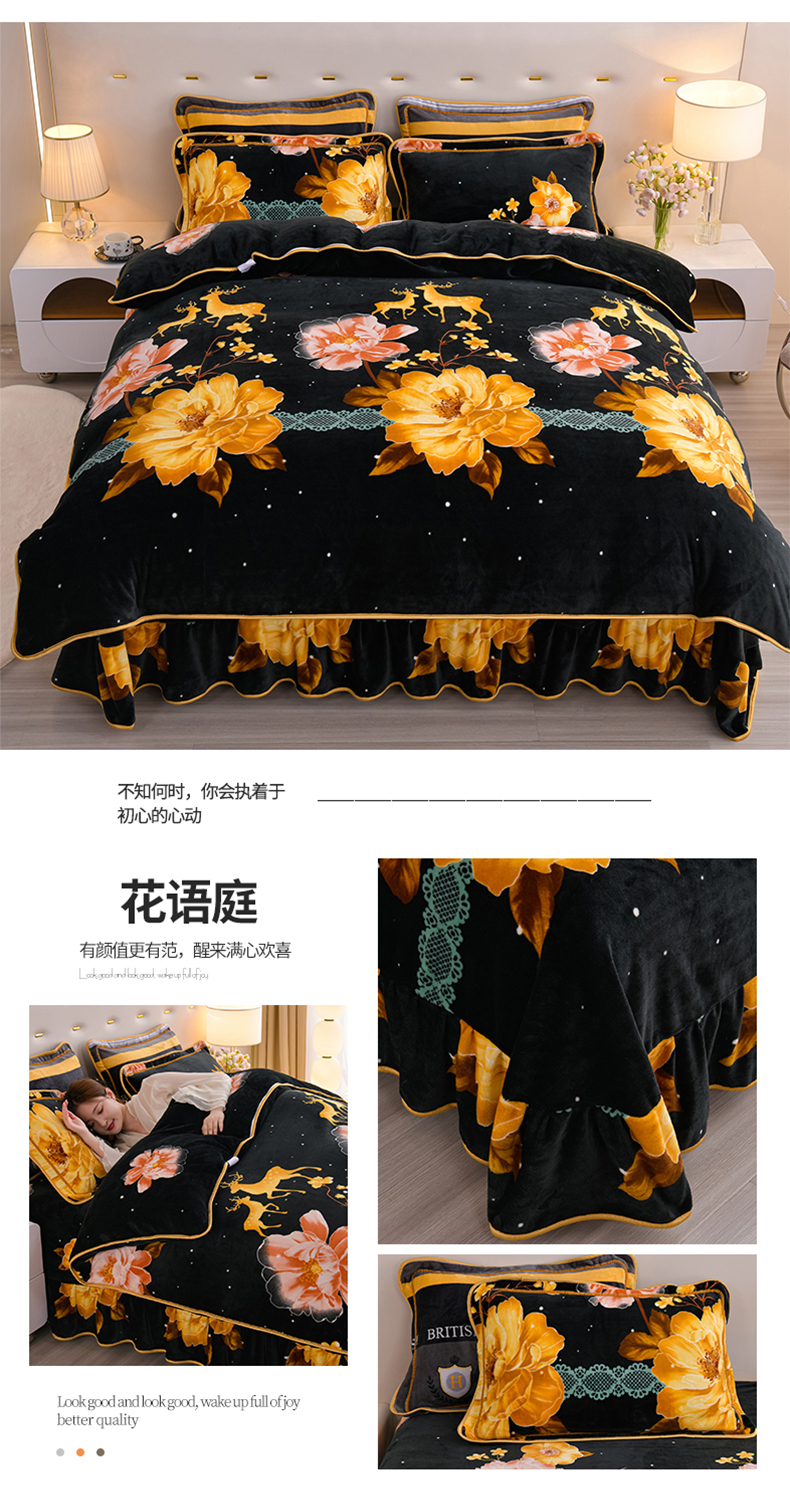 阿亮家居 2024新款8.5斤保暖牛奶绒金貂绒床裙款四件套 花语庭