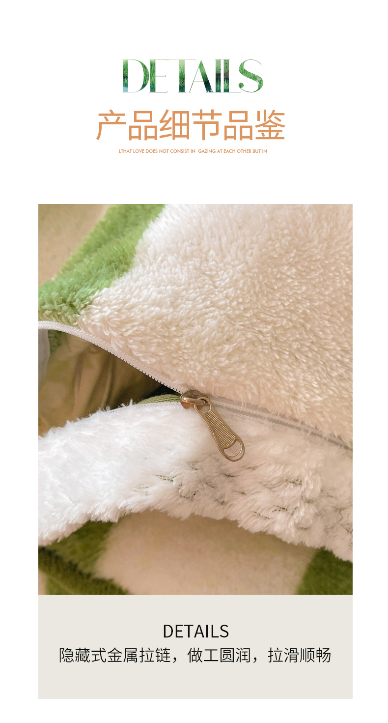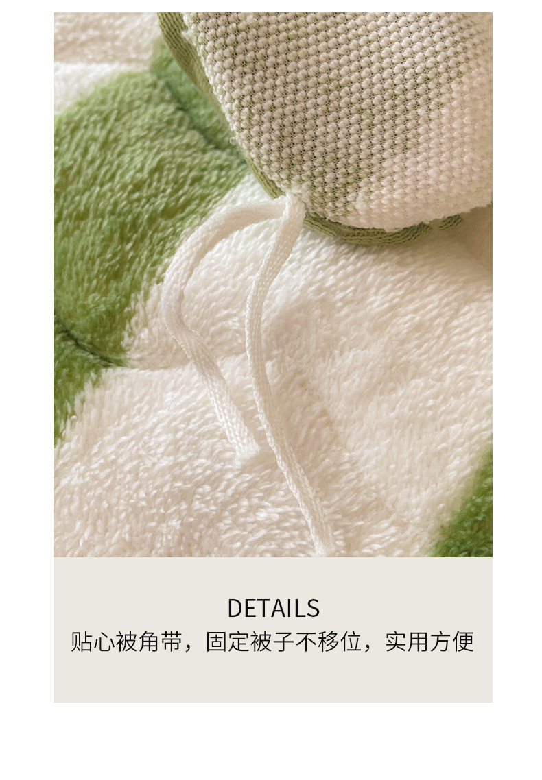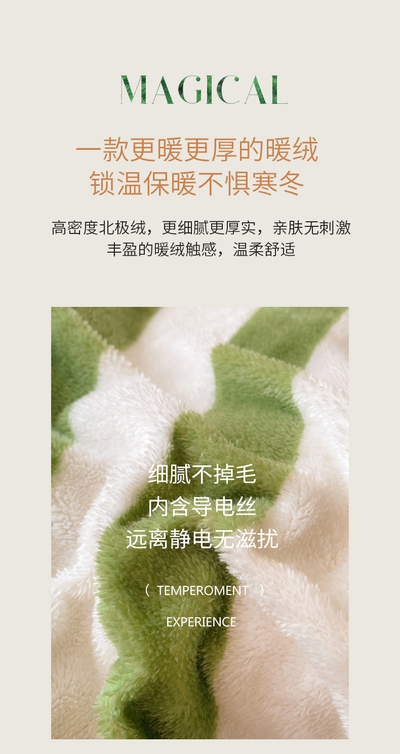 商品名称:2024新款A类北极绒格子-条纹系列宽包边加厚被套(暖光图) 条纹-豆绿