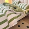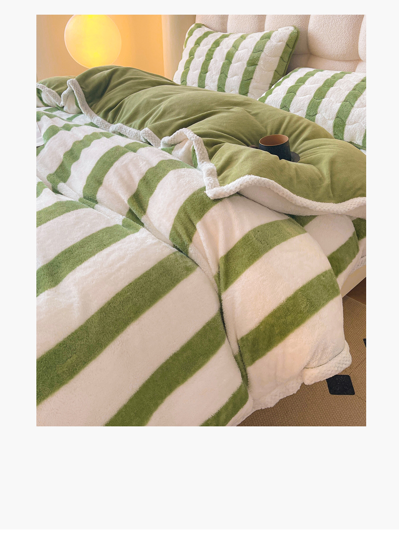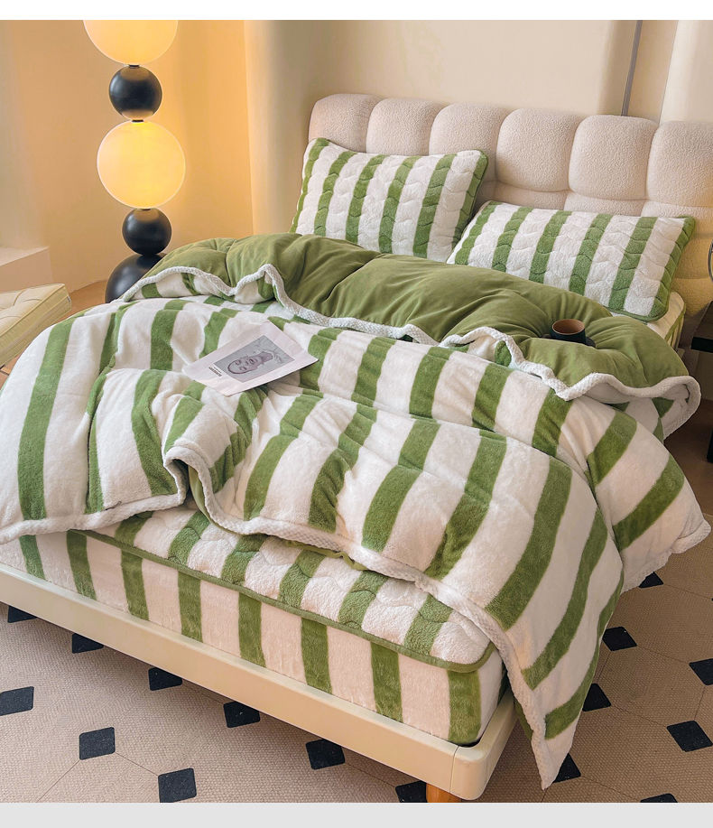 2024新款A类北极绒格子-条纹系列宽包边加厚被套(暖光图) 条纹-豆绿