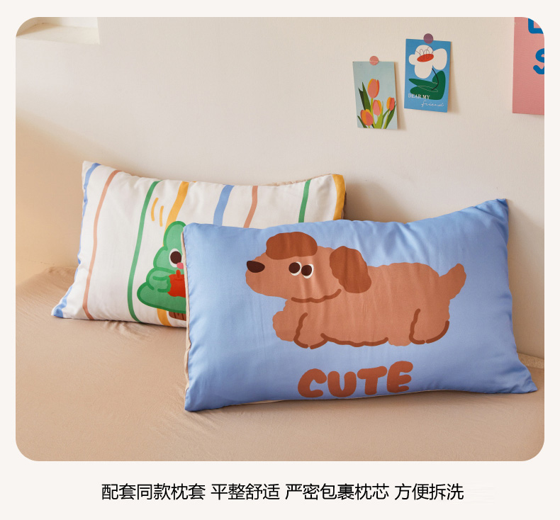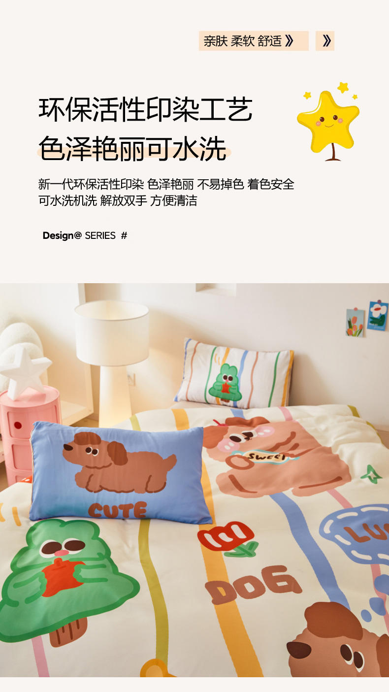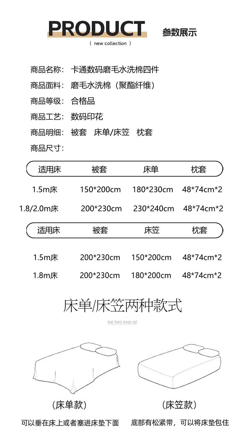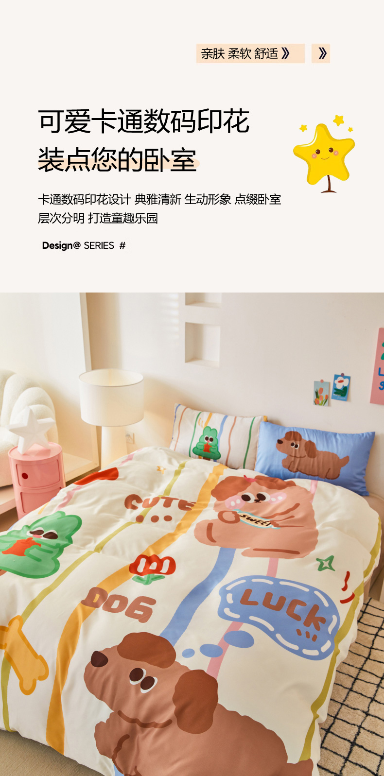 商品名称:花伞家居 2024新款大阪卡通数码印花磨毛水洗棉加厚四件套 可爱幸运