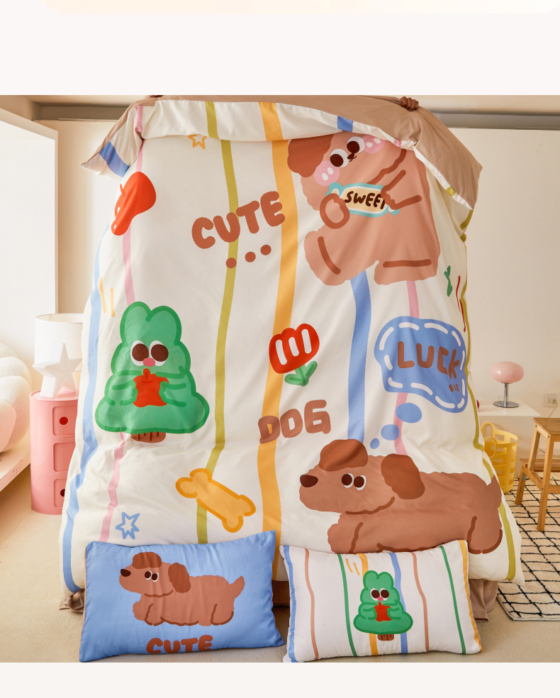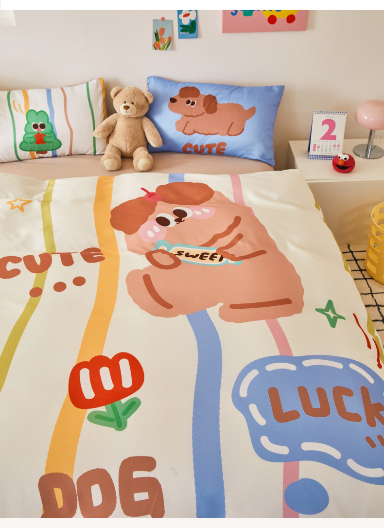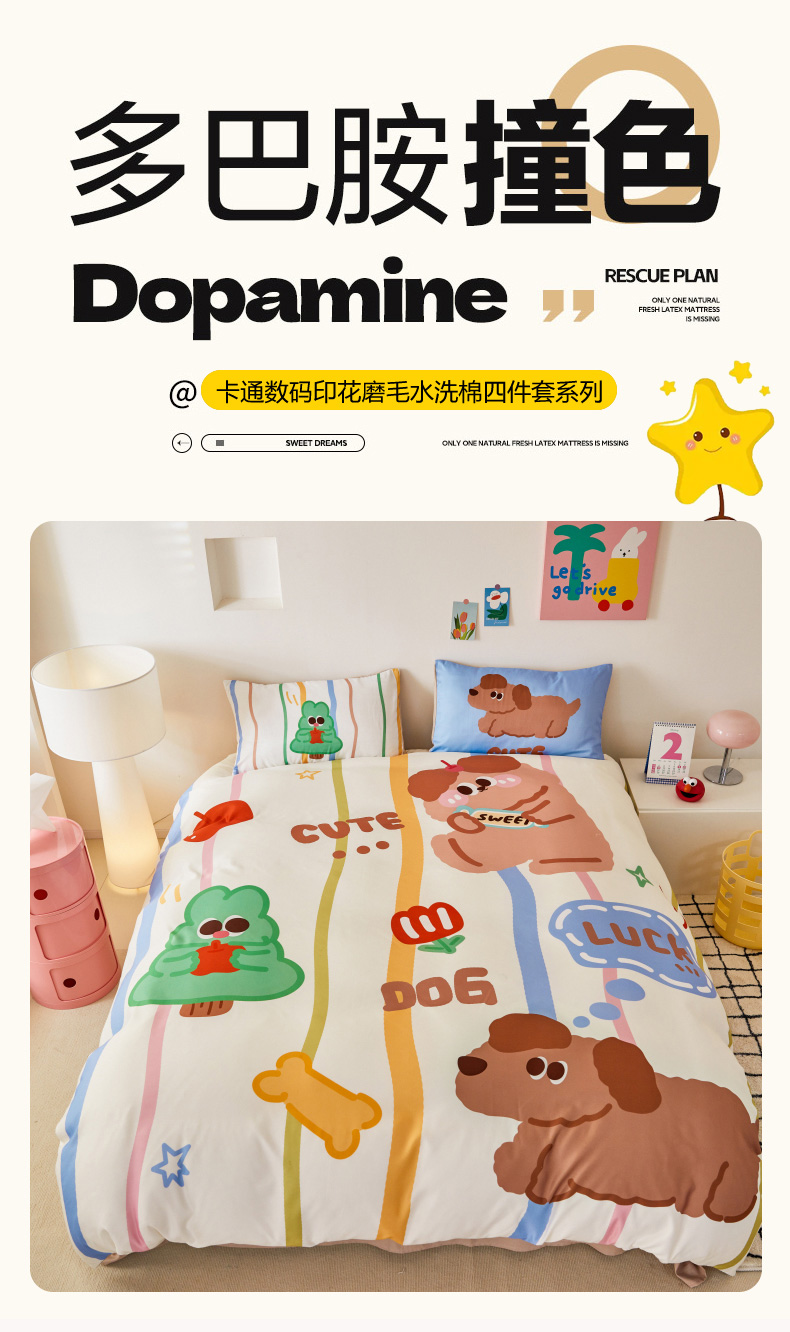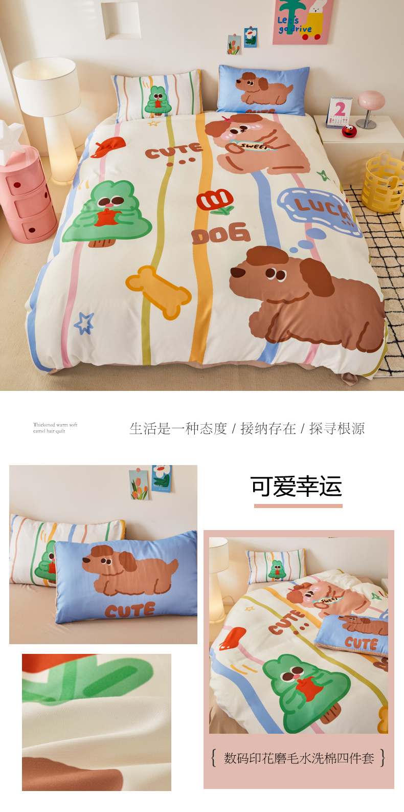 花伞家居 2024新款大阪卡通数码印花磨毛水洗棉加厚四件套 可爱幸运