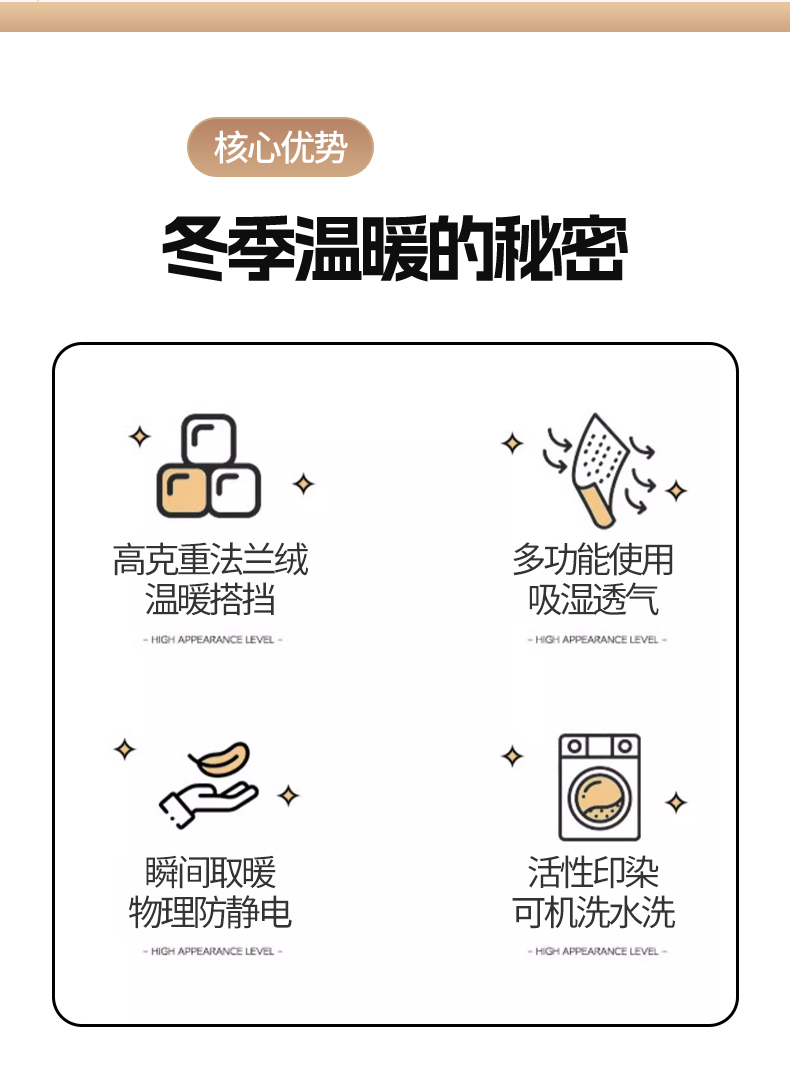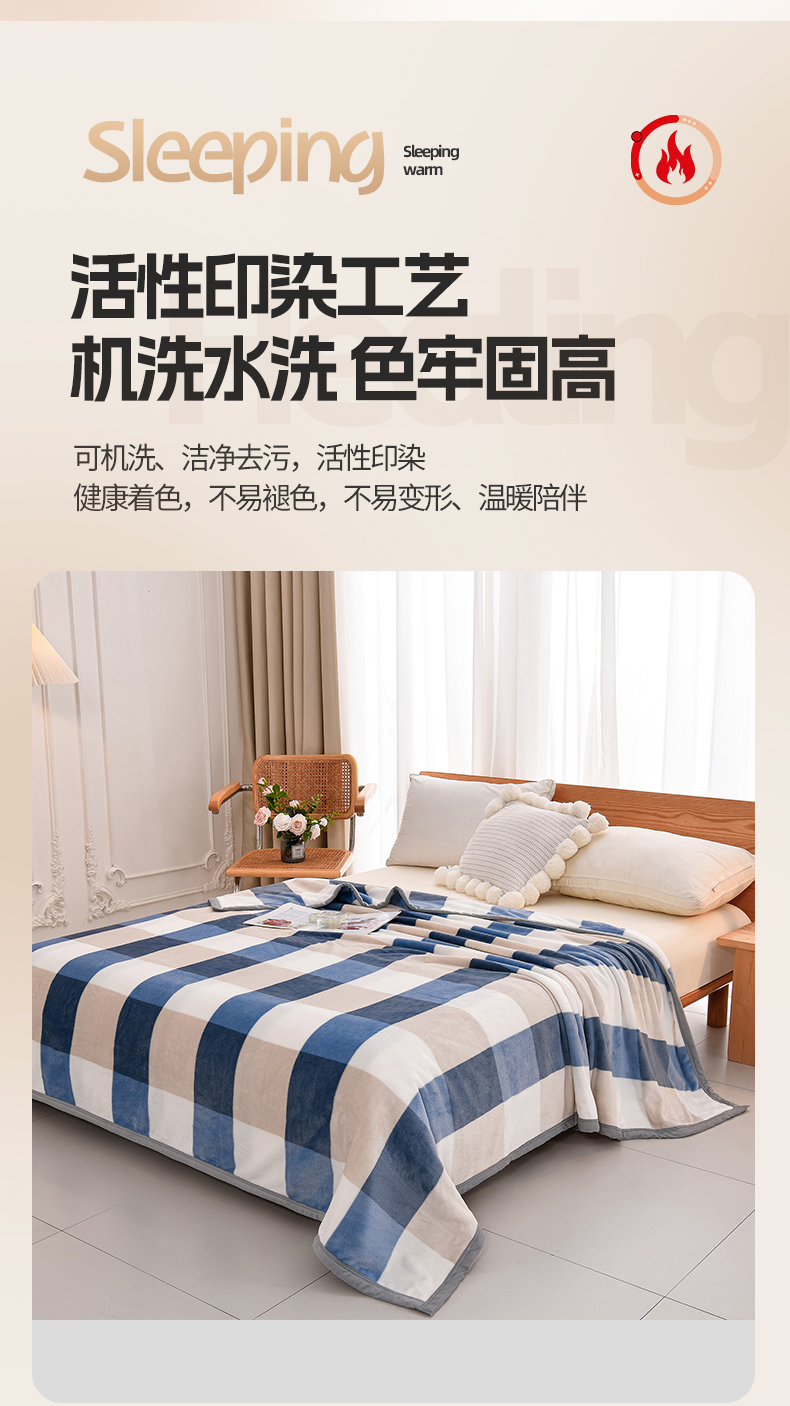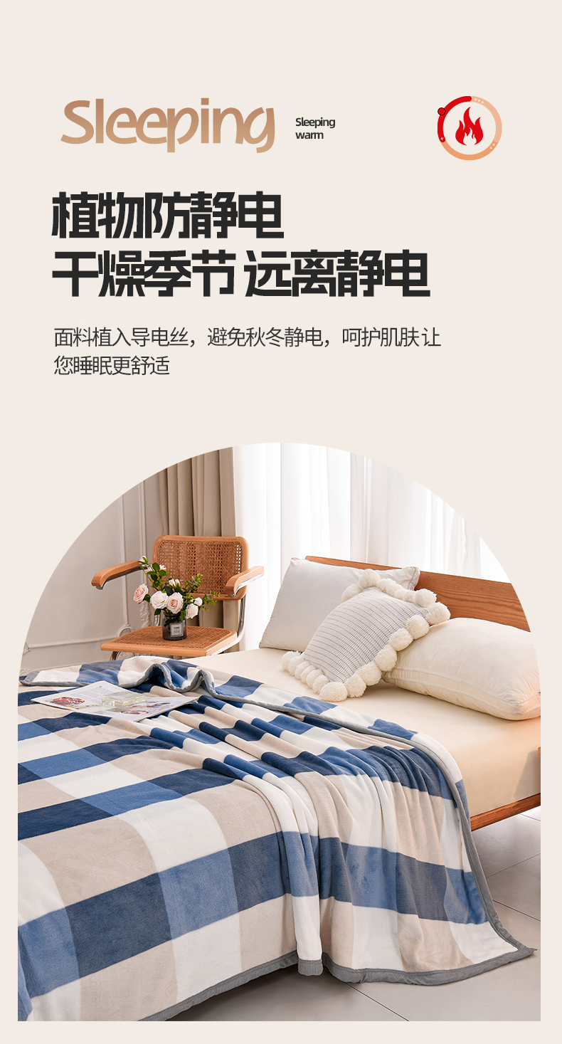 商品名称:仟人梦 2024新款A类高克重保暖法兰绒多功能保暖毛毯 浅驼