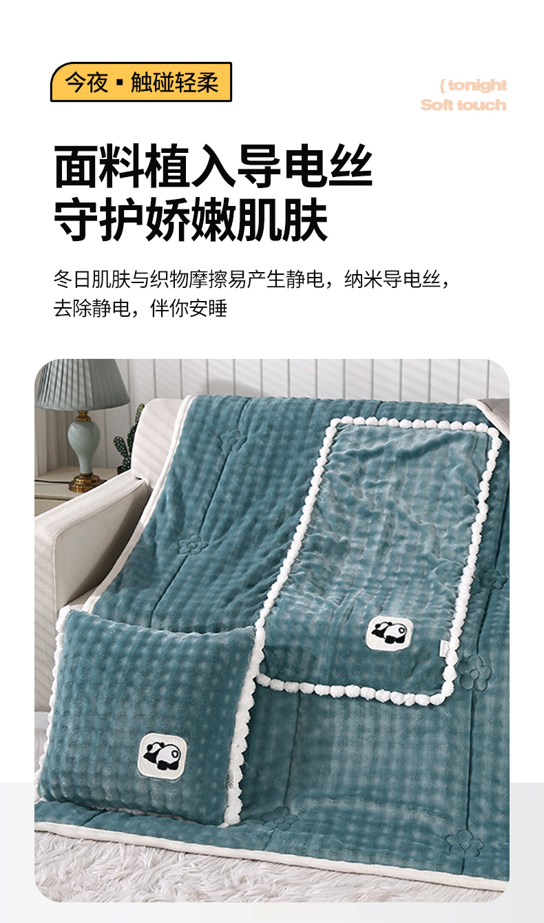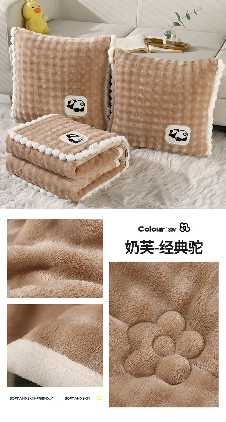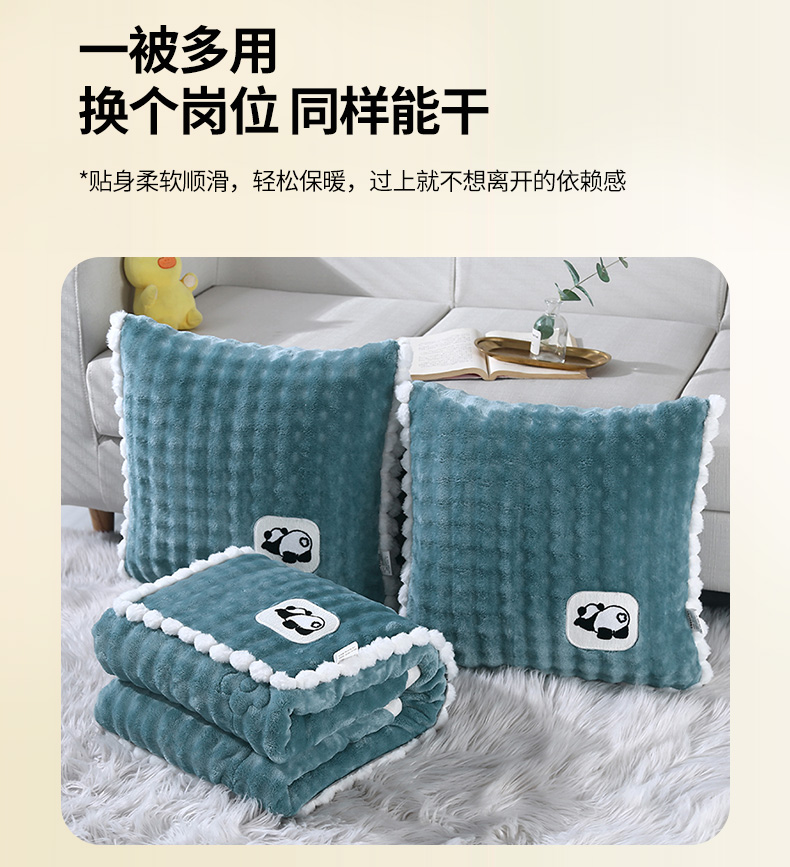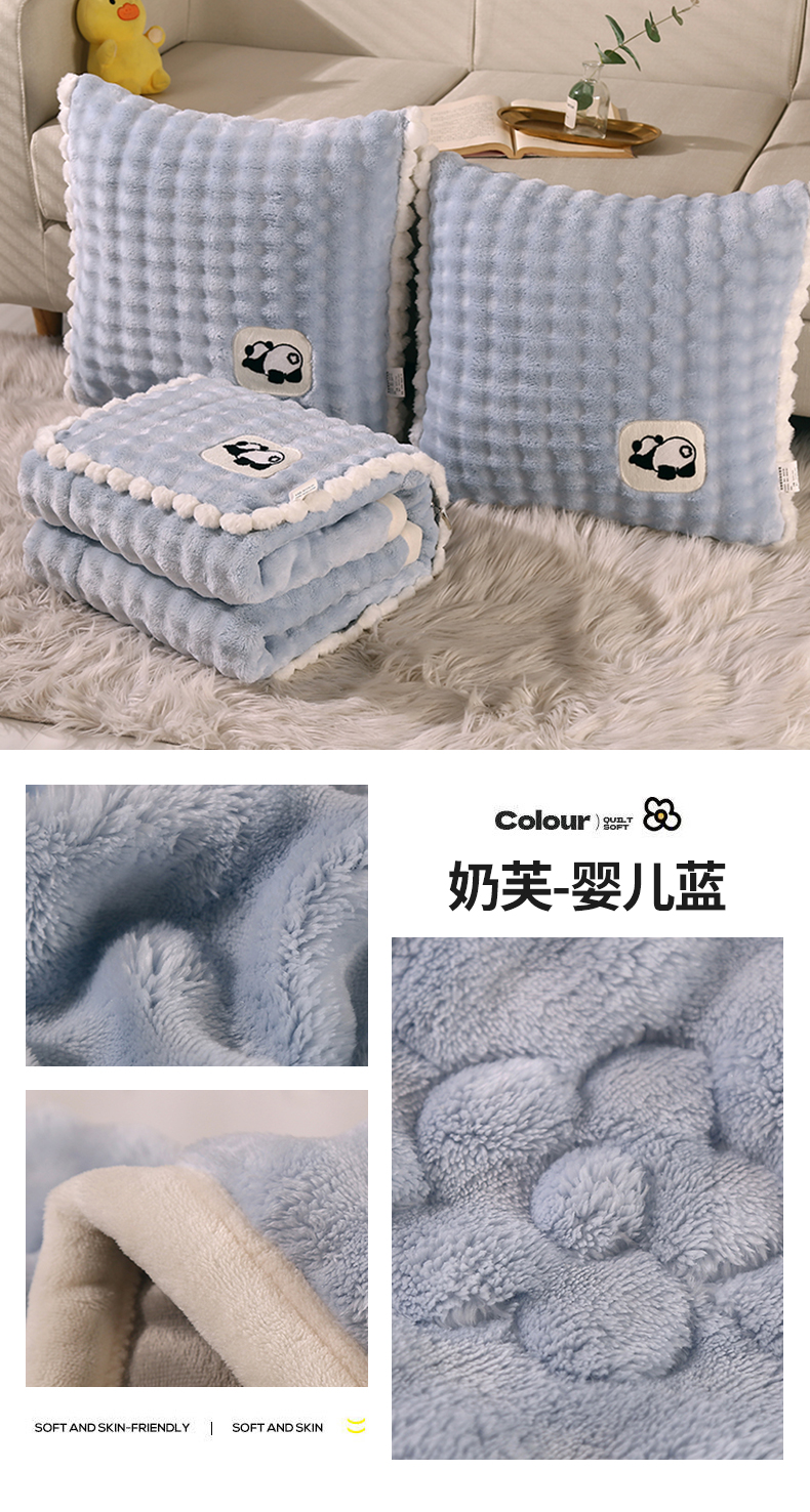 商品名称:伊可爱抱枕被 2024新款秋冬仿兔毛泡泡牛奶绒泡泡夹棉多针绗绣抱枕被毯-奶芙抱枕被 奶芙-少女粉