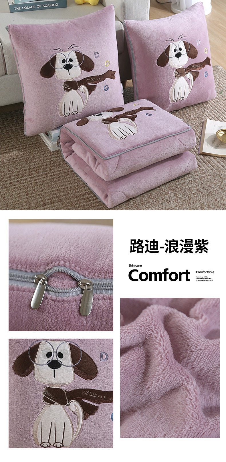 商品名称:伊可爱抱枕被 2024新款秋冬精致牛奶绒贴布绣抱枕被-路迪 路迪-浪漫紫