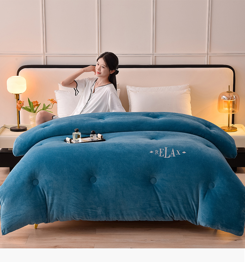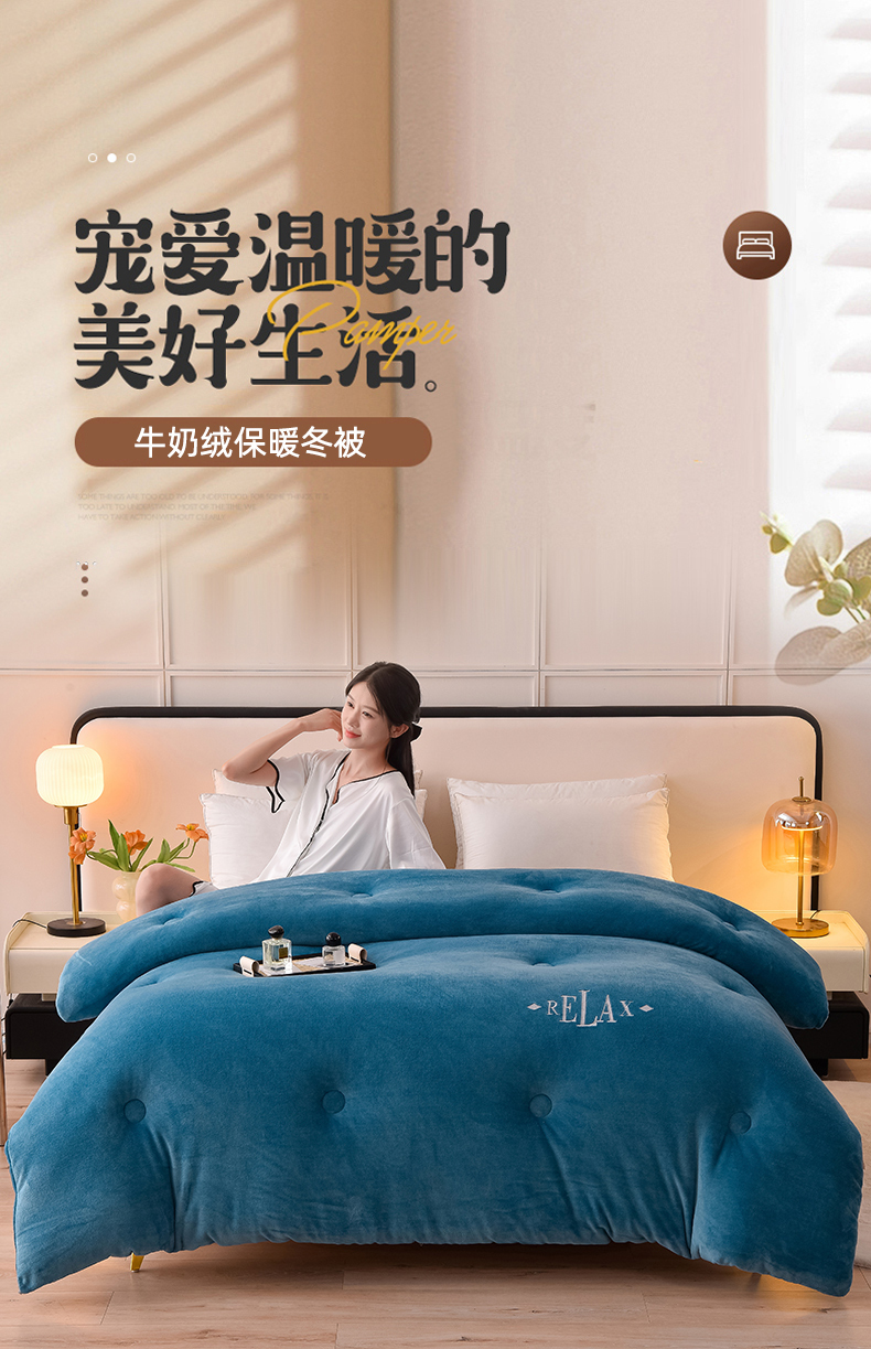 商品名称:牛魔王家居 2024新款加厚牛奶绒绣花冬被春秋被大豆被被子 牛奶绒+宾利蓝