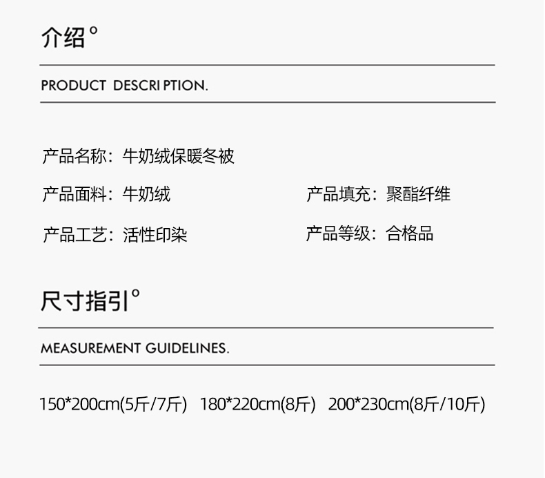 填充纤维种类: 大豆蛋白改性聚酯纤维