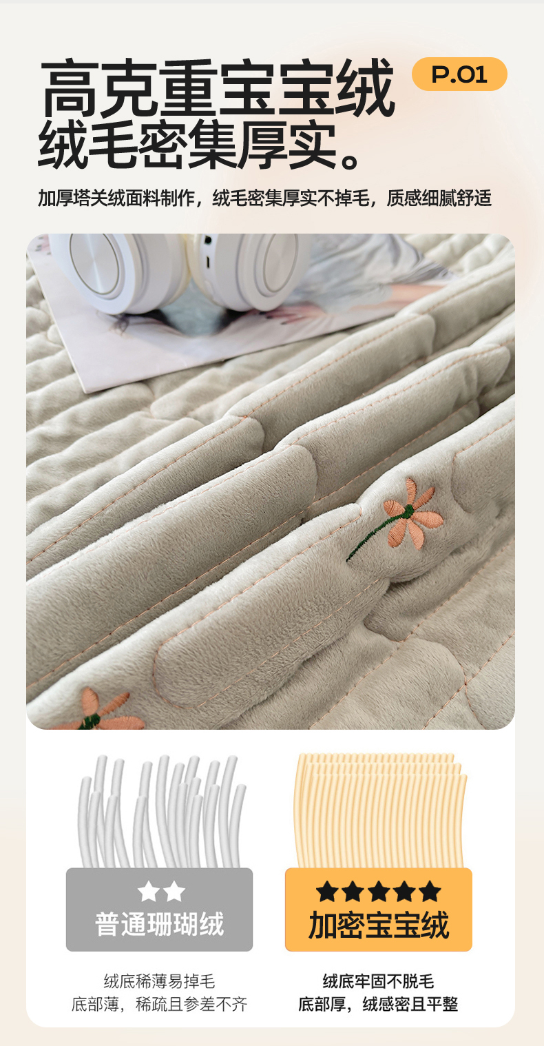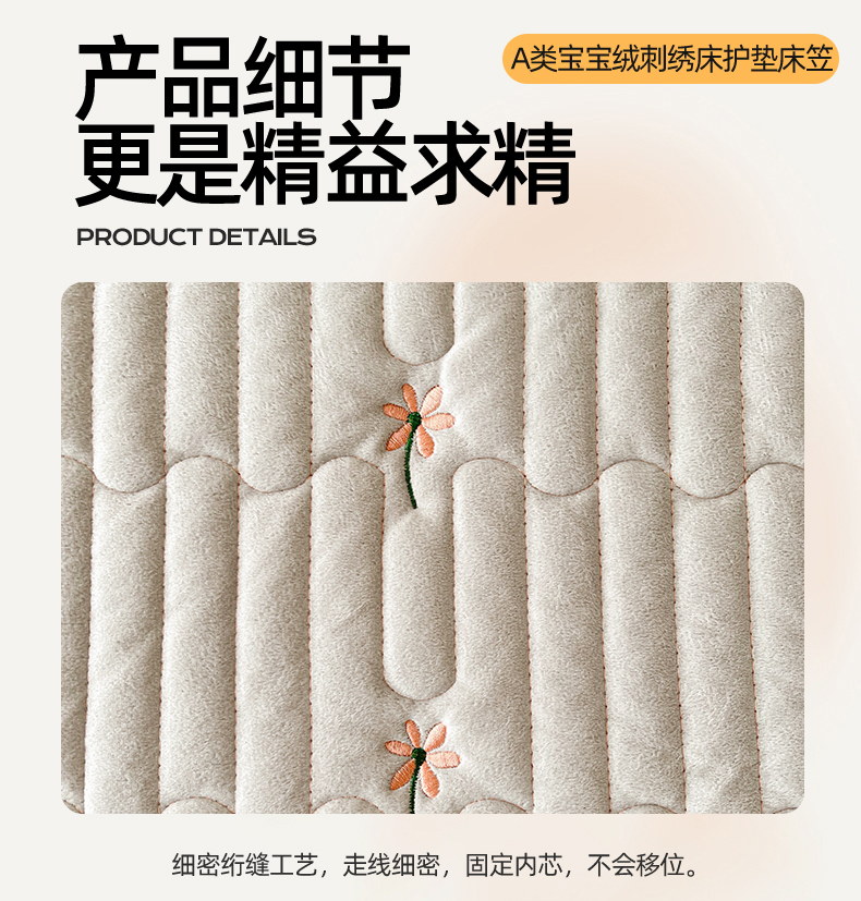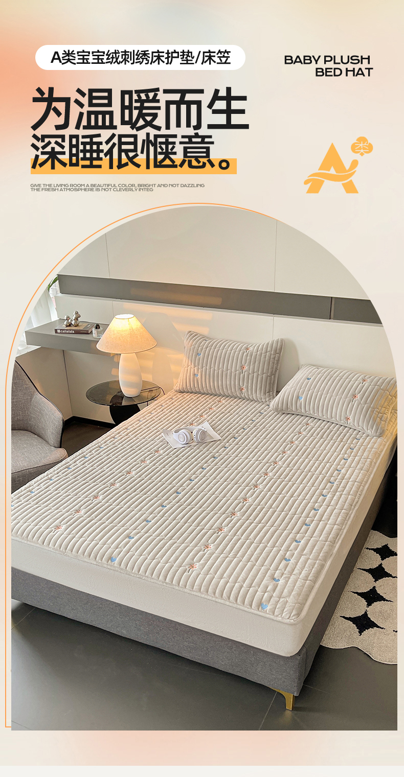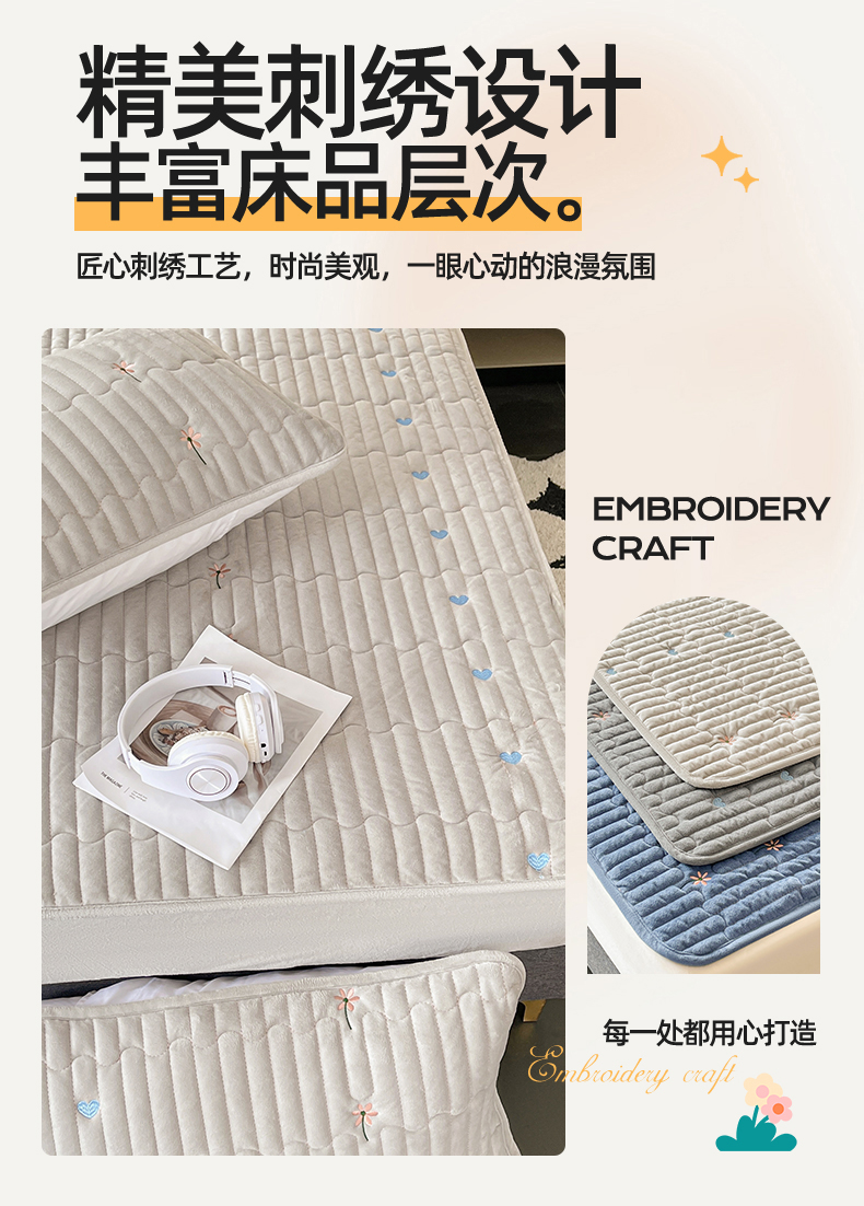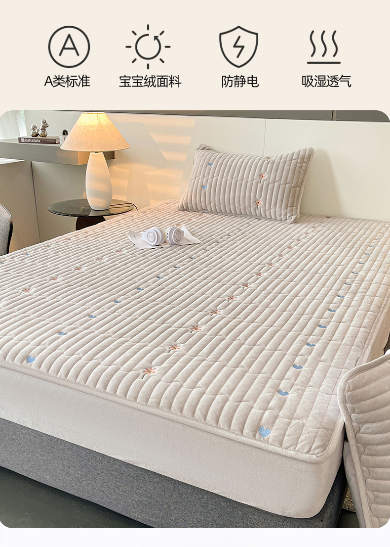 • 91家纺网 家纺一手货源 找家纺 2024新款A类纯色牛奶绒刺绣薄款床垫加厚绒保暖床笠床护垫 艾维-浅灰(床笠款)