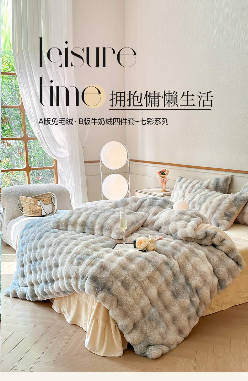 (总) 畅畅家纺 2023新款加厚AB版大泡泡绒皮草兔毛四件套,大泡泡高贵紫,大泡泡果粉,大泡泡果绿,大泡泡卡其,大泡泡奶白咖,大泡泡烟灰