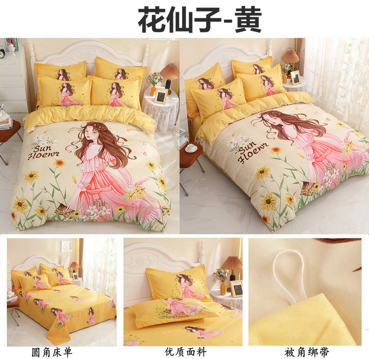 当前位置: 91家纺网 > 商品网购 > 床品套件 > 四件套 > 普通磨毛四件套 > 宝薇 2024新款卡通款加厚斜纹磨毛大版四件套 (新花型不断更新中)花仙子黄
