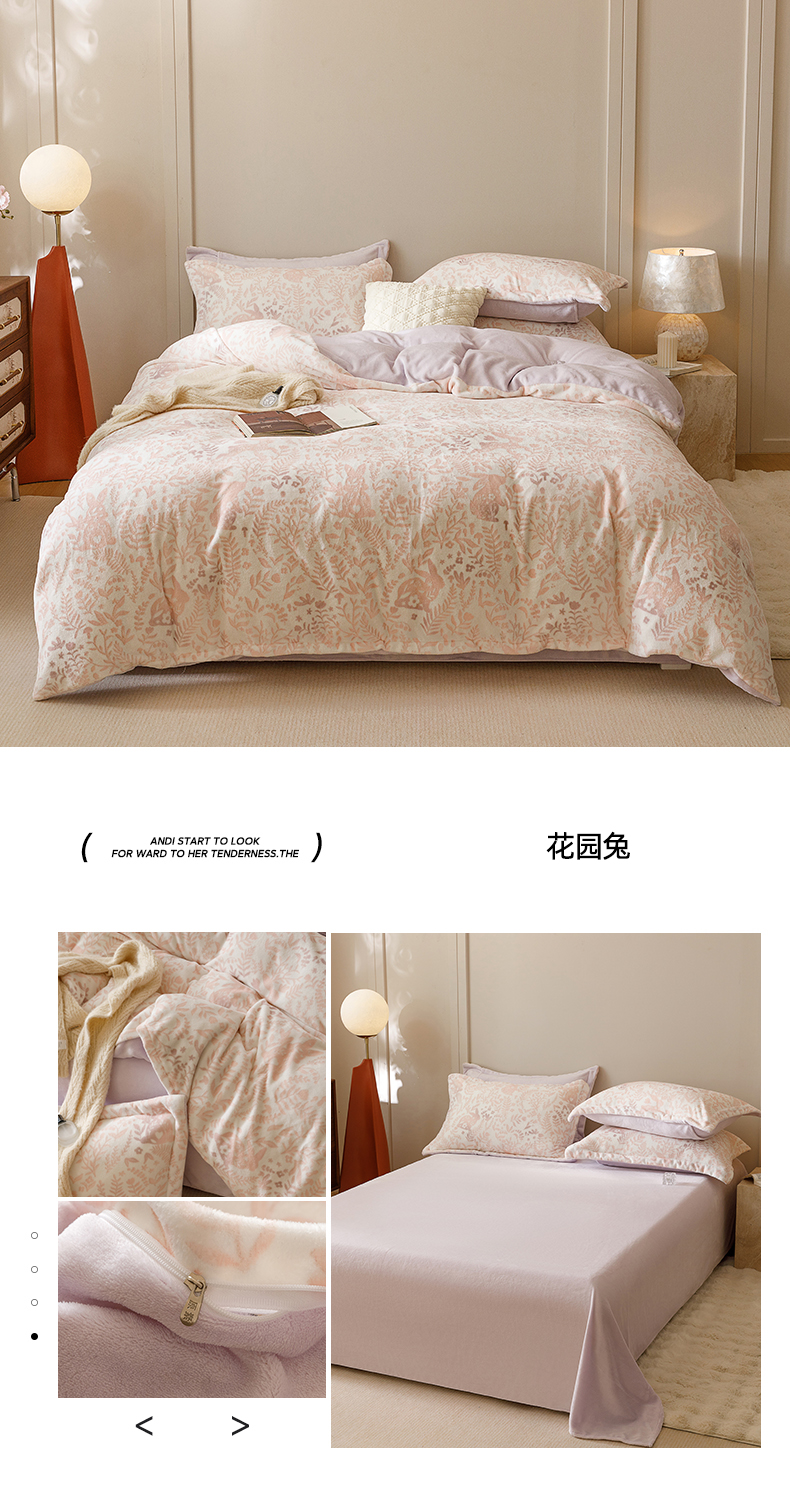 卡派 2024新款轻奢肌理纹雕花工艺款230克加厚牛奶绒四件套(提供买家秀 ) 花园兔