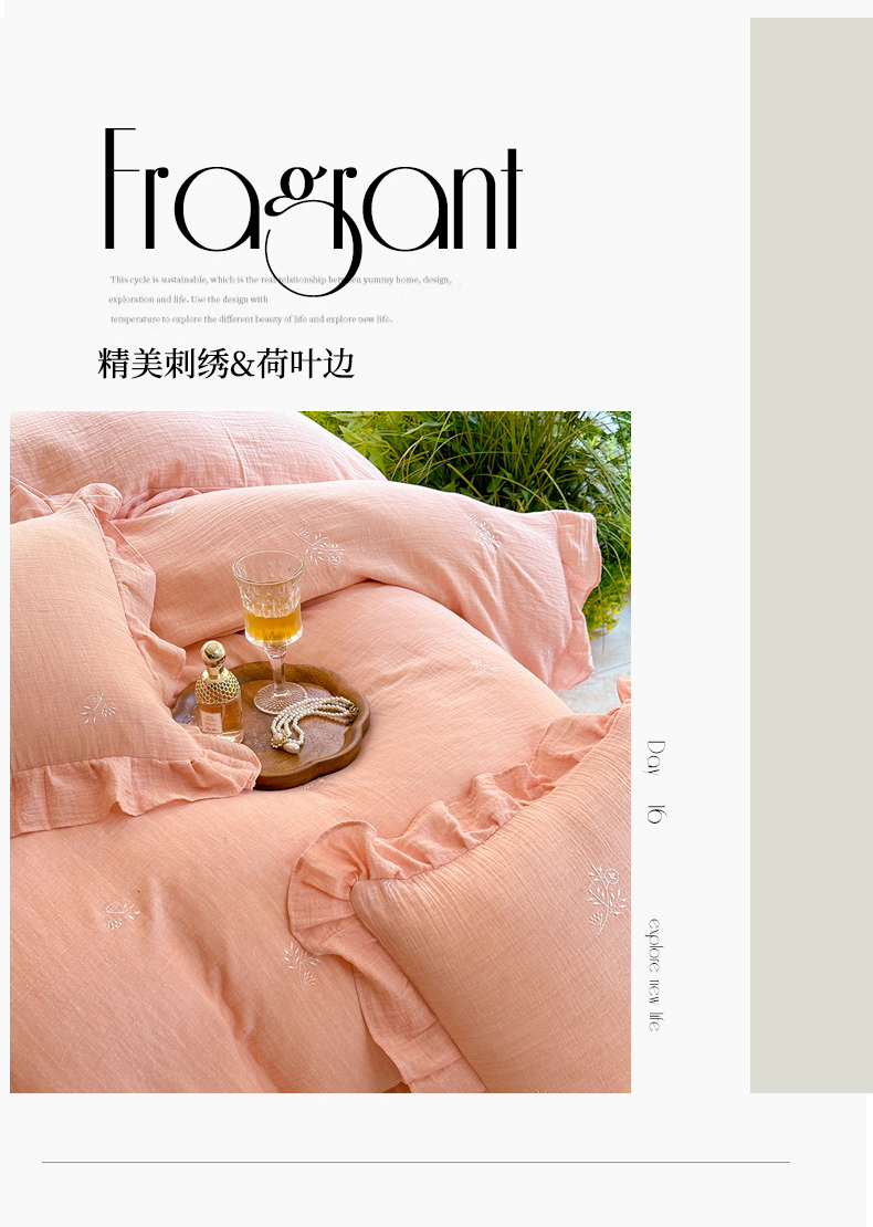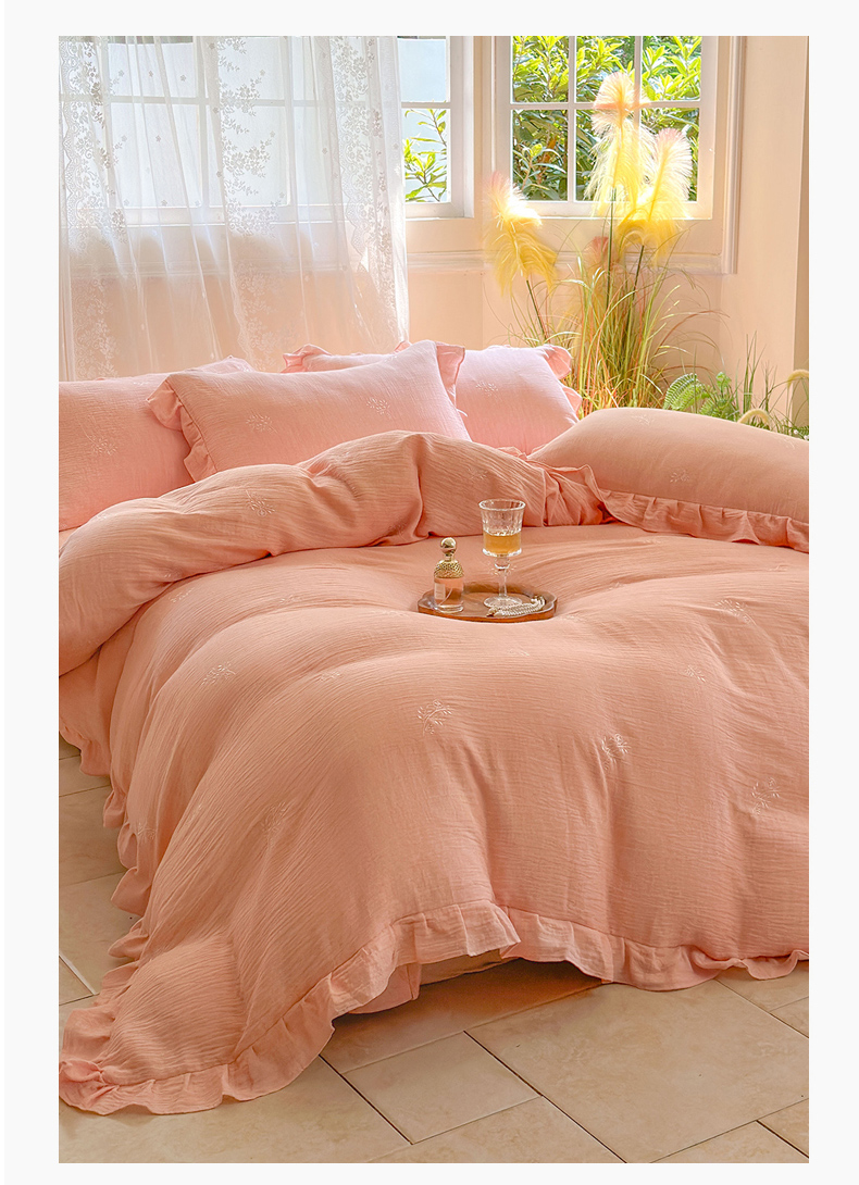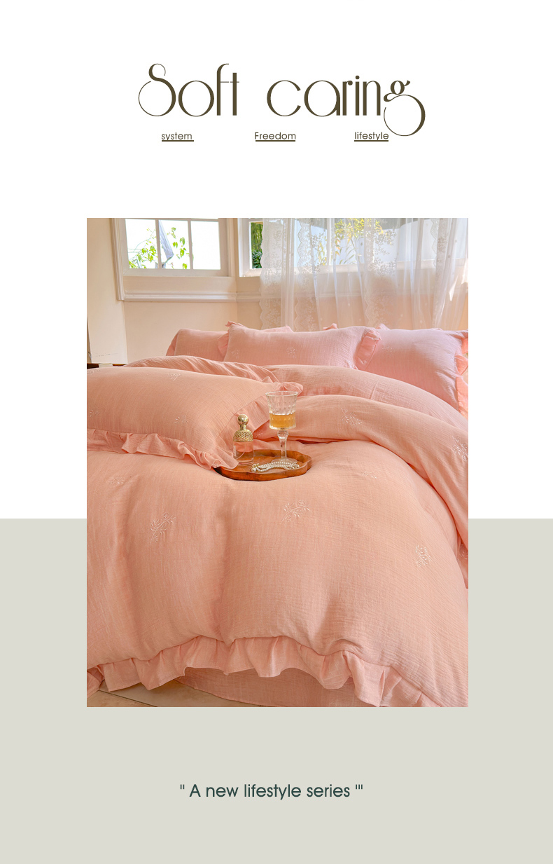 (总)木楌家居2025新款全棉彩点皱皱纱绣花四件套,暗香初醒,星柠微糖,樱草日记,织梦星河